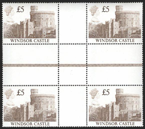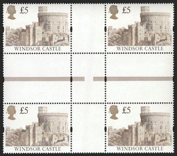 1077 1445-8 image1445-8, £1-£5 Castle High Values (no #1447A) with syncopated perfs in matching CROSS GUTTER BLOCKS OF 4, VF, NH (Face Value £38) (Image) Cat 116.00+