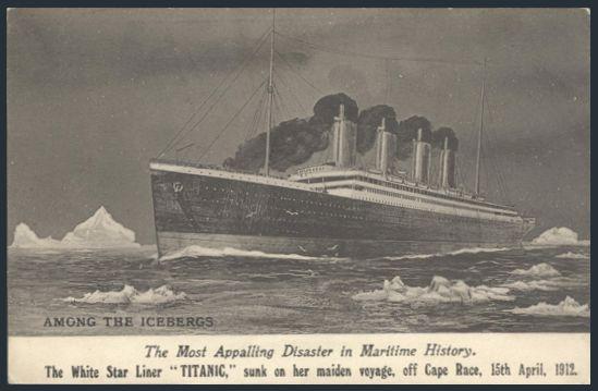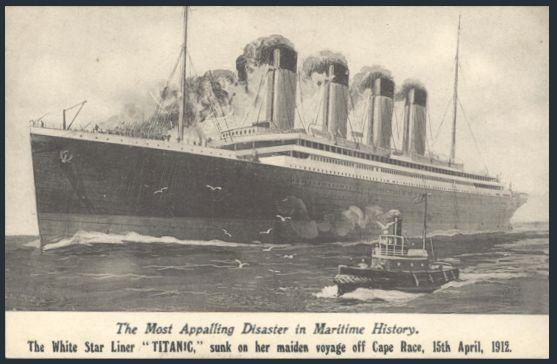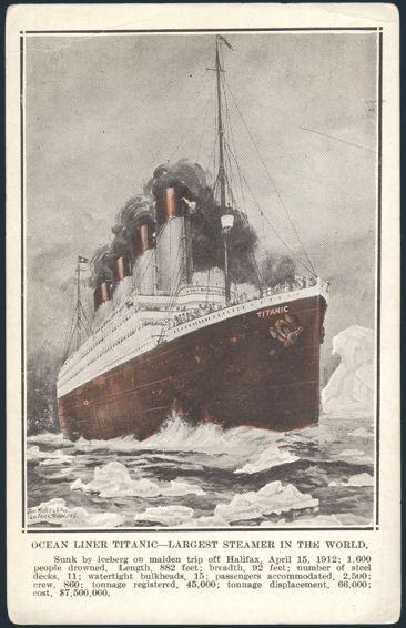 #104, Tied by St Paschal Que 1912 CDS on b/w postcard depicting the ill-fated ship "SS TITANIC". It was the largest & most luxurious liner in the world. It sunk on its maiden voyage 15 April, 1912 with loss of 1,500 lives. F, small corner crease (Image)
