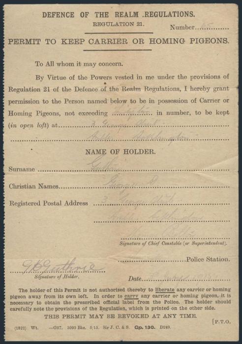 service flimsy & WWI requisition for pigeons, 3 flown pigeongrams, etc. VG-VF (34 items)