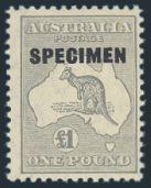 1352 128 image128, One Pound Kangaroo with "SPECIMEN" overprint. F+, NH (Image) Estimate 90.00+ $Cdn