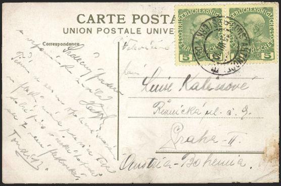 1446   imageAustria in Crete #15 (pair), Tied by Constantinople 15 July 1910 CDS on colour photo postcard depicting a troupe of whirling dervishes. Addr to Prague. F, corner creases. Attractive (Image) Estimate 45.00+ $Cdn