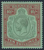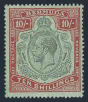 1623 (126a) image(126a), KGVI 10 Shilling Line Perf 14.5 with BROKEN TOP RIGHT SCROLL variety, rich colour on fresh paper, VF, VLH, natural slightly streaky gum as often seen on this wartime printing. A SCARCE VARIETY ON THIS LINE PRINTING (SG #119bd, Cat £1,800) (Image) Estimate 1,200.00+ $Cdn