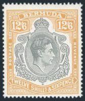 1625 127a image127a, KGVI 12Sh6p with BROKEN LOWER RIGHT SCROLL variety, vibrant fresh colour, nicely centered, VF, LH (SG #120ce, Cat £2,000) (Image) Estimate 1,250.00+ $Cdn