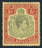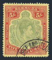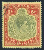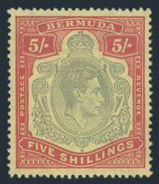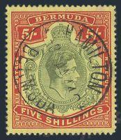 1621 125 image125, KGVI 5 Shilling with GASH IN CHIN variety, neat partial Ireland Island circular cancel, VF, bold colours (SG #118bf, Cat £500) (Image) Estimate 350.00+ $Cdn