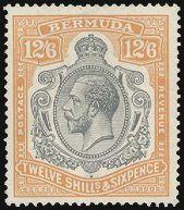 1603 96 image96, KGV 10 Shilling with BROKEN CROWN & SCROLL variety, rich colours, F-VF, LH (SG #92b, Cat £550) (Image) Estimate 475.00+ $Cdn
