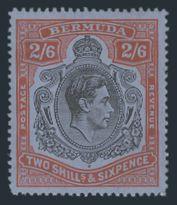 1616 124a image124a, KGVI 2 Sh6p Line Perf 14.5 with BROKEN TOP RIGHT SCROLL variety, strong colours, VF, LH, natural streaky wartime gum. A SCARCE VARIETY & QUITE RARE ON THE LINE PERF PRINTING (SG #117ad, Cat £1,500) (Image) Estimate 1,300.00+ $Cdn