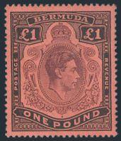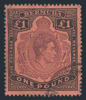 1627 128 image128, KGVI One Pound with BROKEN LOWER RIGHT SCROLL variety, nicely centered, lightly cancelled, VF (SG #121be, Cat £1,500) (Image) Estimate 800.00+ $Cdn
