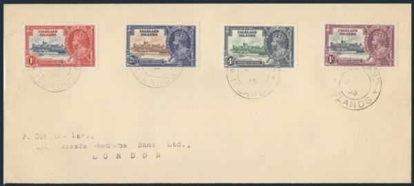 1950 77-80 image77-80, Cpl KGV SILVER JUBILEE set neatly tied by 1935 double-ring CDS's on #10 cover to London. VF (Image) Estimate 125.00+ $Cdn