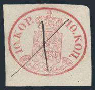 2017 2 image2, Scarce imperf Coat of Arms. F-VF, pen cancel. Has 3 diff guarantees b/s's (Image) Cat 350.00