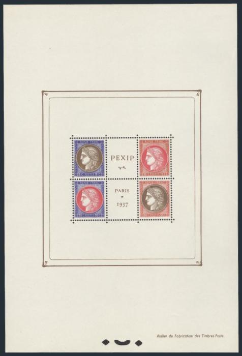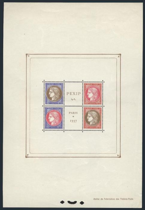 2059 329 image329, Int'l Philatelic Exhibition 1937 sheet. VF, NH, some minor gum bends (Image) Cat 700.00