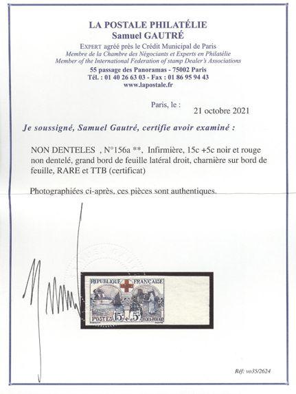 2070 B11 imageB11, Sheet margin IMPERFORATE wonderfully fresh, XF, LH. Has a 2021 Gautre Certificate. A VERY SCARCE IMPERF STAMP (Yvert #156a, Cat 2,000 Euro) (Image) (View Certificate)