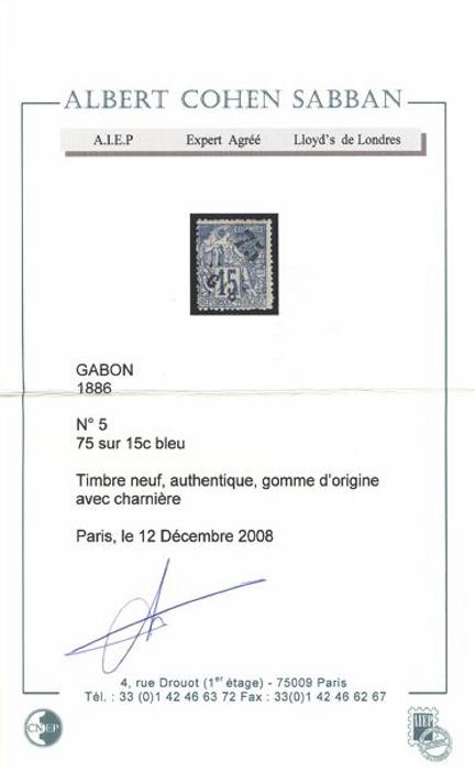 2160 5 image5, Scarce mint 75¢ on 15¢ Blue surcharge, fresh colour, F, OG, a few nibbed perfs, light crease at top. QUITE A RARE CLASSIC STAMP AS ONLY 400 WERE PRINTED. Has been signed expert A. Brun and with 2008 Sabban Certificate (Image) (View Certificate)