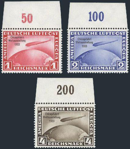 2299 C43-5 imageC43-5, Chicago Flight Zeppelin set all with matching top selvedge having counter numbers. Bright fresh colours, VF, NH. A CHOICE SET (Image) Cat 3,250.00