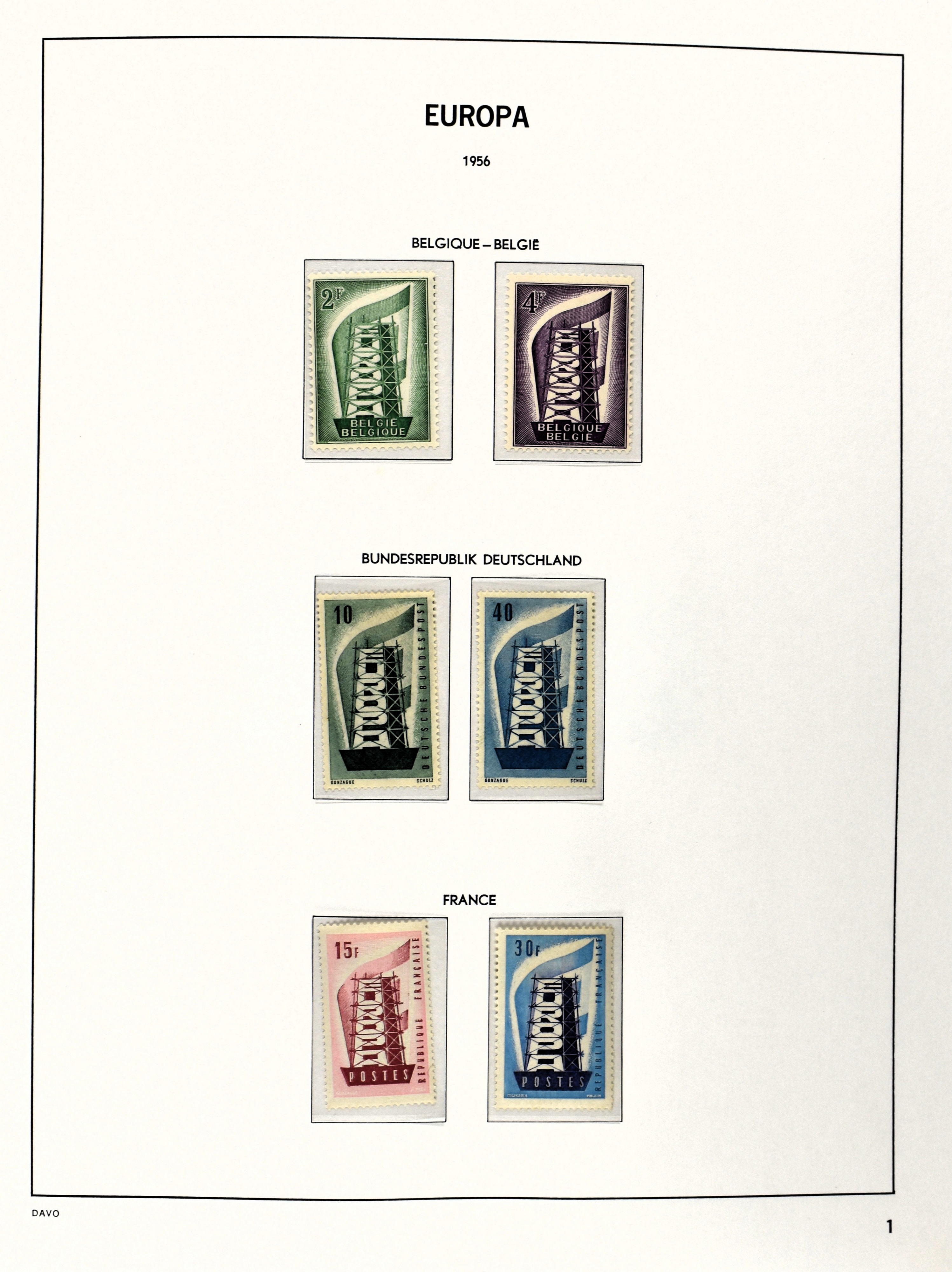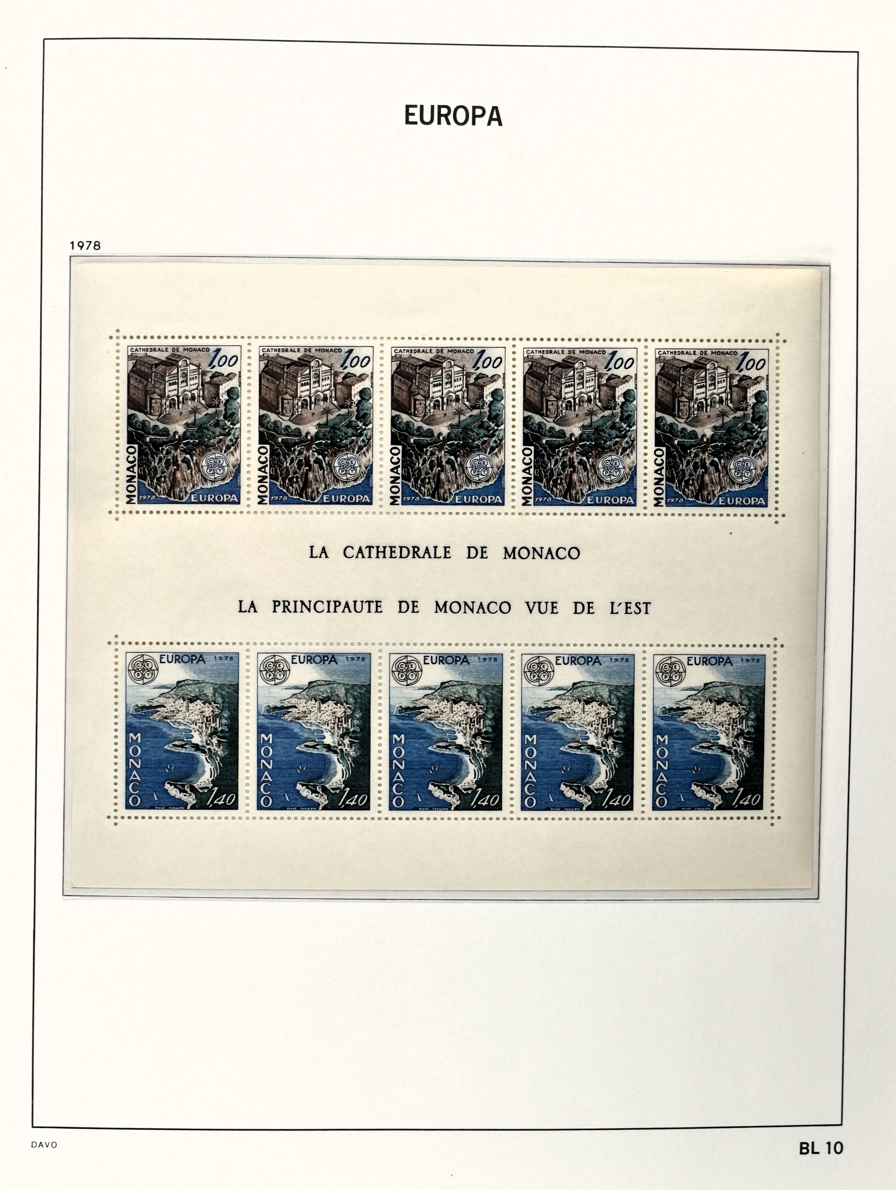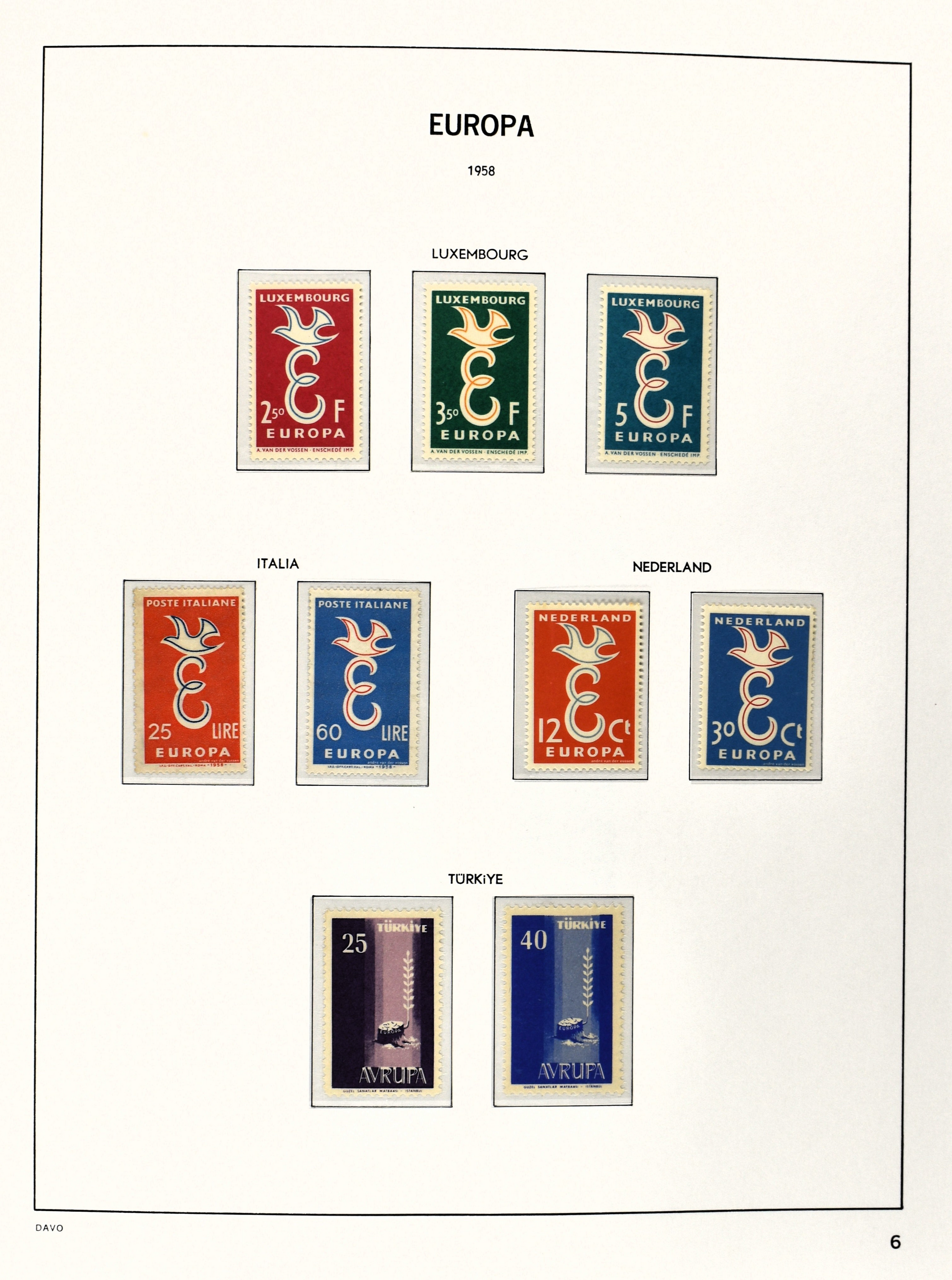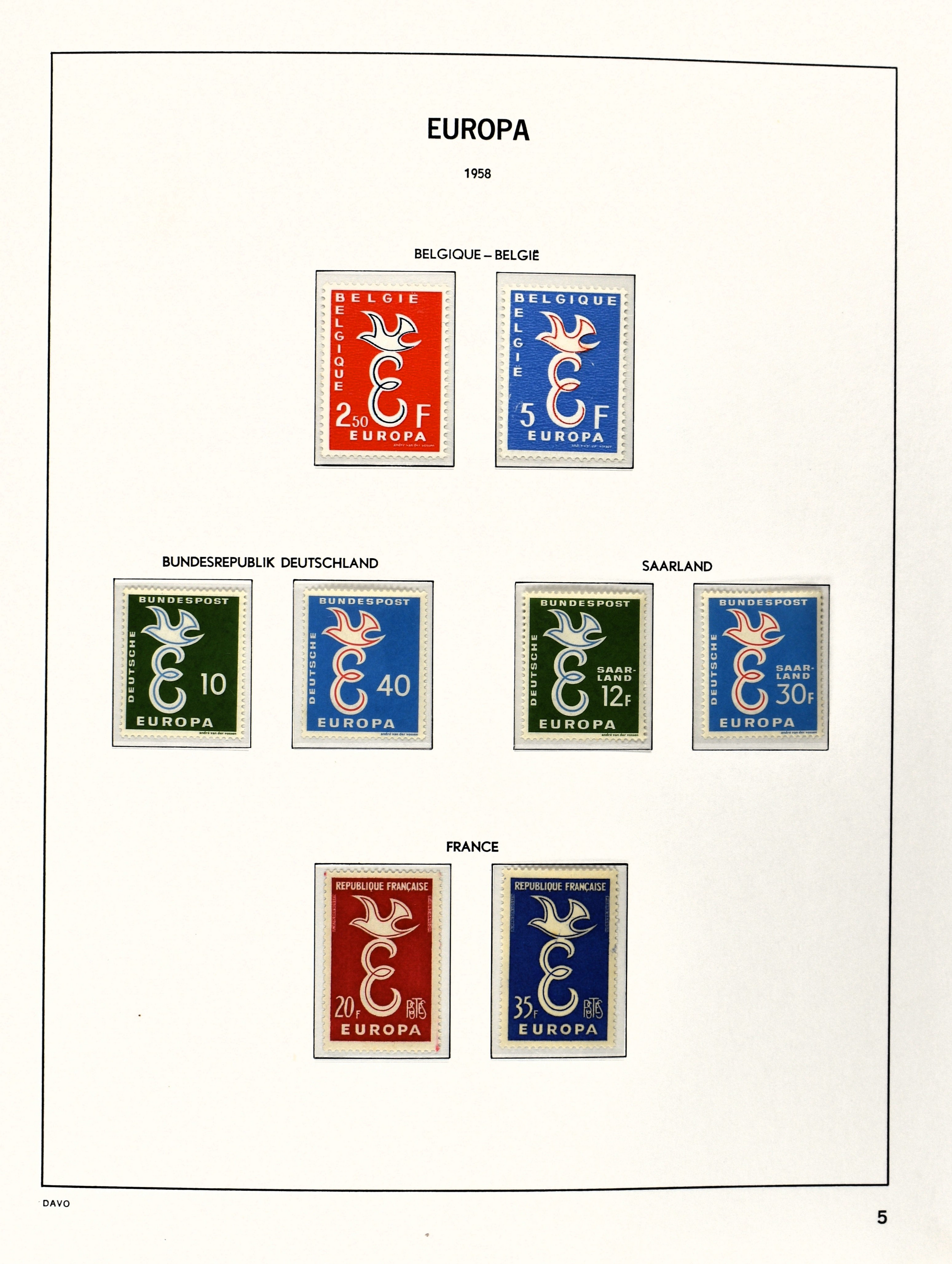 EUROPE CEPT 1956-1996, mostly MNH collection in 7 Davo albums, well filled with better numbers, blocks and miniature sheets (Image) (Image2)
