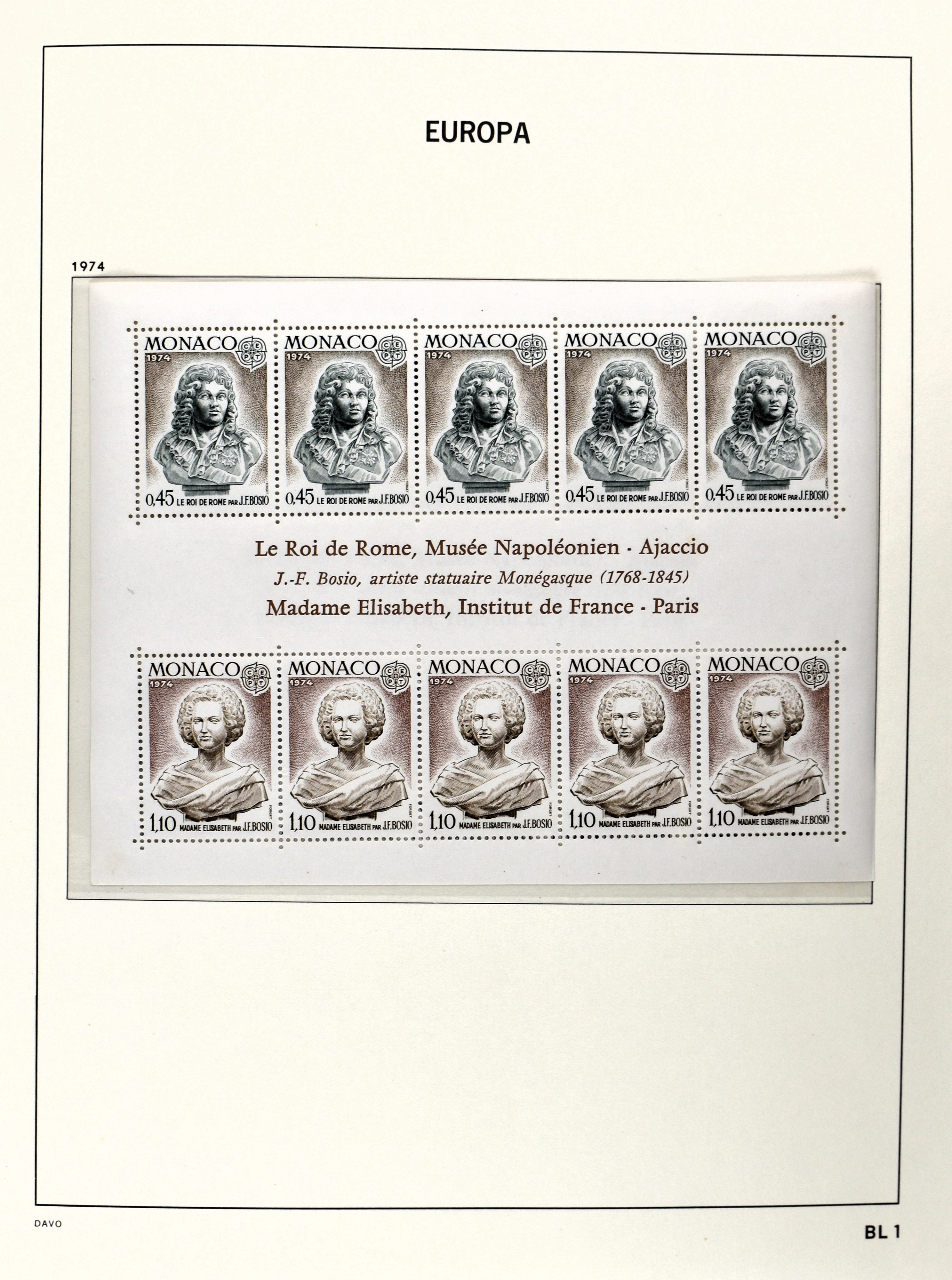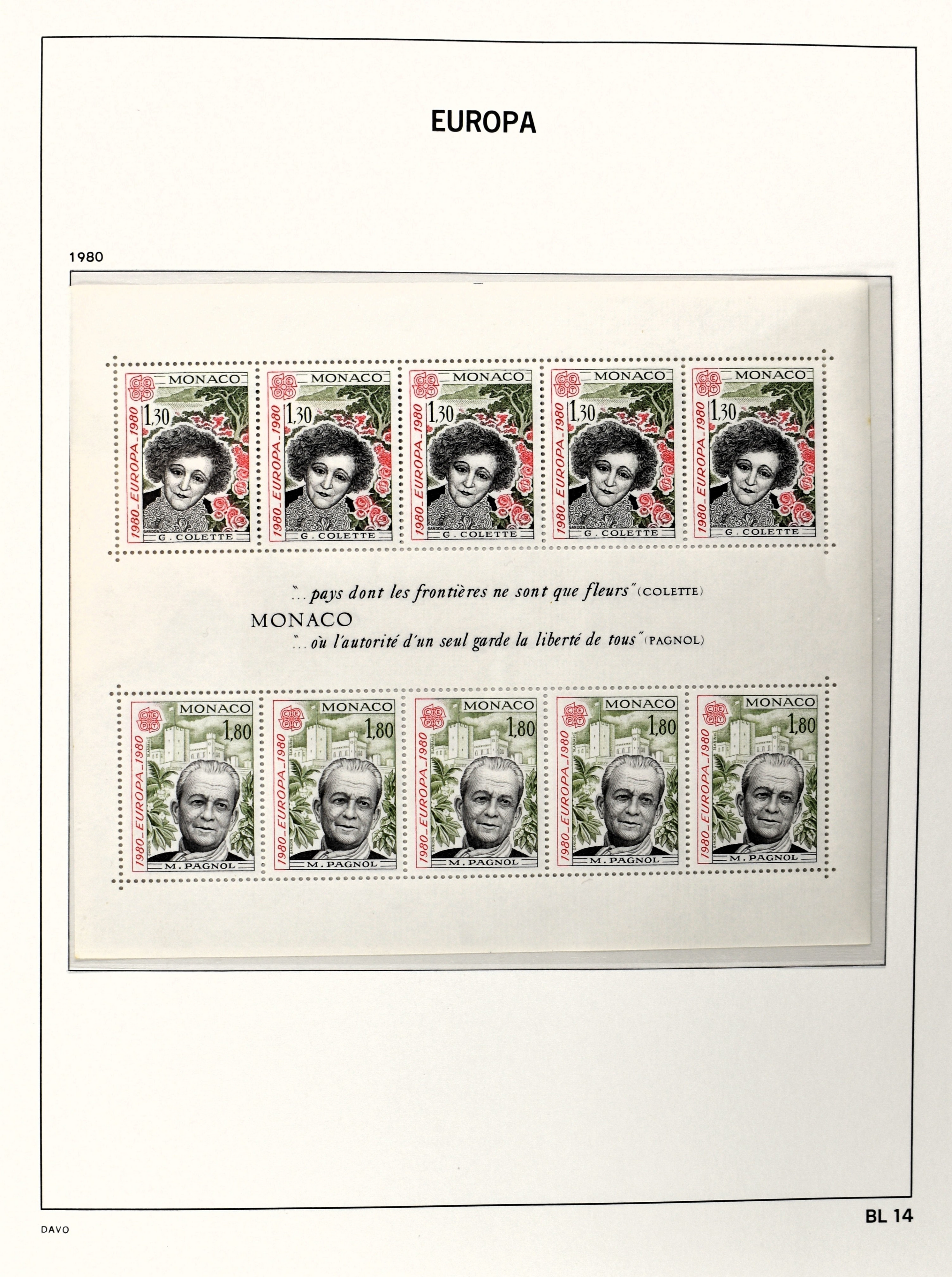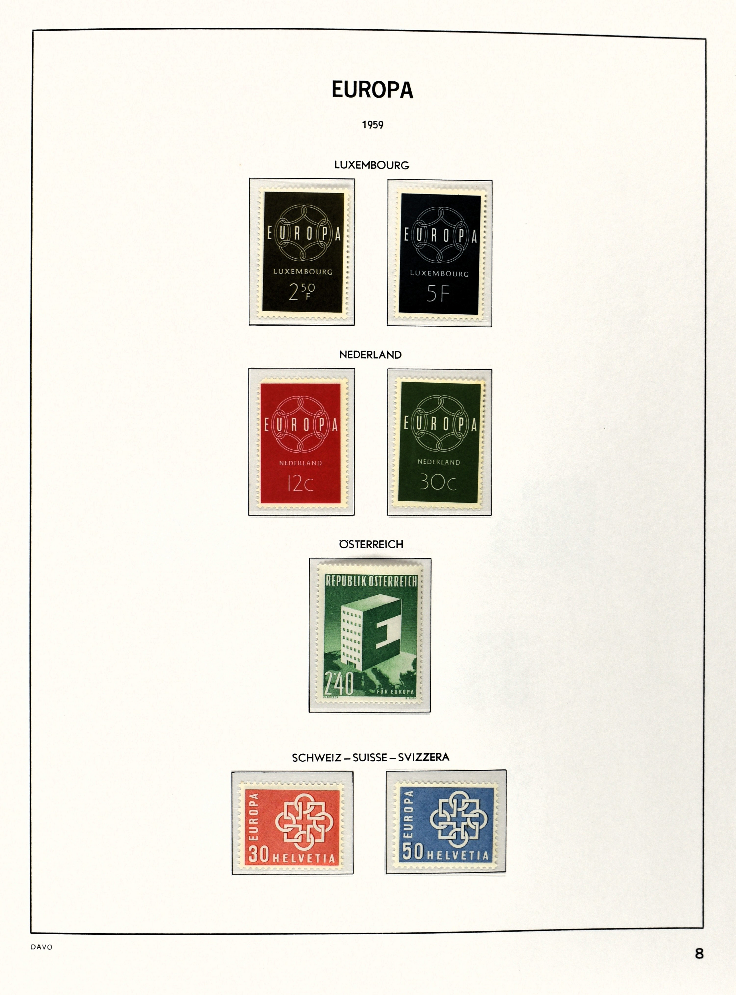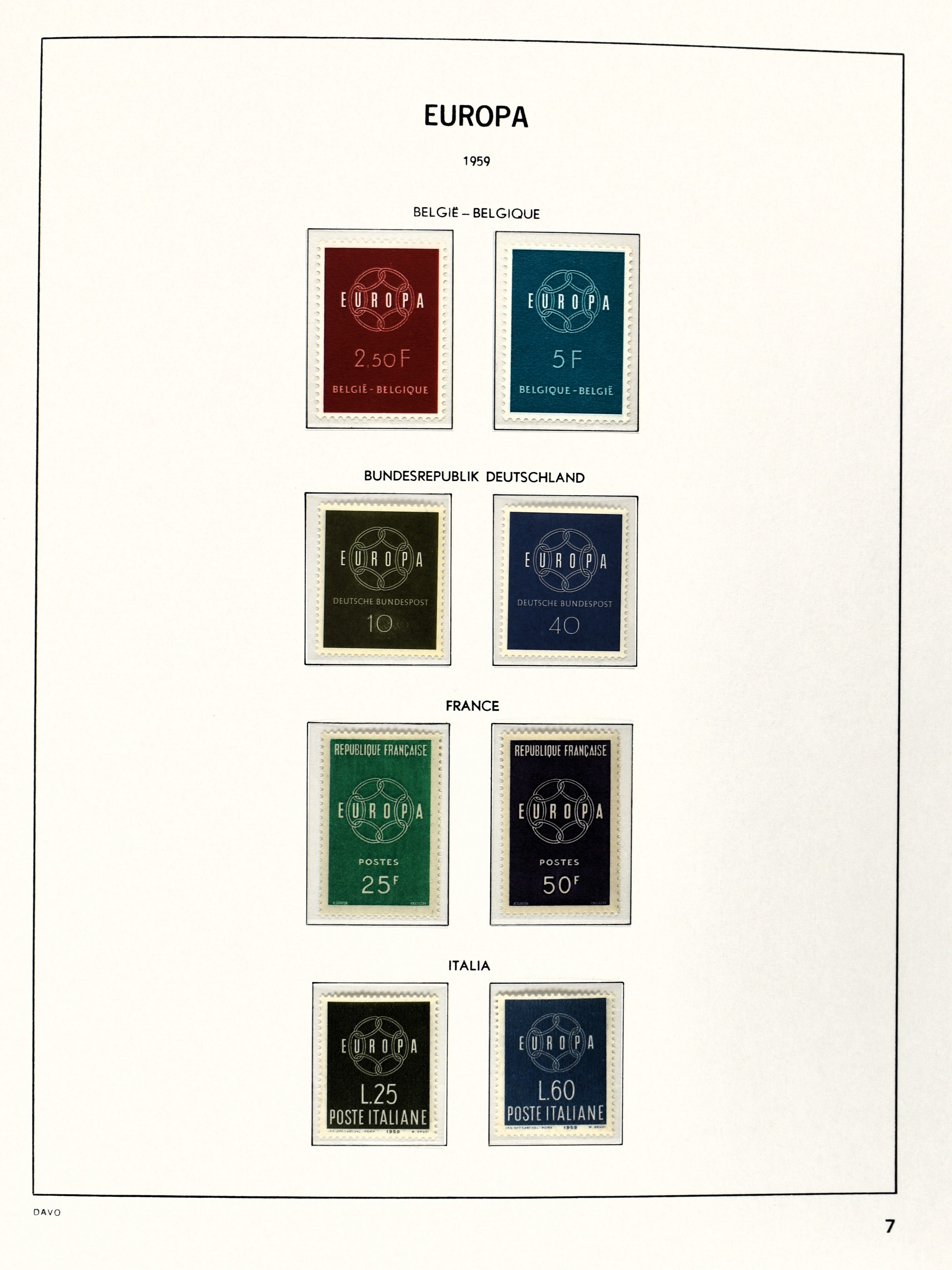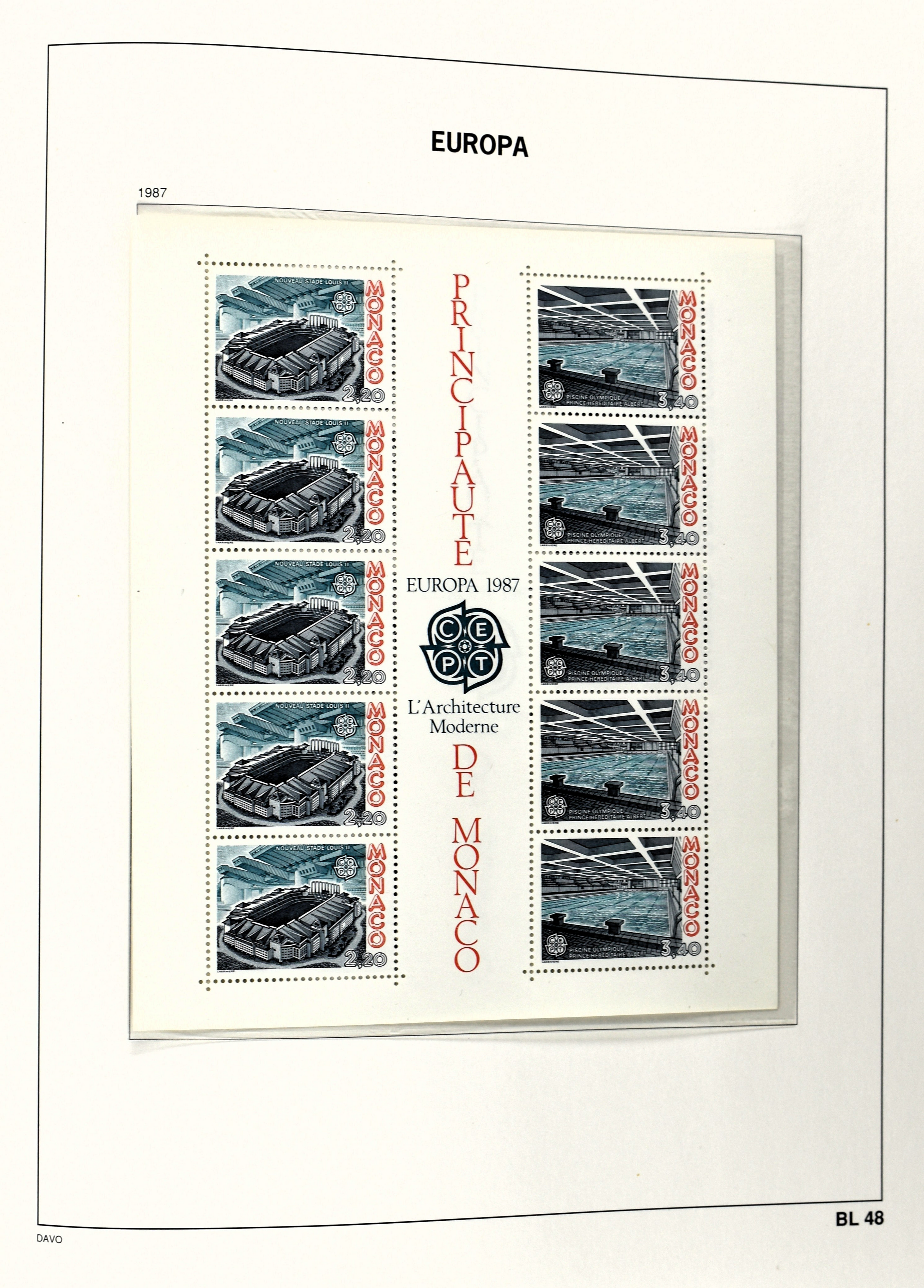 EUROPE CEPT 1956-1996, mostly MNH collection in 7 Davo albums, well filled with better numbers, blocks and miniature sheets (Image) (Image2)