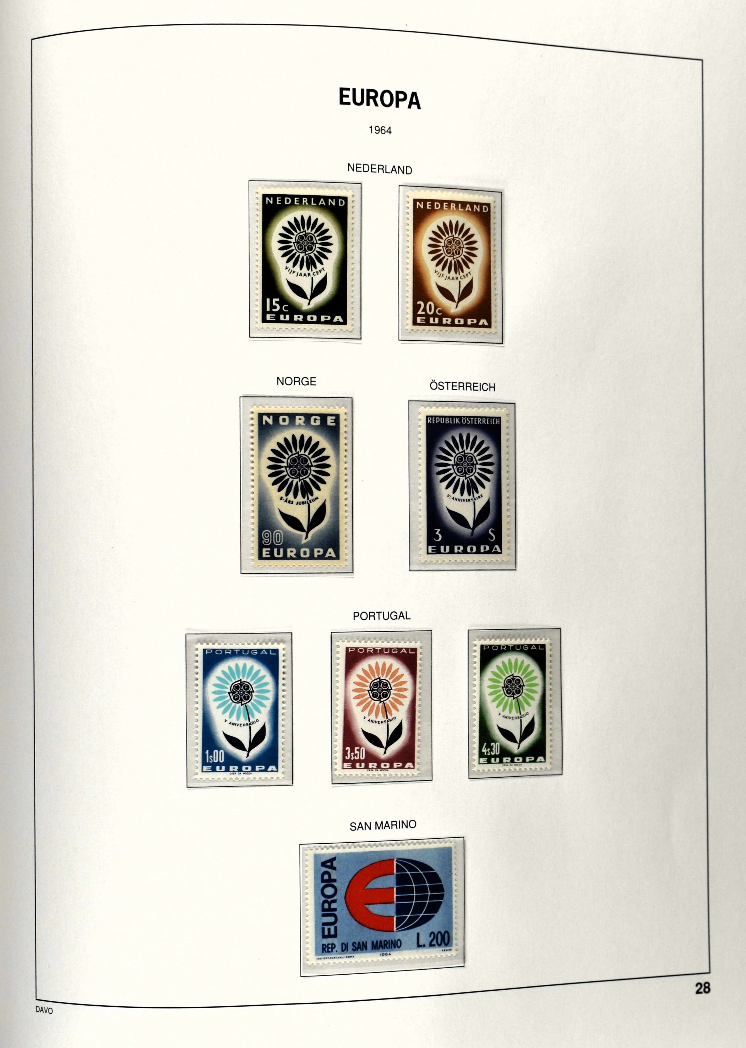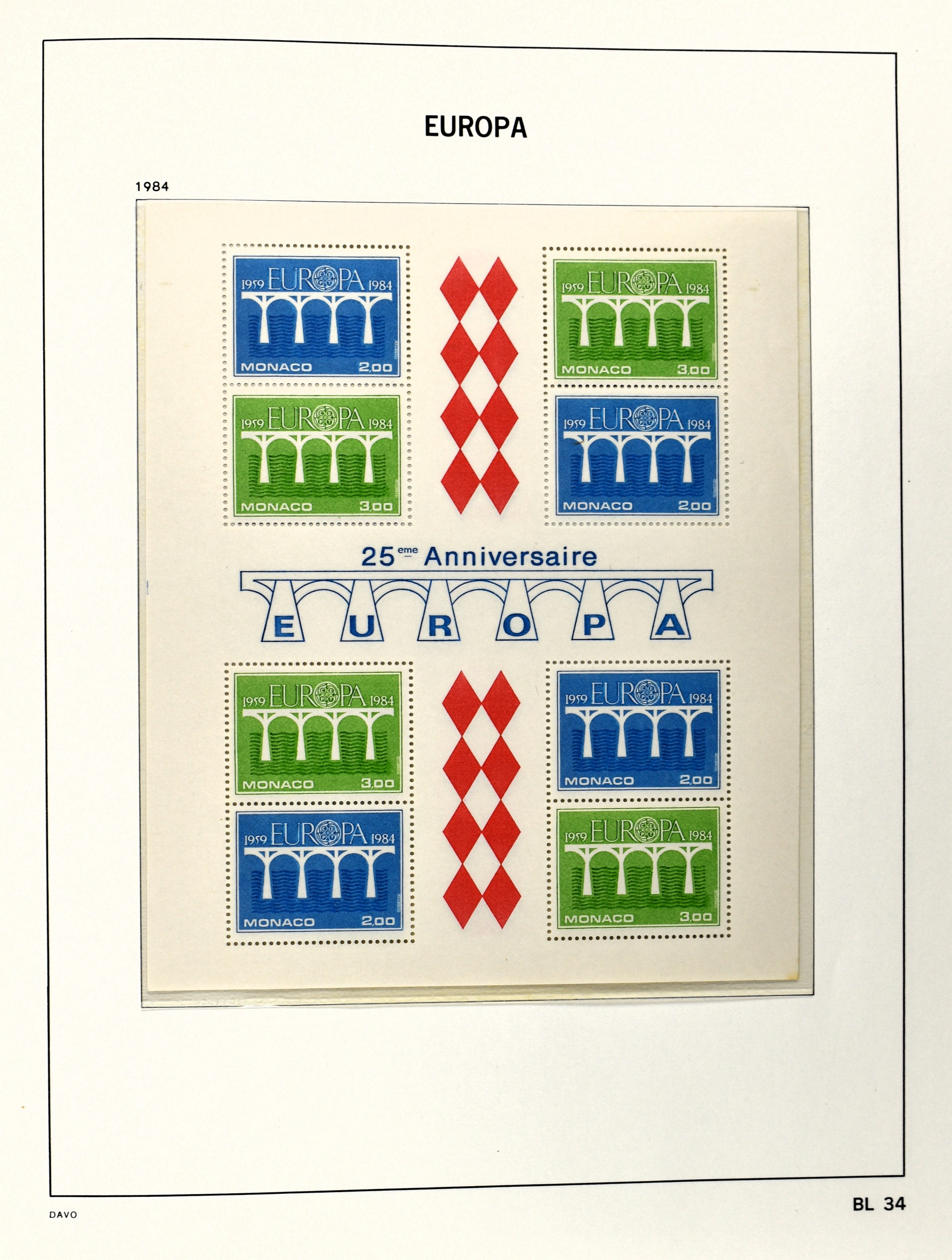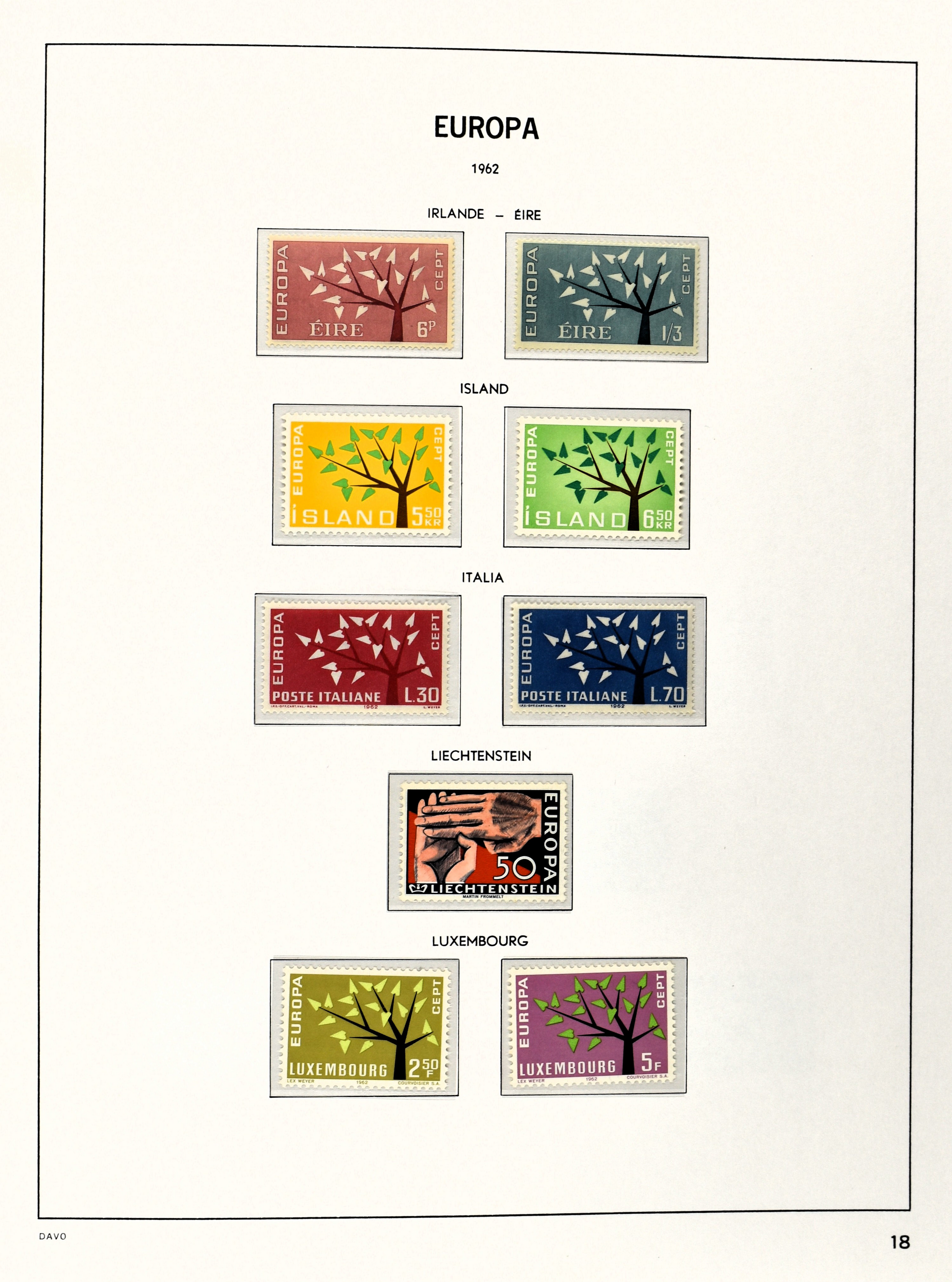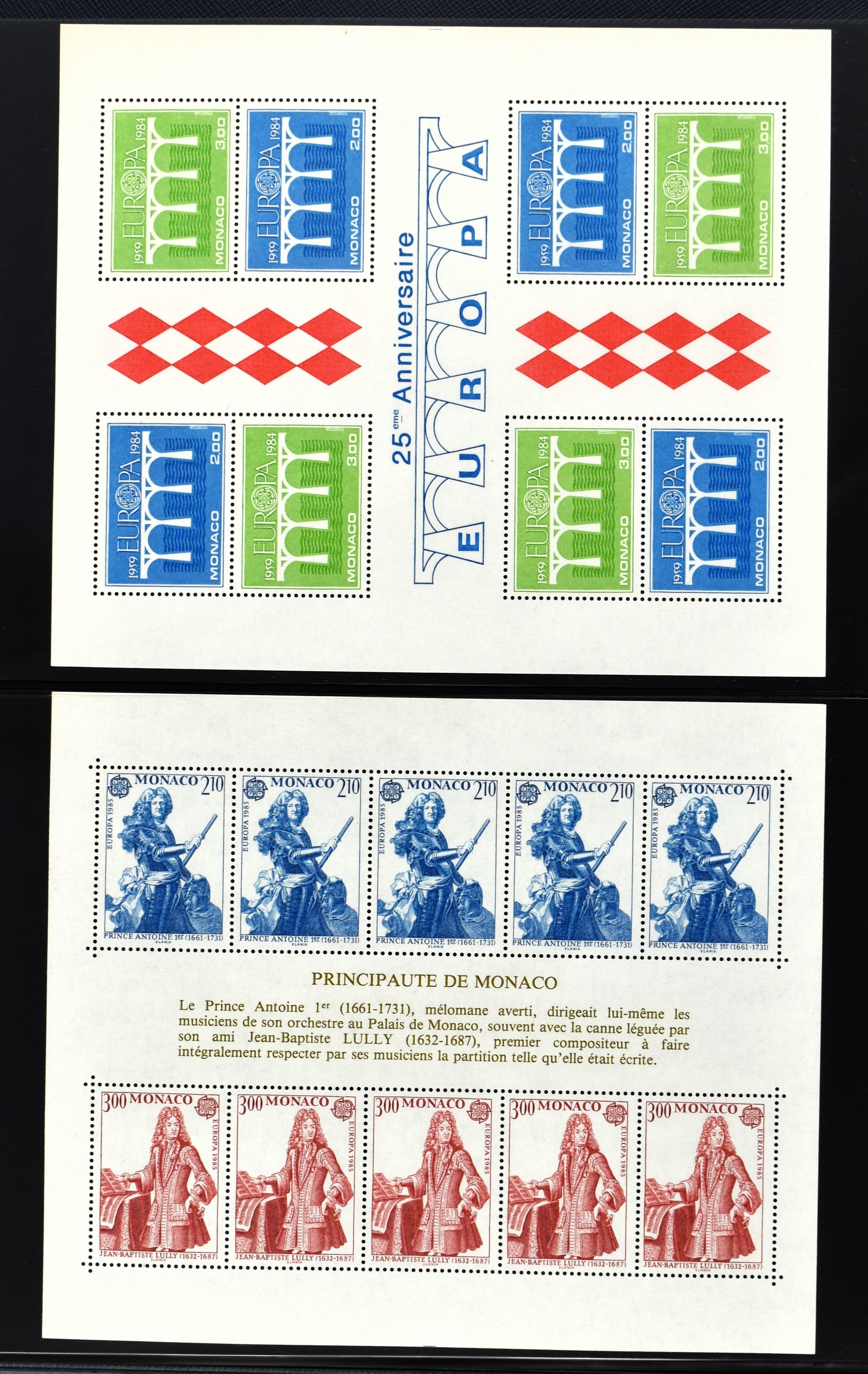 EUROPE CEPT 1956-1996, mostly MNH collection in 7 Davo albums, well filled with better numbers, blocks and miniature sheets (Image) (Image2)