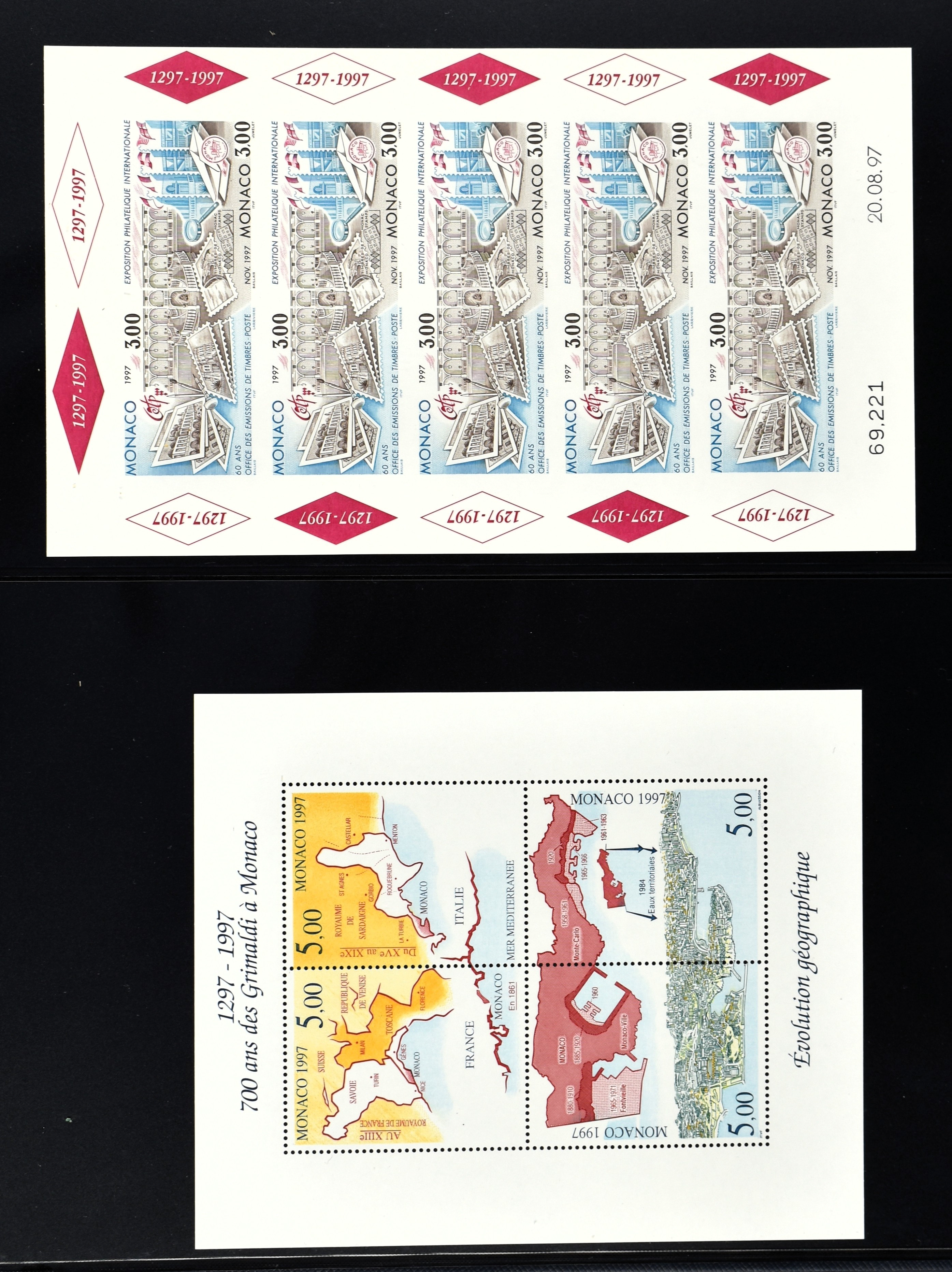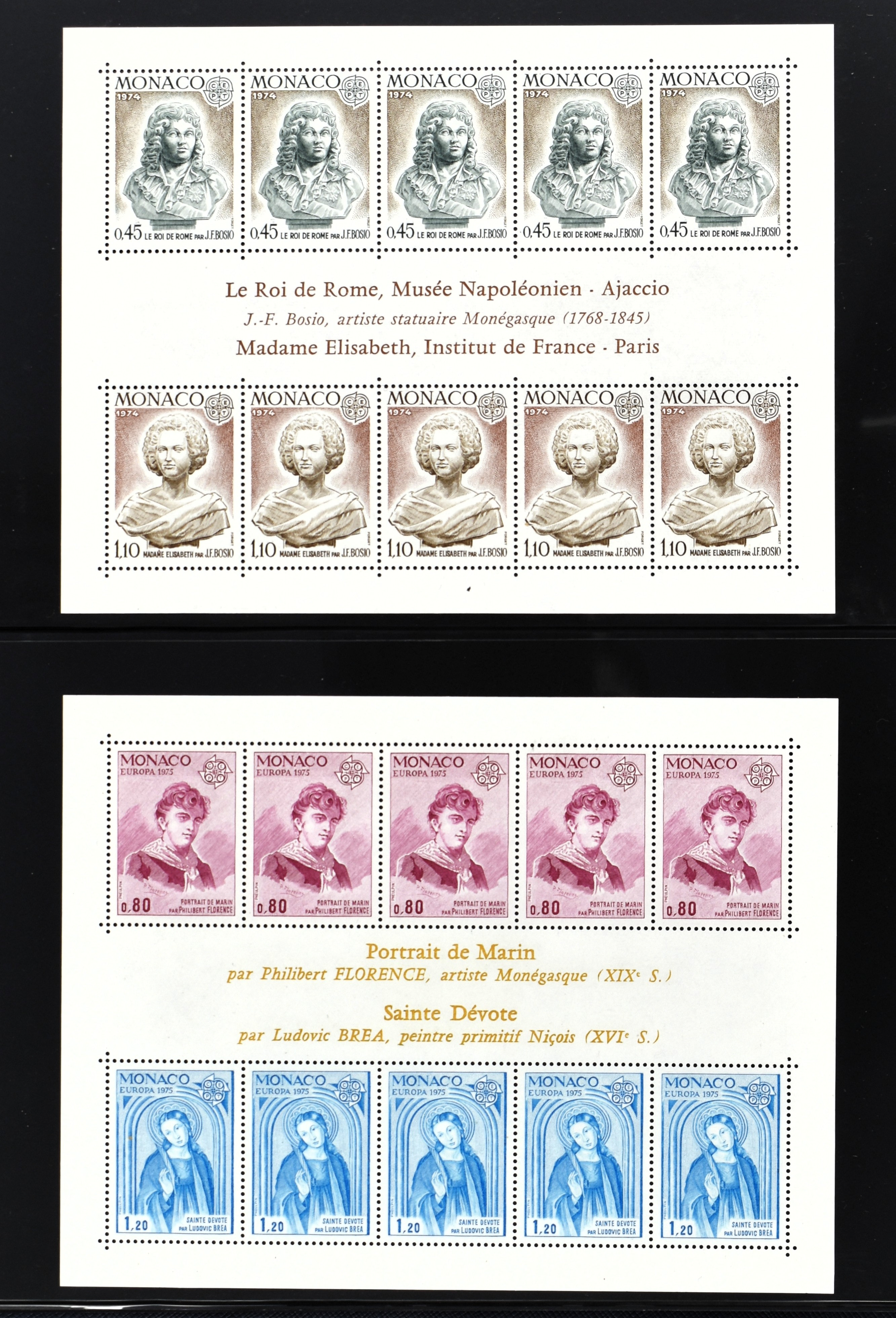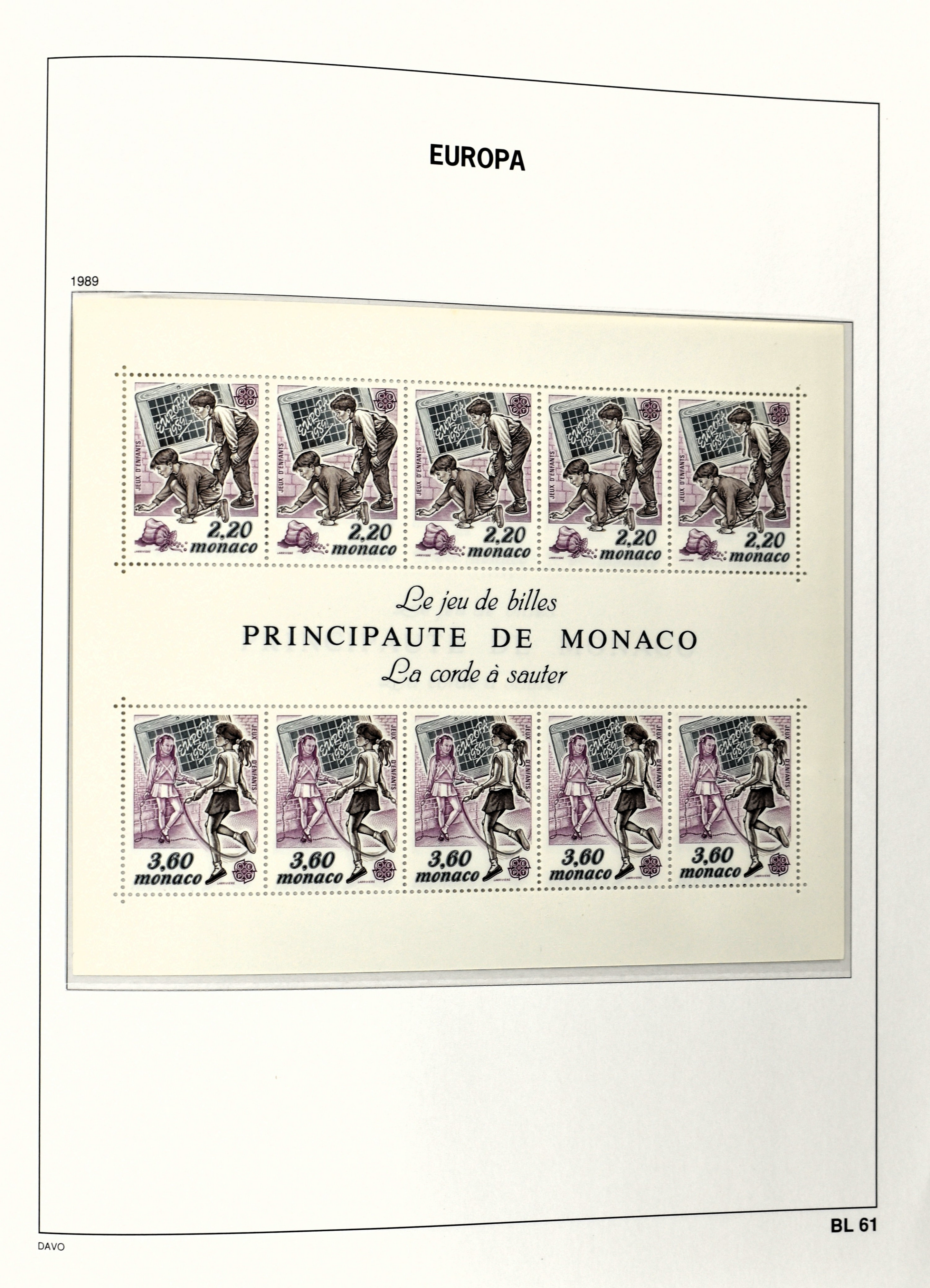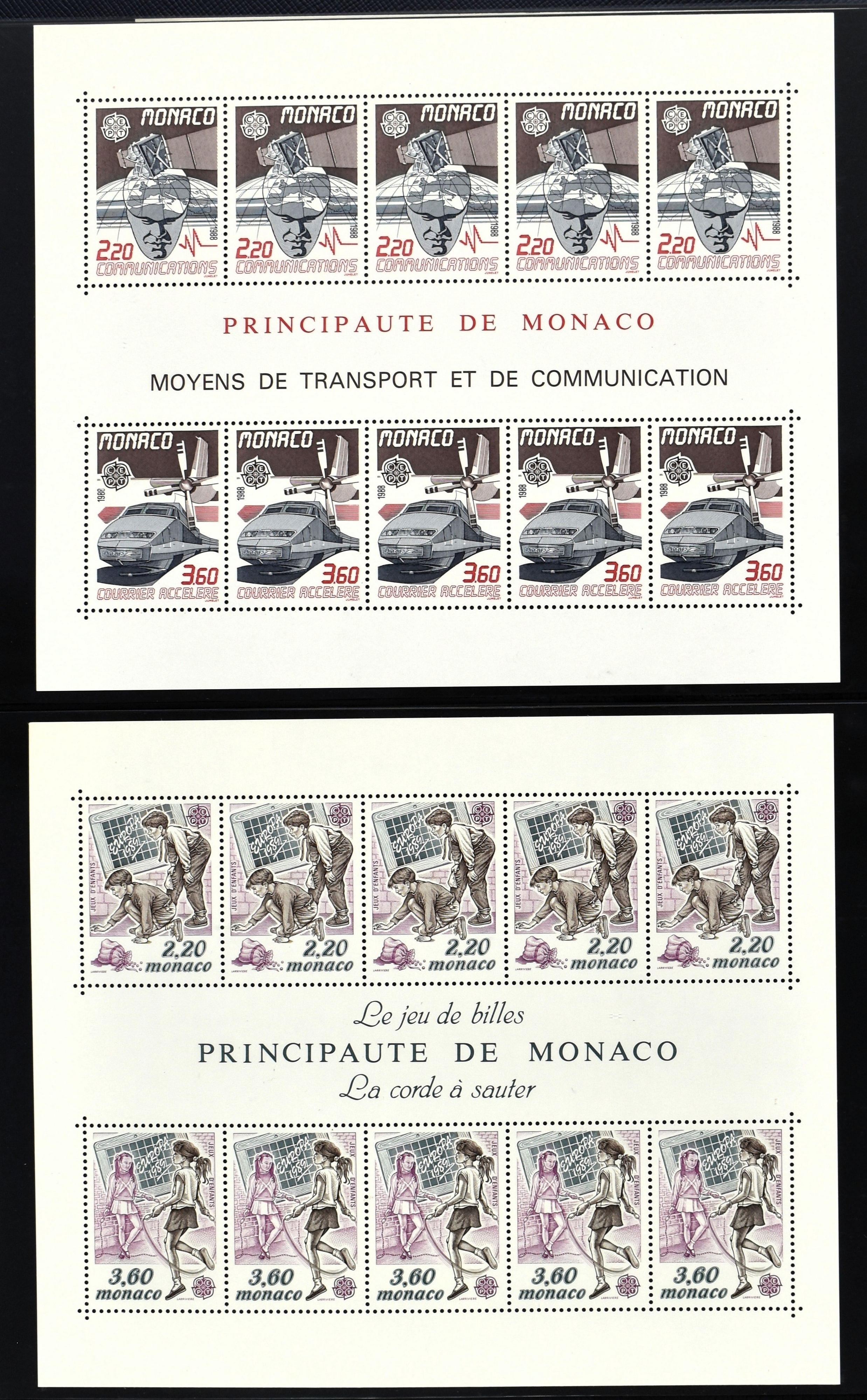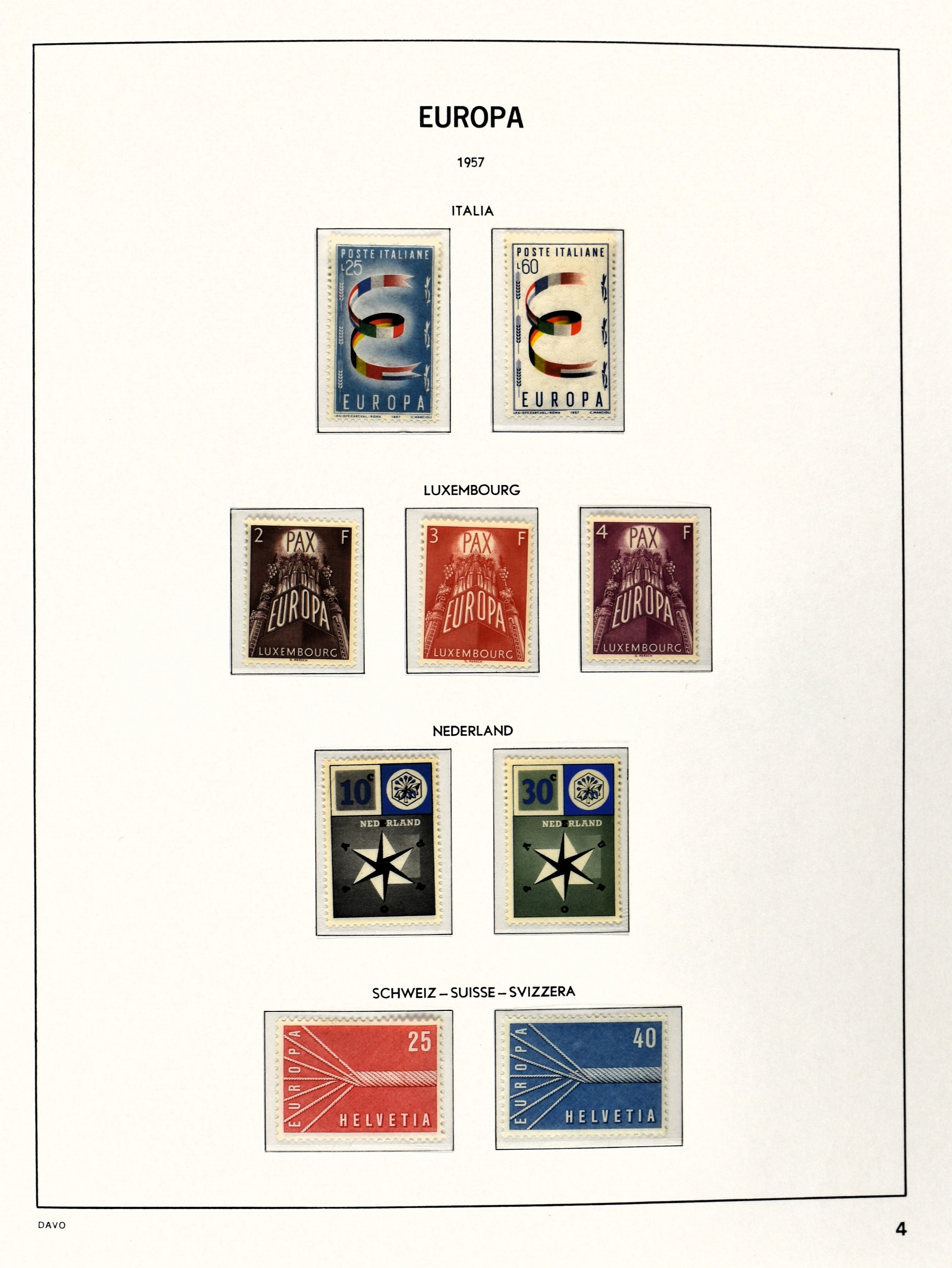 EUROPE CEPT 1956-1996, mostly MNH collection in 7 Davo albums, well filled with better numbers, blocks and miniature sheets (Image) (Image2)