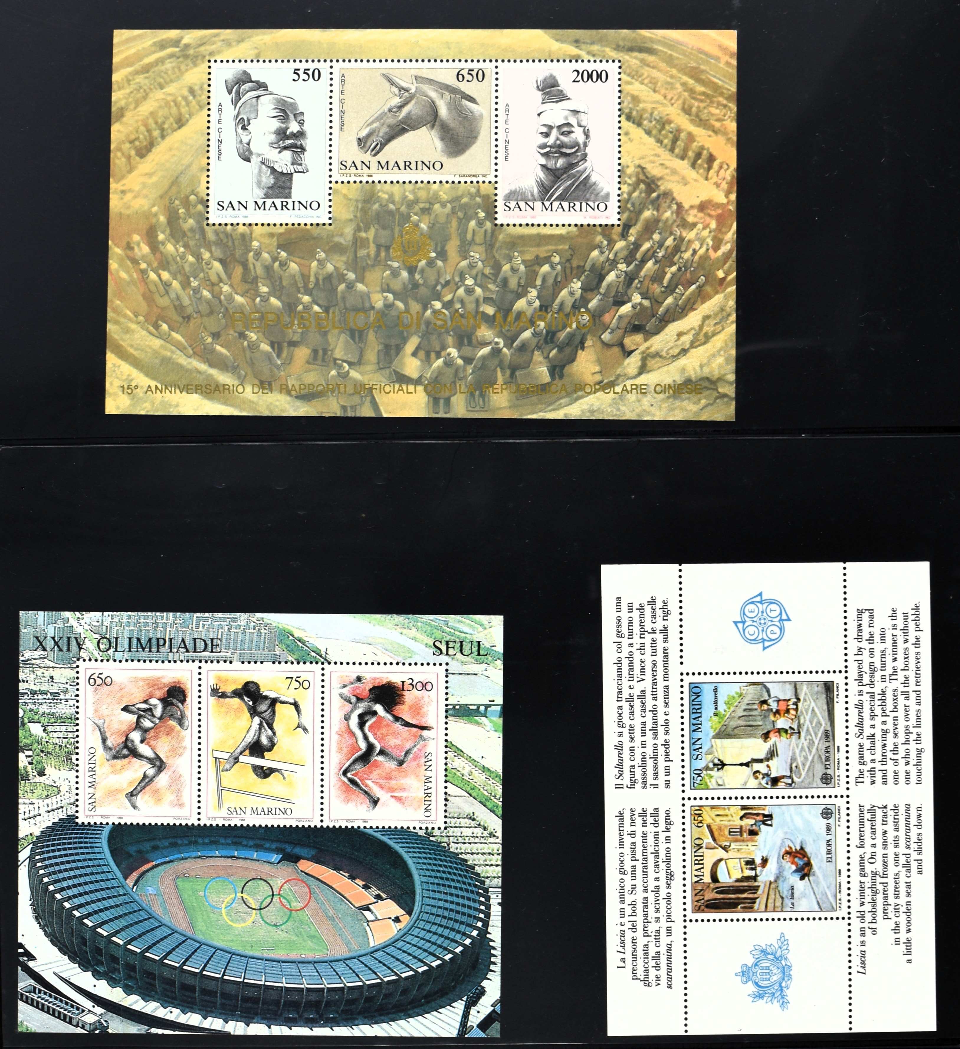 WESTERN EUROPE, blocks and miniature sheets in 8 Safe albums with a nice variety from different countries with a total of 1400 items. Curious€ Please visit our website for images (Image) (Image2)