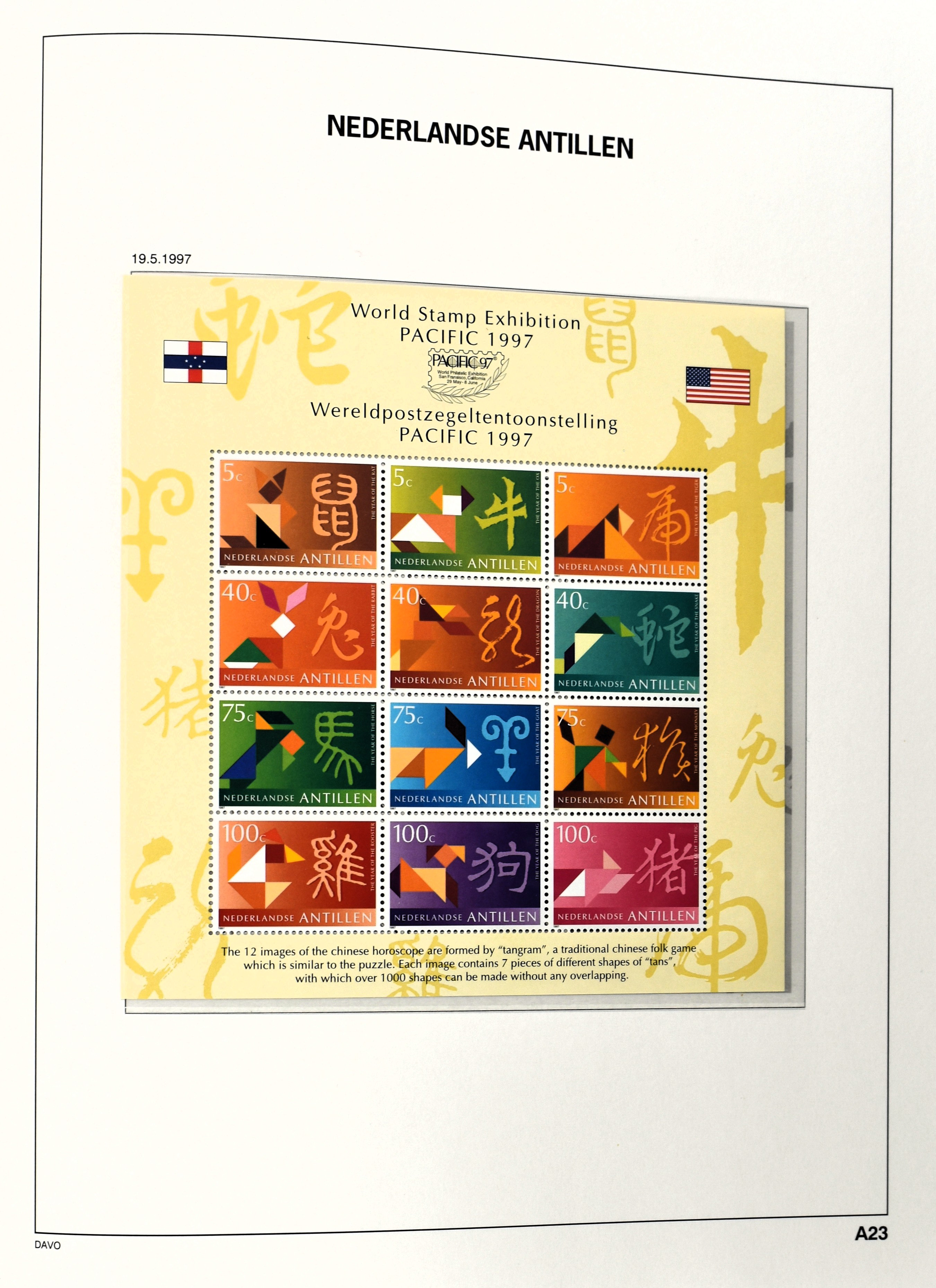 NEDERLAND EN O.G.D. 1945-1998, */** in 8 Davo Albums waarbij Nederland 1945-1998, Suriname 1975-1996, Nederlandse Antillen 1977-1998 etc. en iets diversen