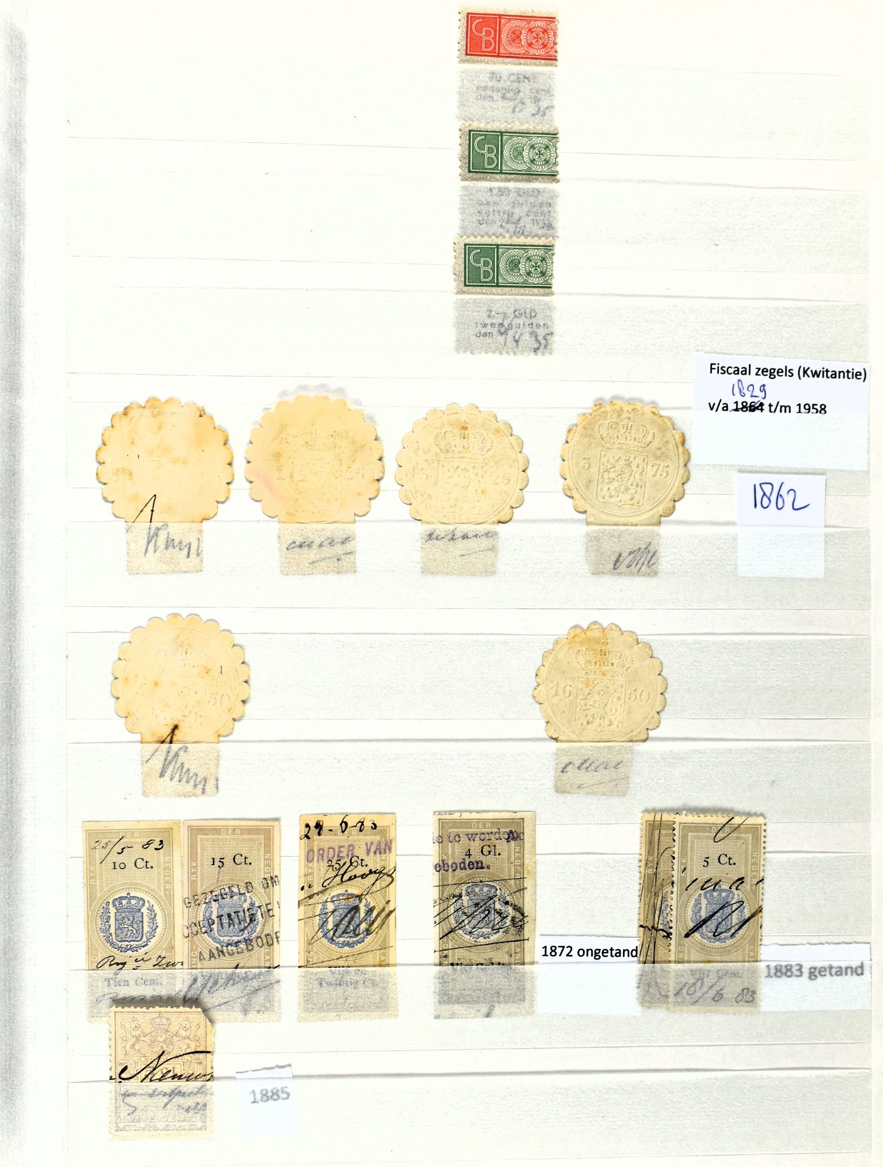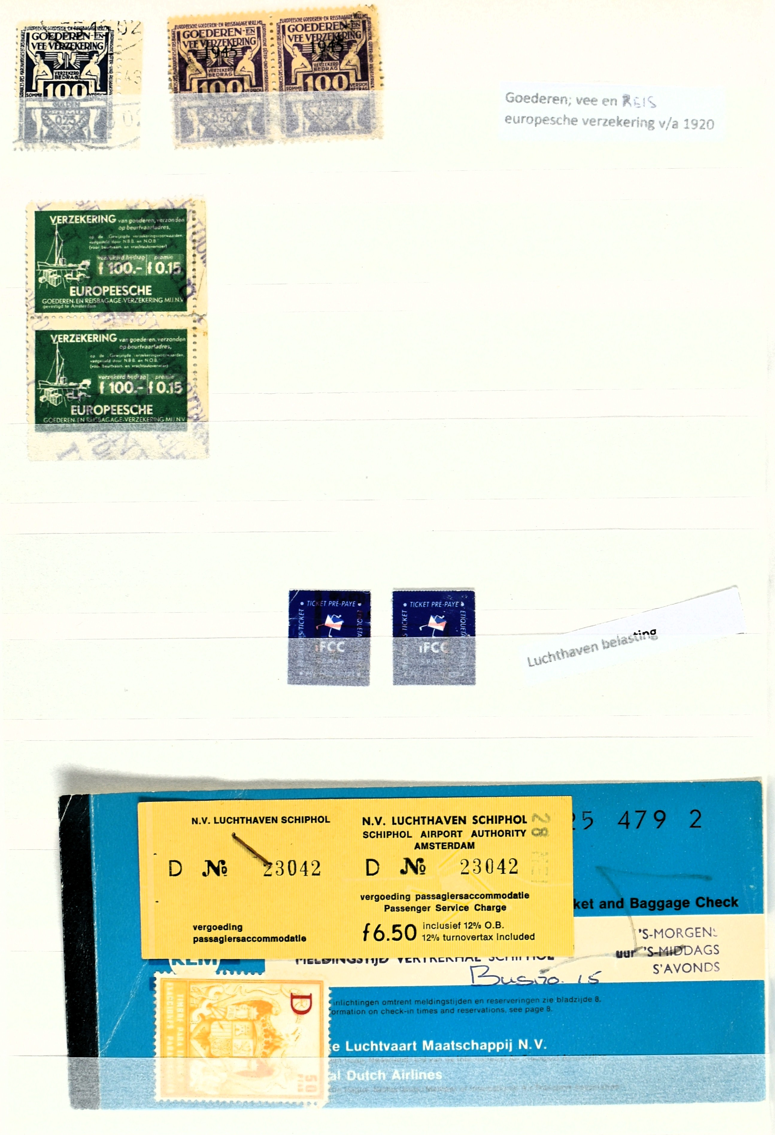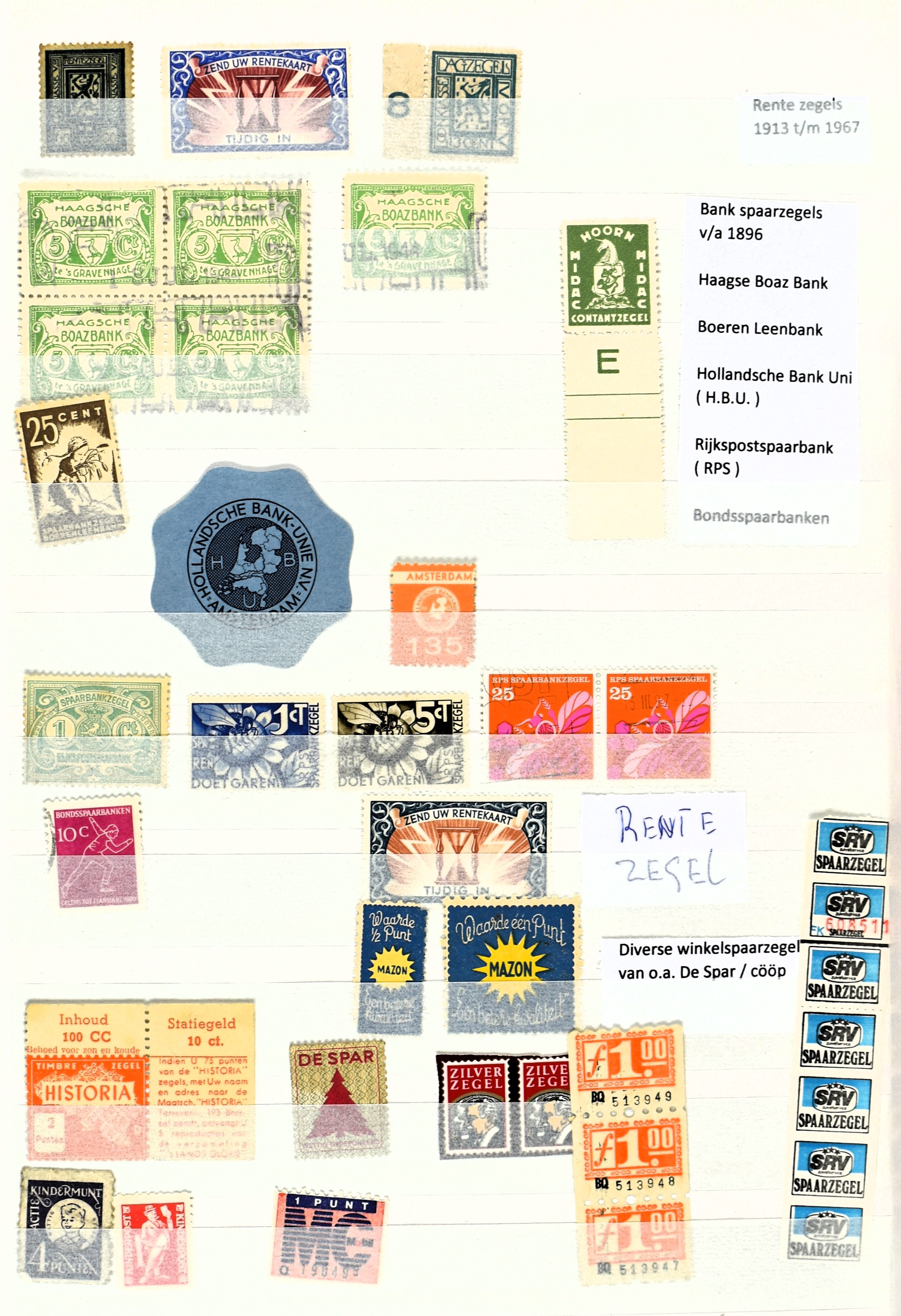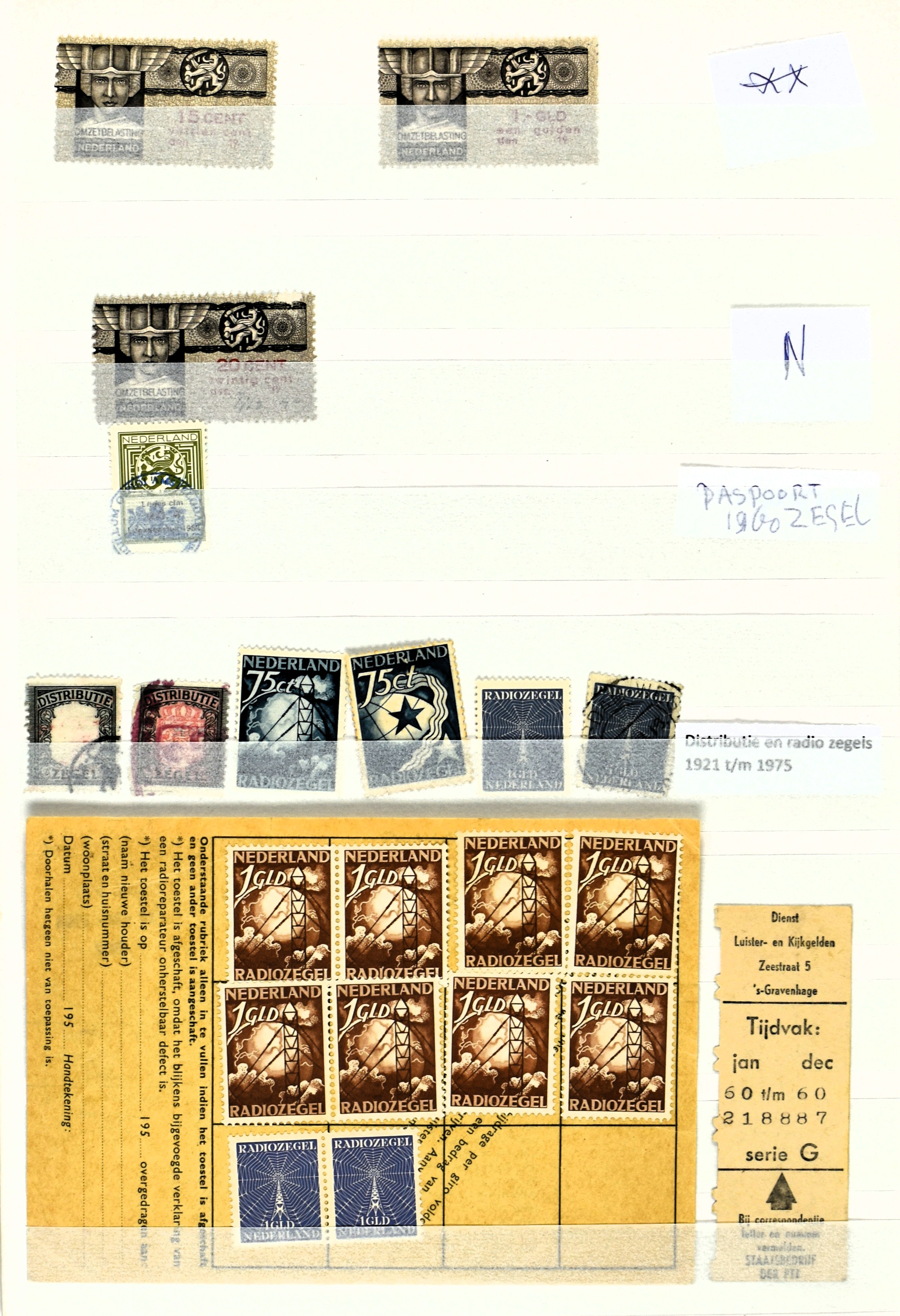 NEDERLAND EN O.G.D. 1830-1990, cinderella's, fiscaal, papiergeld enz., enz, in 3 insteekboeken, 2 mapjes en 1 doosje. Tevens 1 insteekboek Frankrijk va.1850-2010 (hoofdzakelijk gebruikt), met aardige nummers (Image) (Image2)