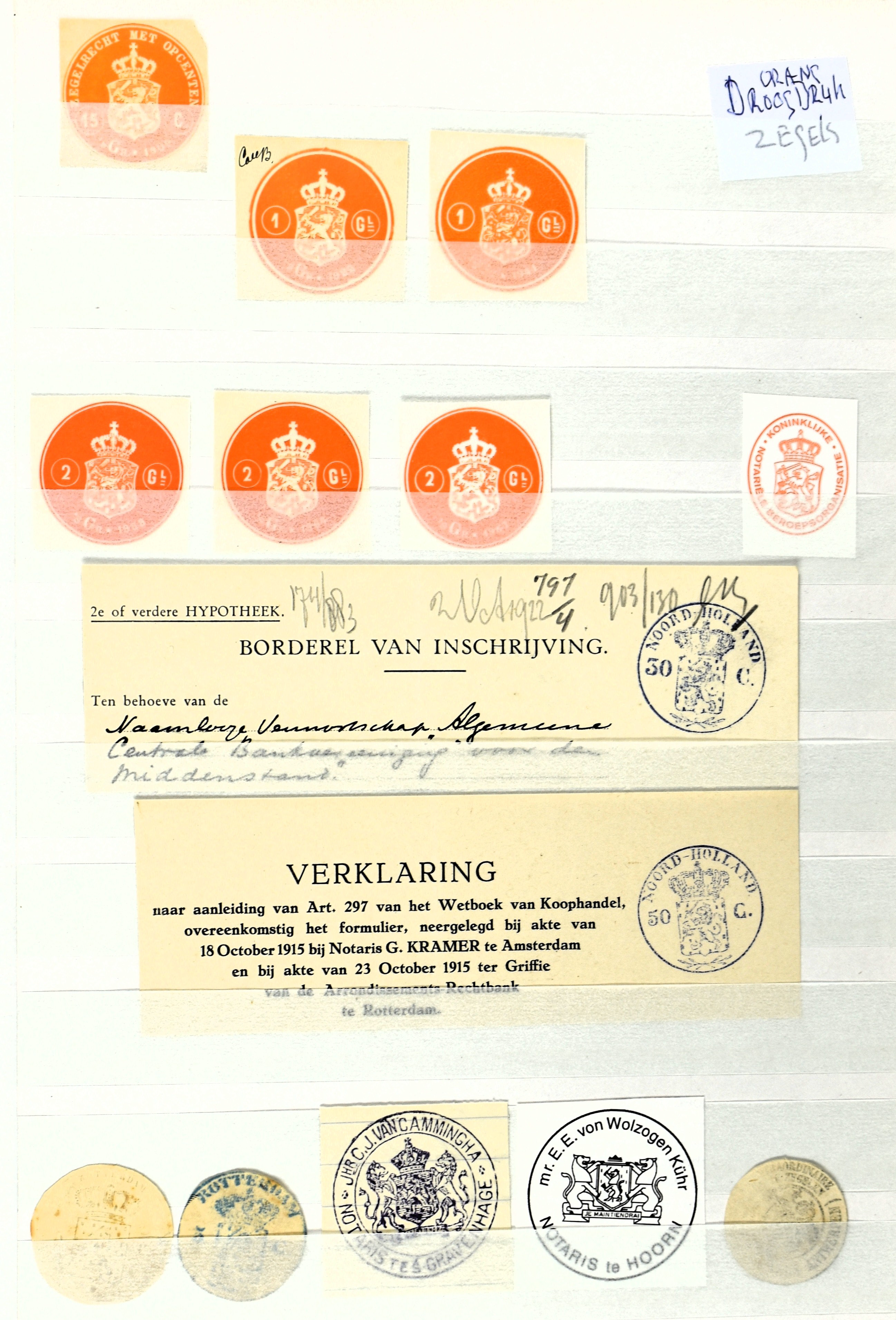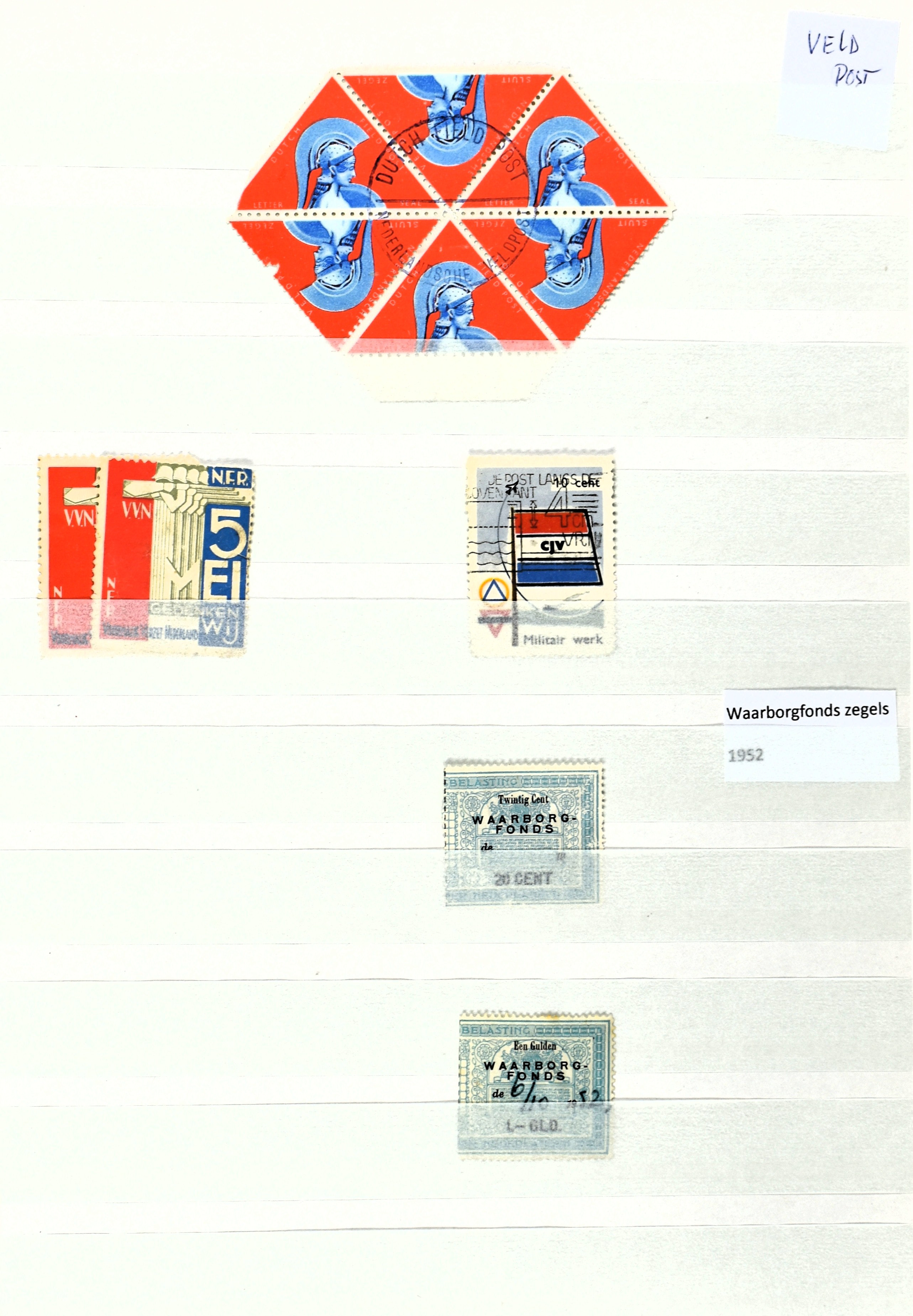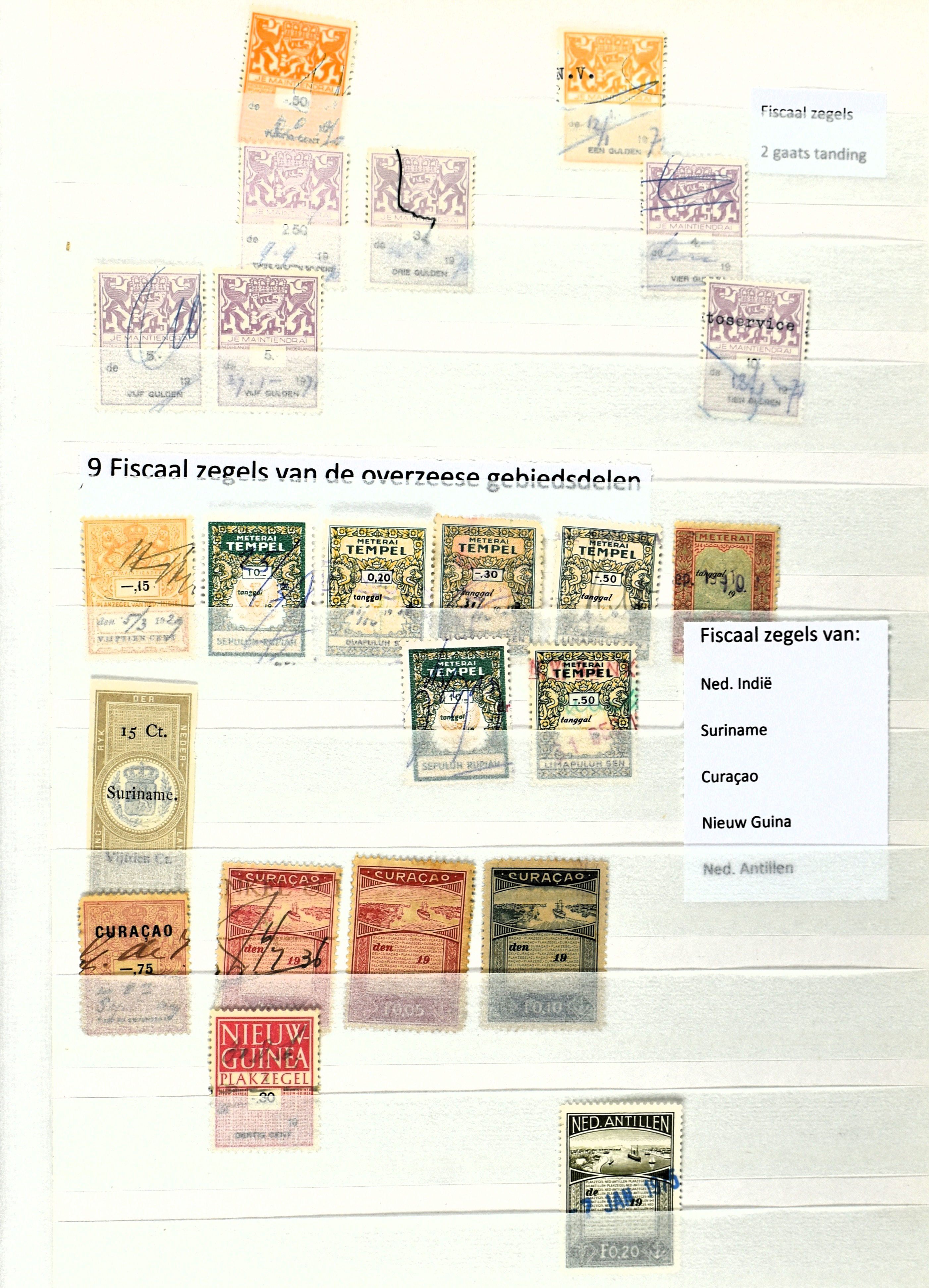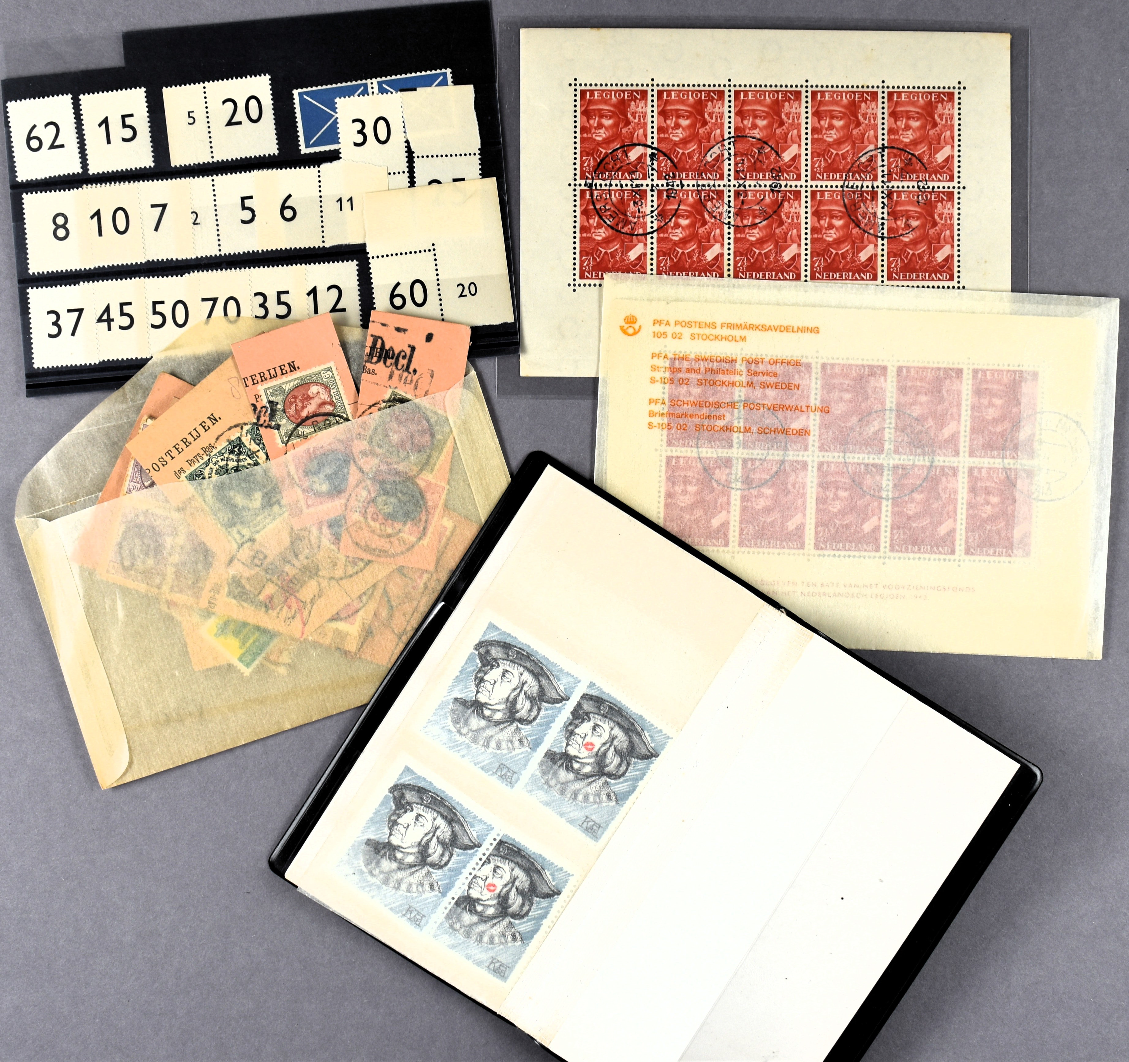 NEDERLAND EN O.G.D. 1830-1990, cinderella's, fiscaal, papiergeld enz., enz, in 3 insteekboeken, 2 mapjes en 1 doosje. Tevens 1 insteekboek Frankrijk va.1850-2010 (hoofdzakelijk gebruikt), met aardige nummers (Image) (Image2)