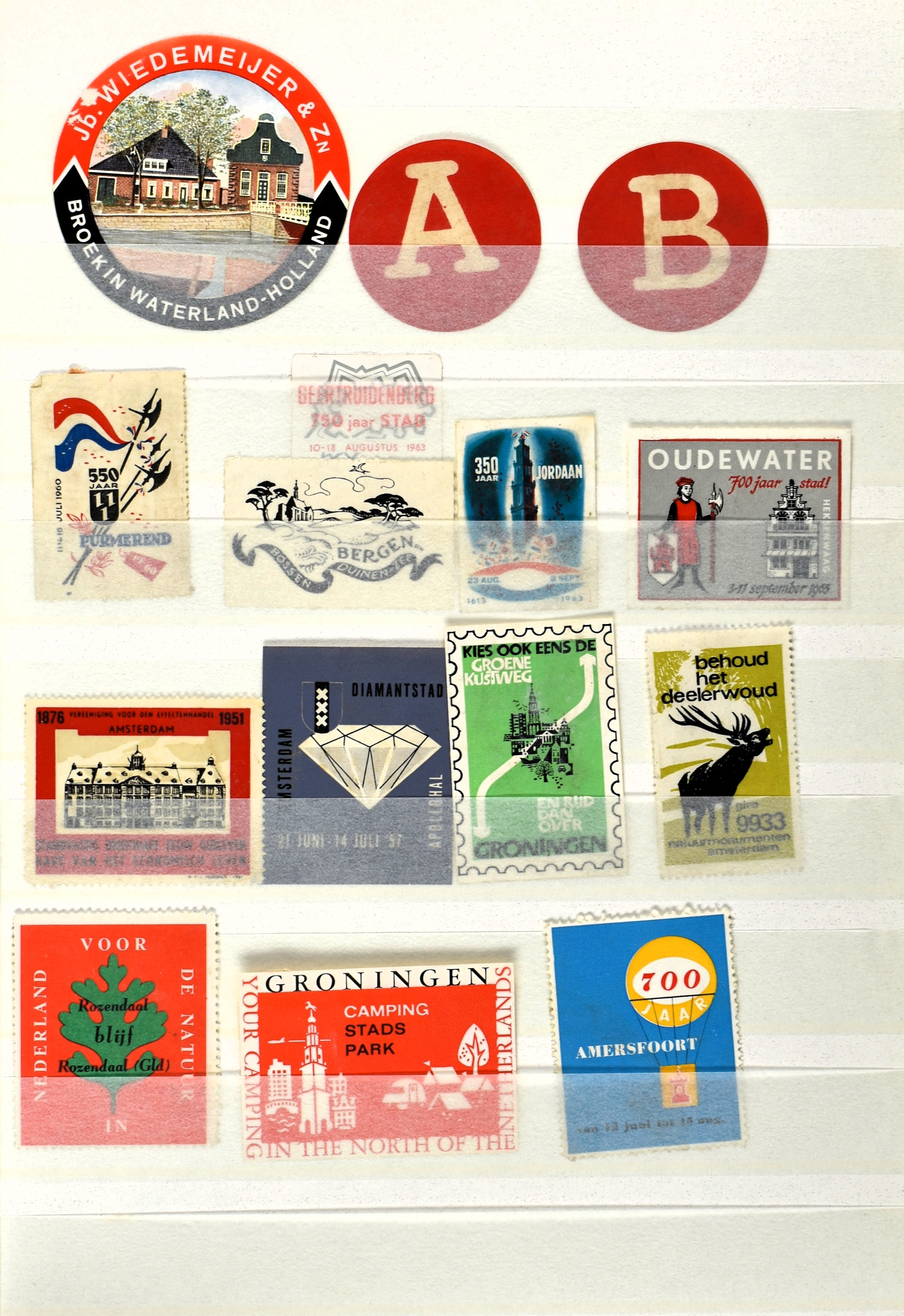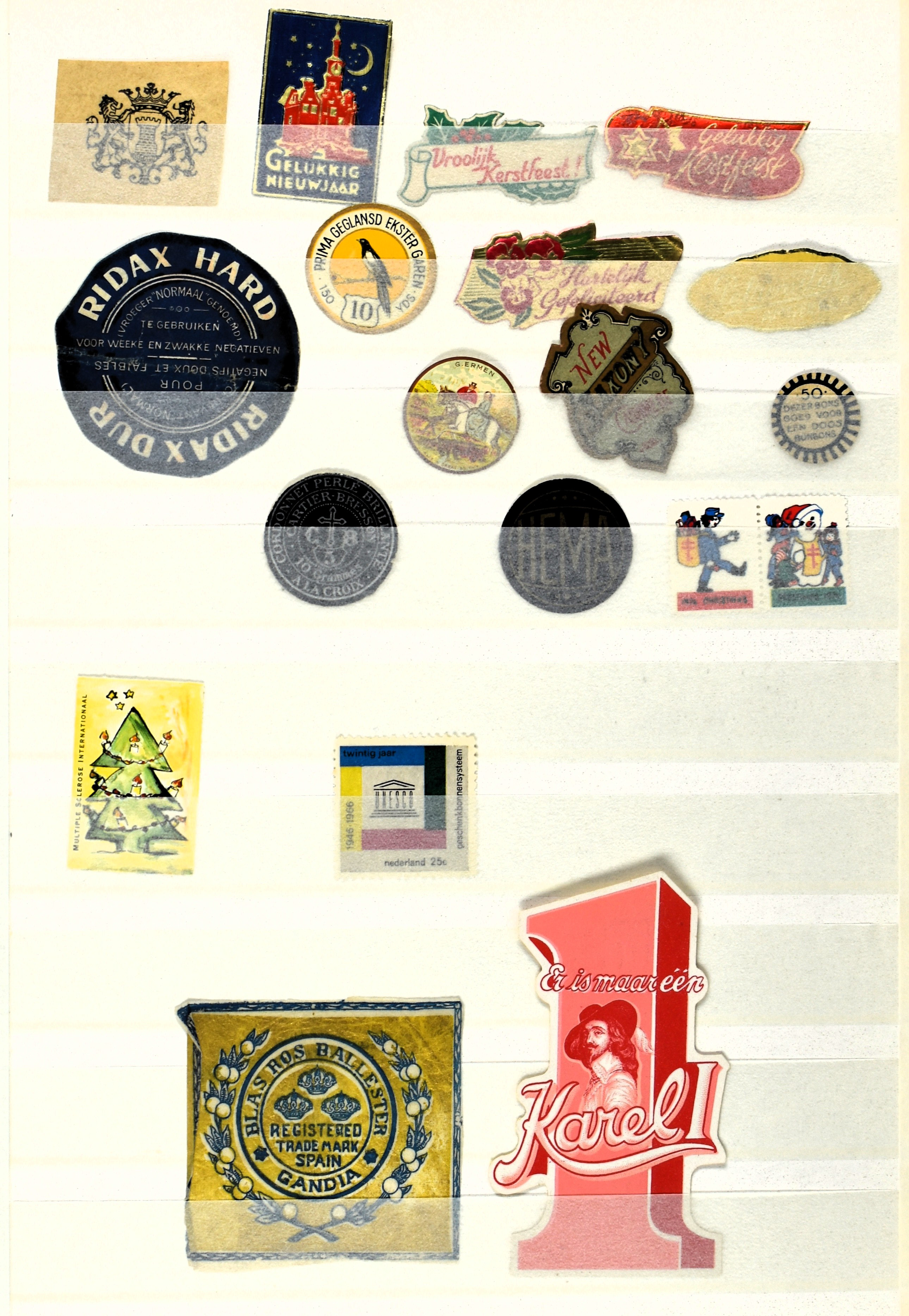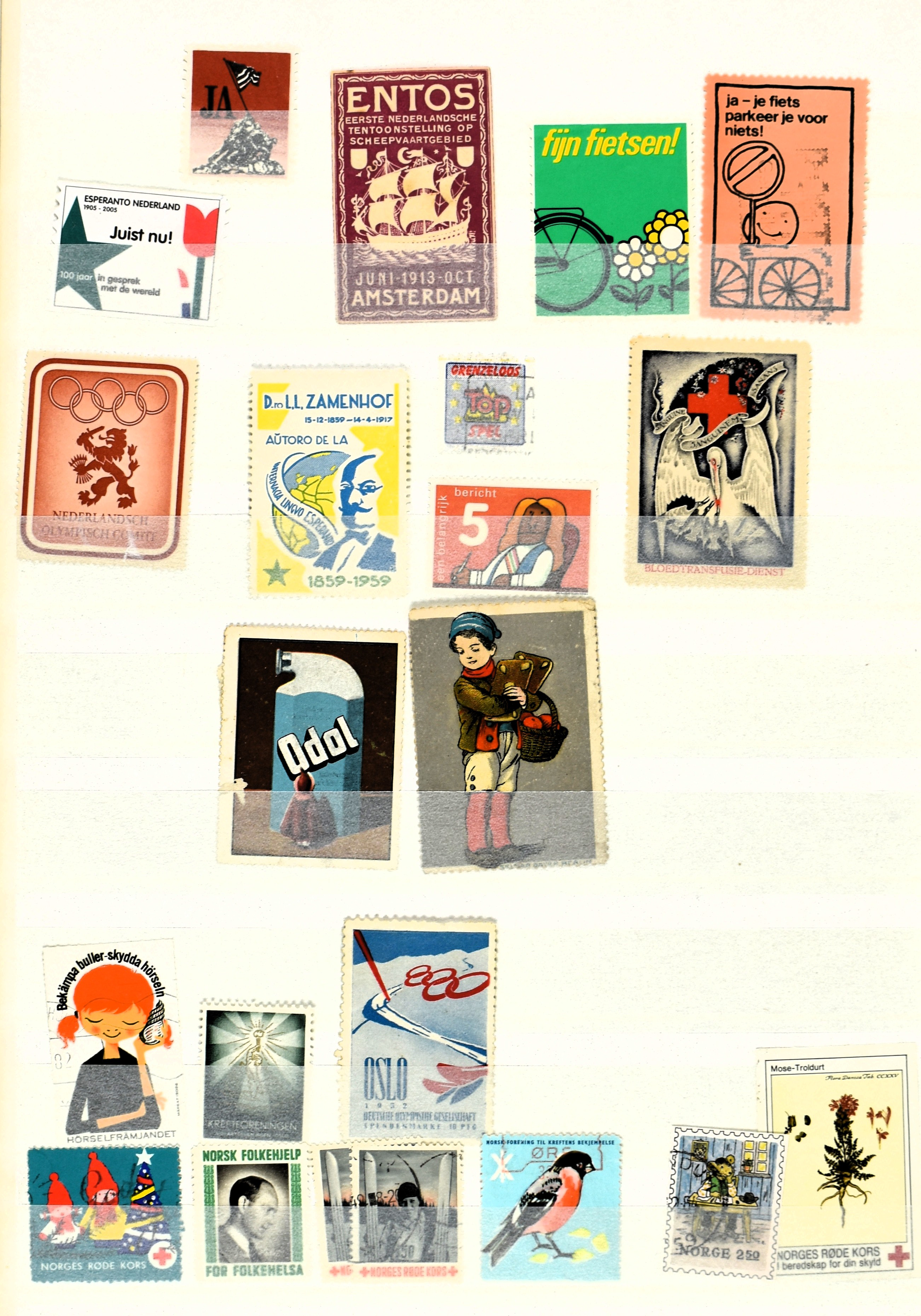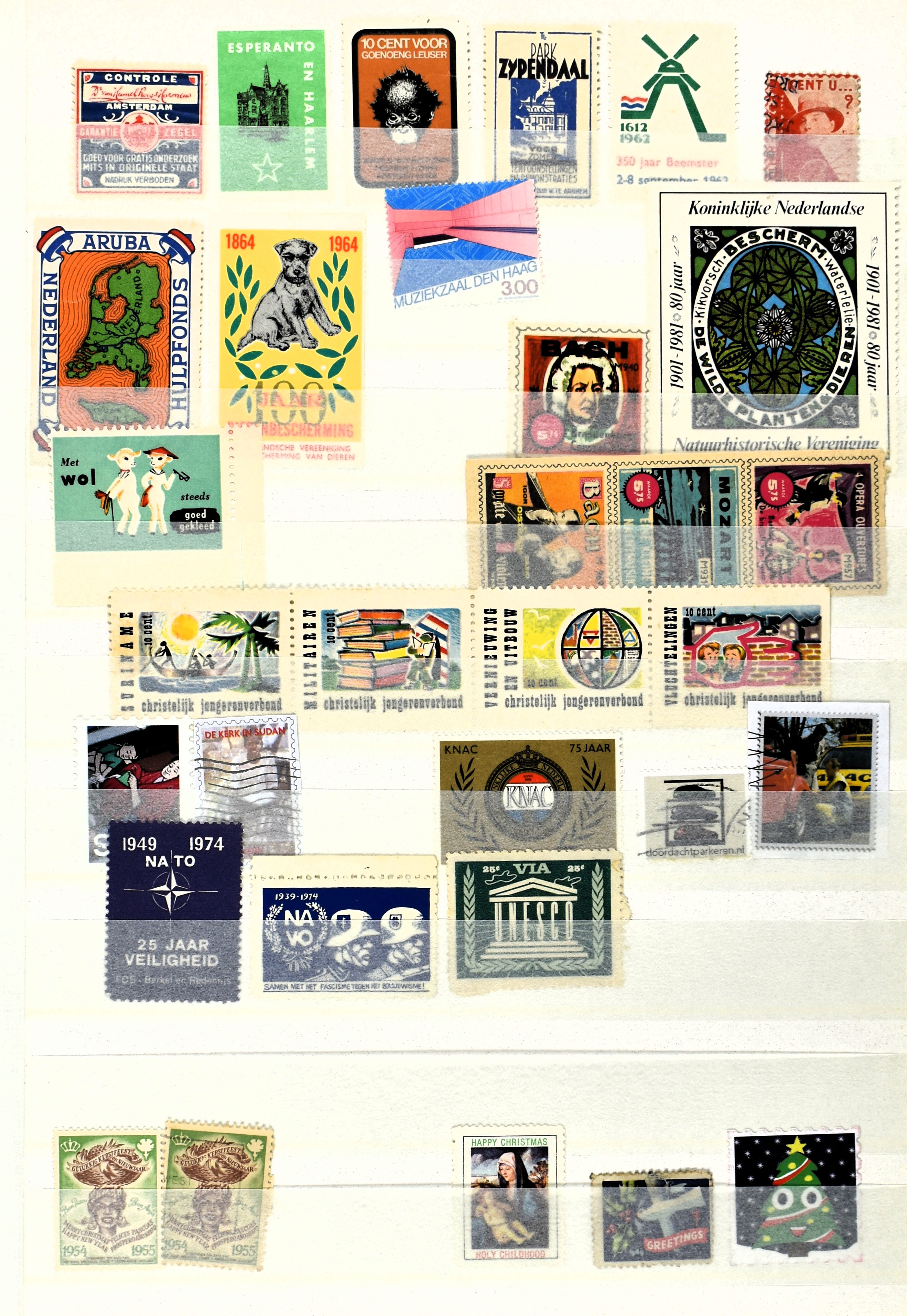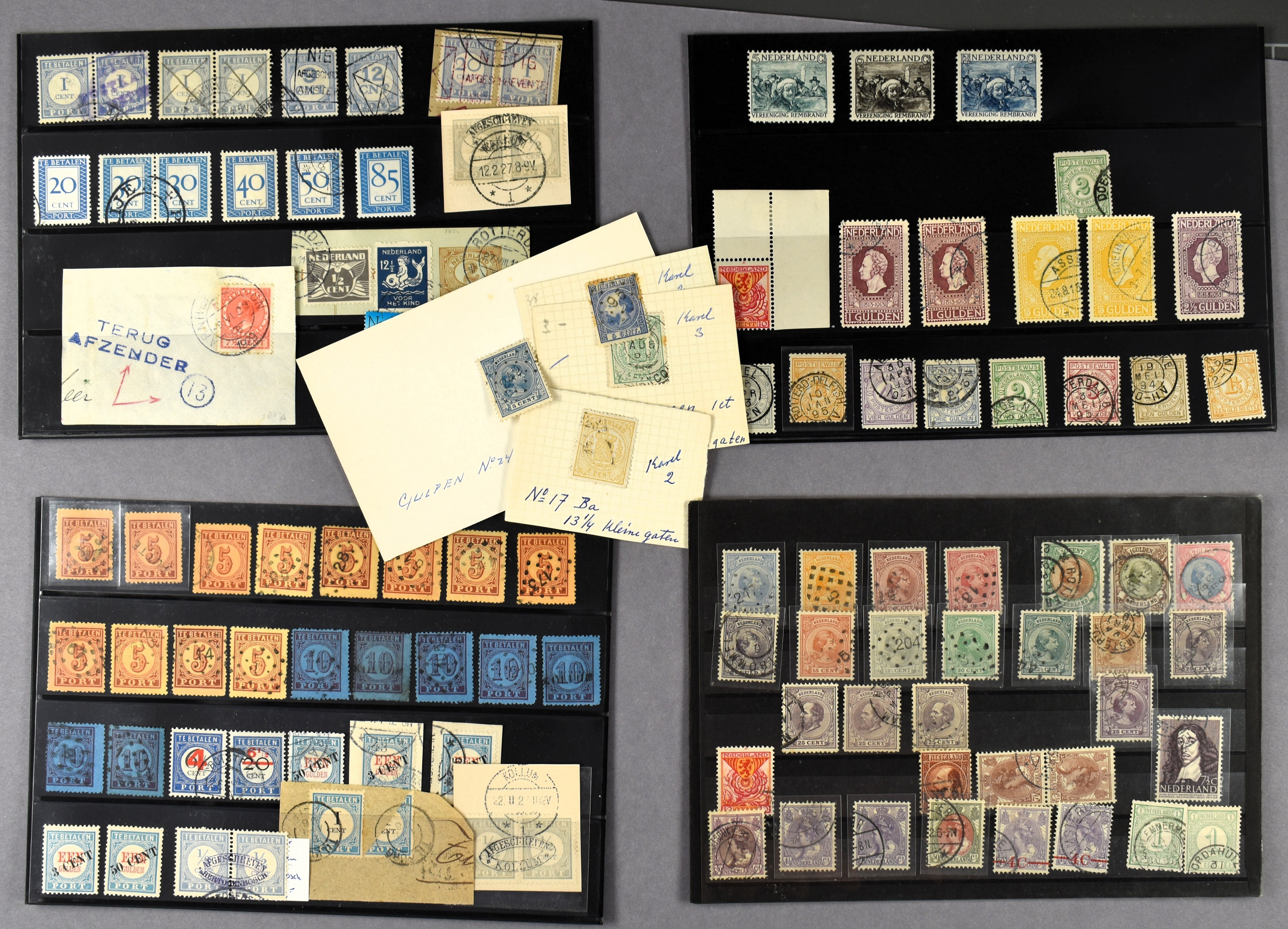 NEDERLAND EN O.G.D. 1830-1990, cinderella's, fiscaal, papiergeld enz., enz, in 3 insteekboeken, 2 mapjes en 1 doosje. Tevens 1 insteekboek Frankrijk va.1850-2010 (hoofdzakelijk gebruikt), met aardige nummers (Image) (Image2)