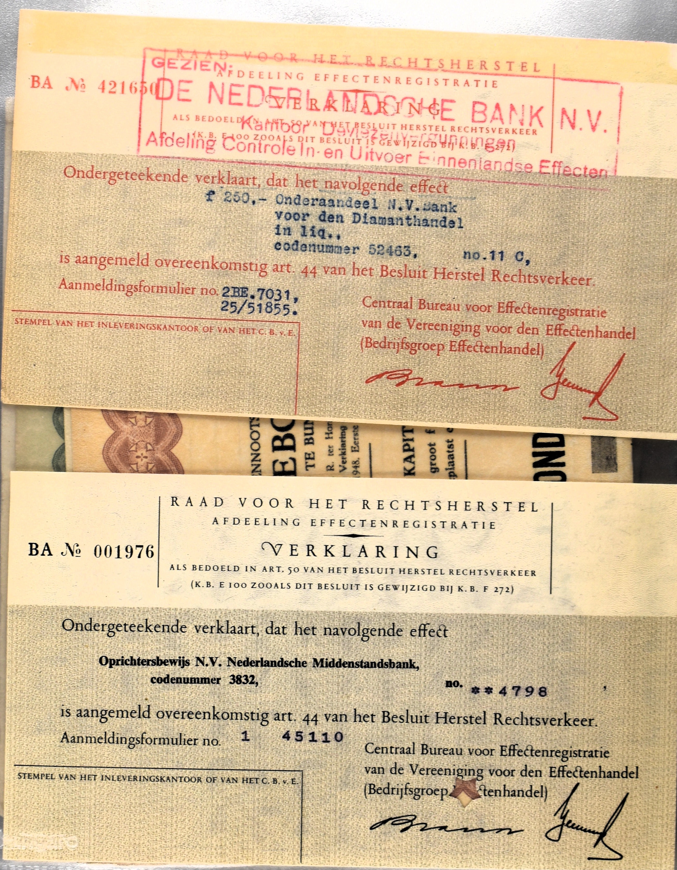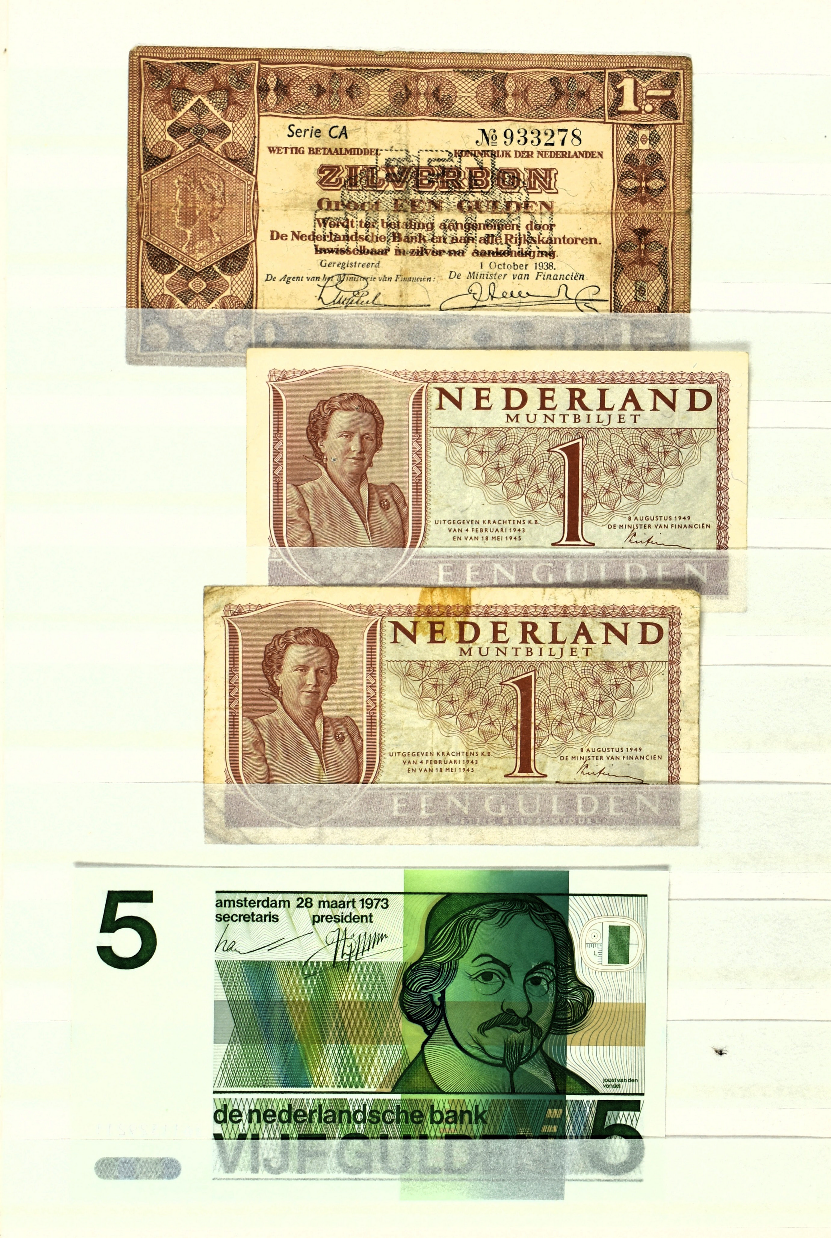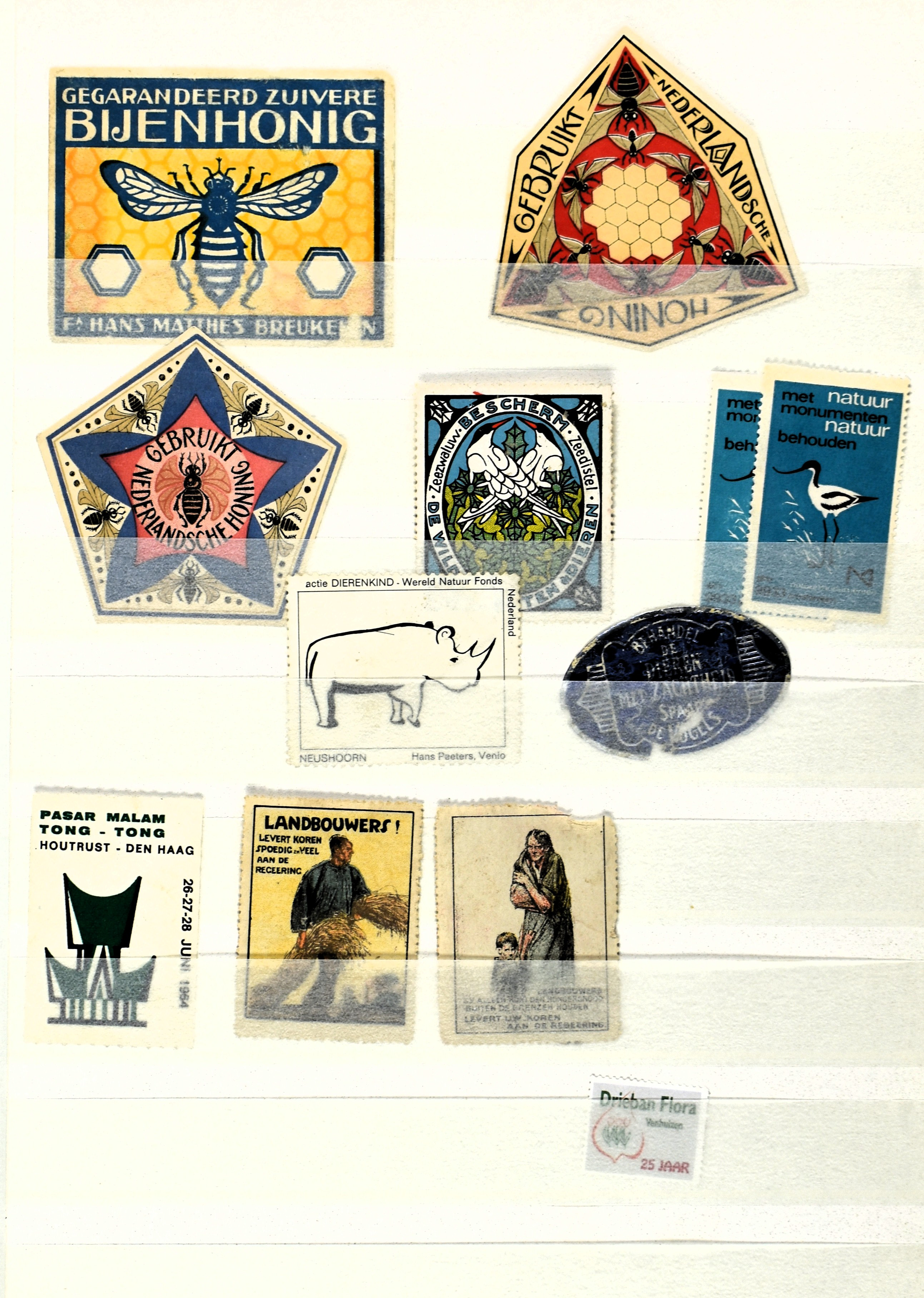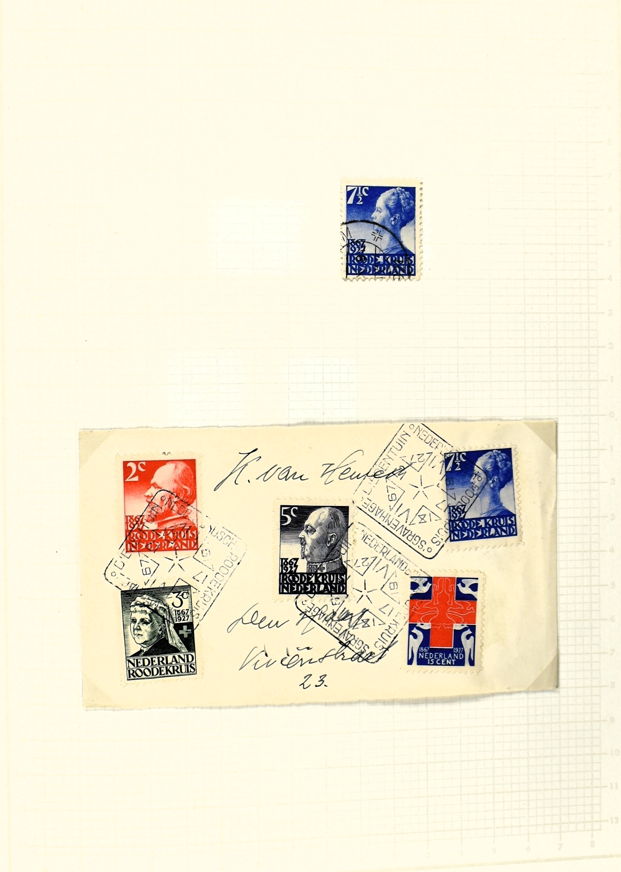 NEDERLAND EN O.G.D. 1830-1990, cinderella's, fiscaal, papiergeld enz., enz, in 3 insteekboeken, 2 mapjes en 1 doosje. Tevens 1 insteekboek Frankrijk va.1850-2010 (hoofdzakelijk gebruikt), met aardige nummers (Image) (Image2)