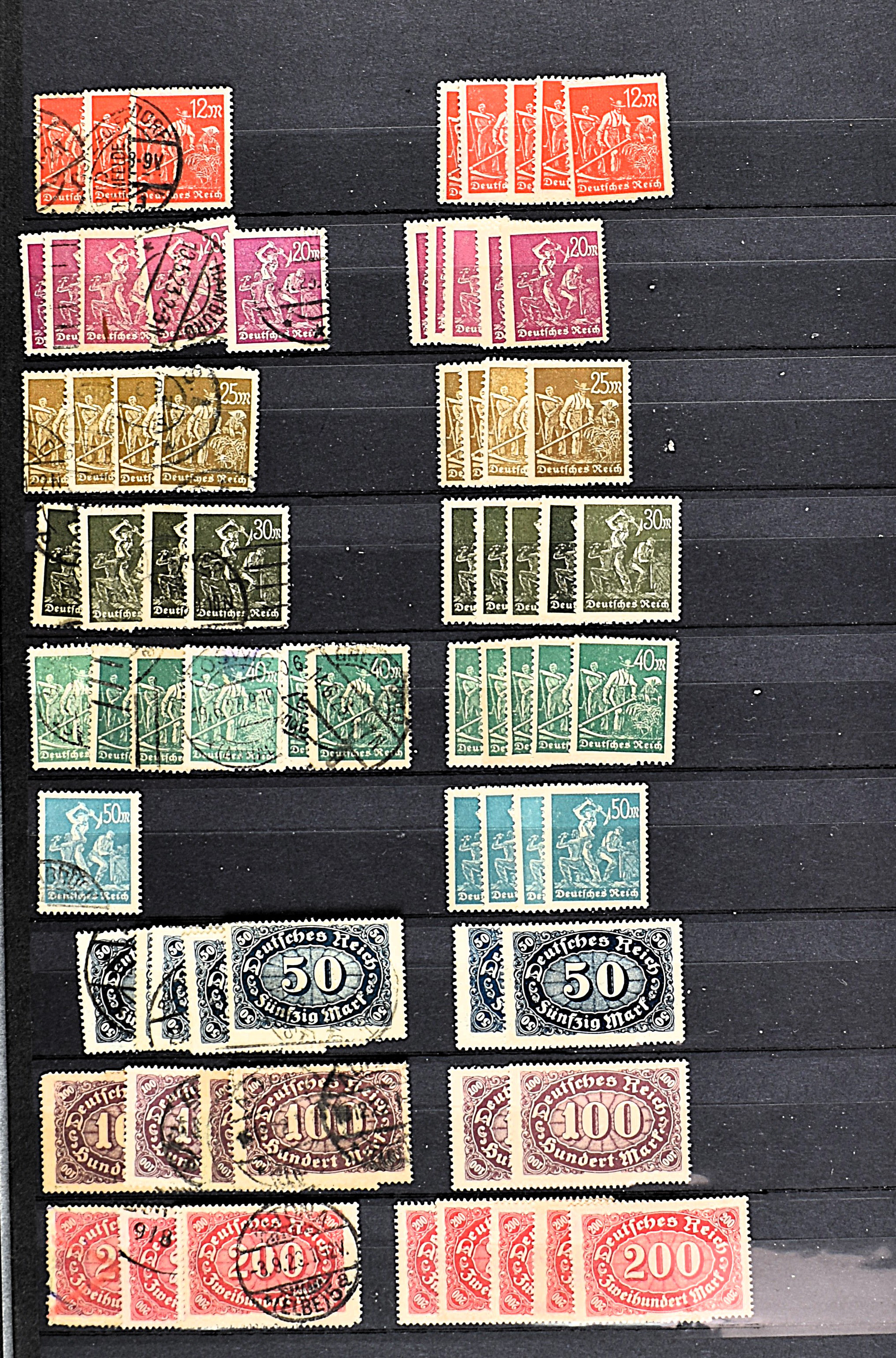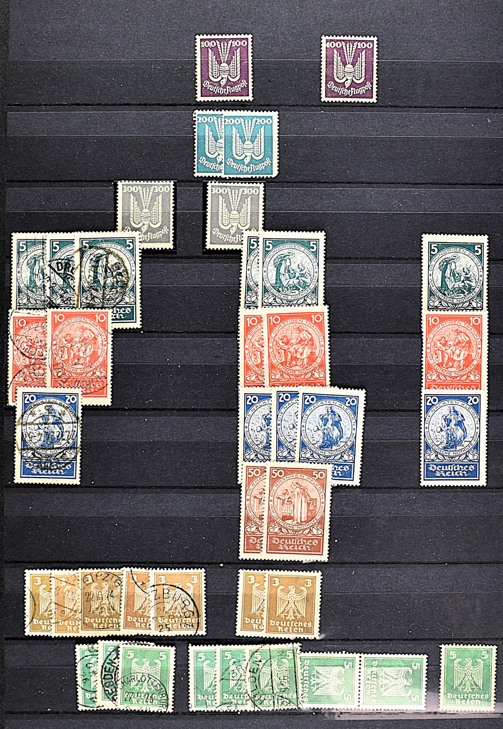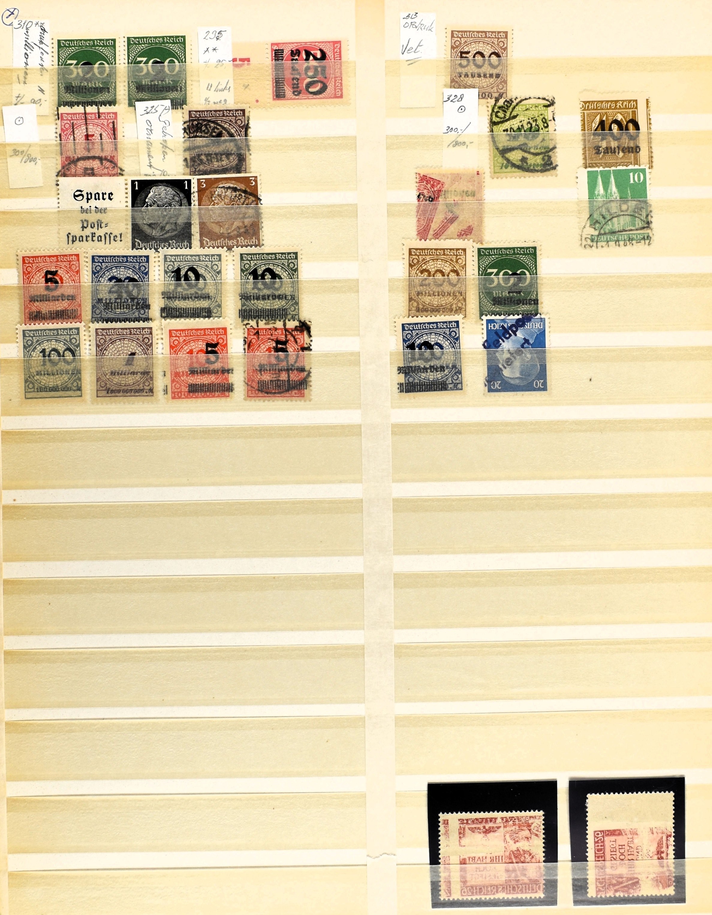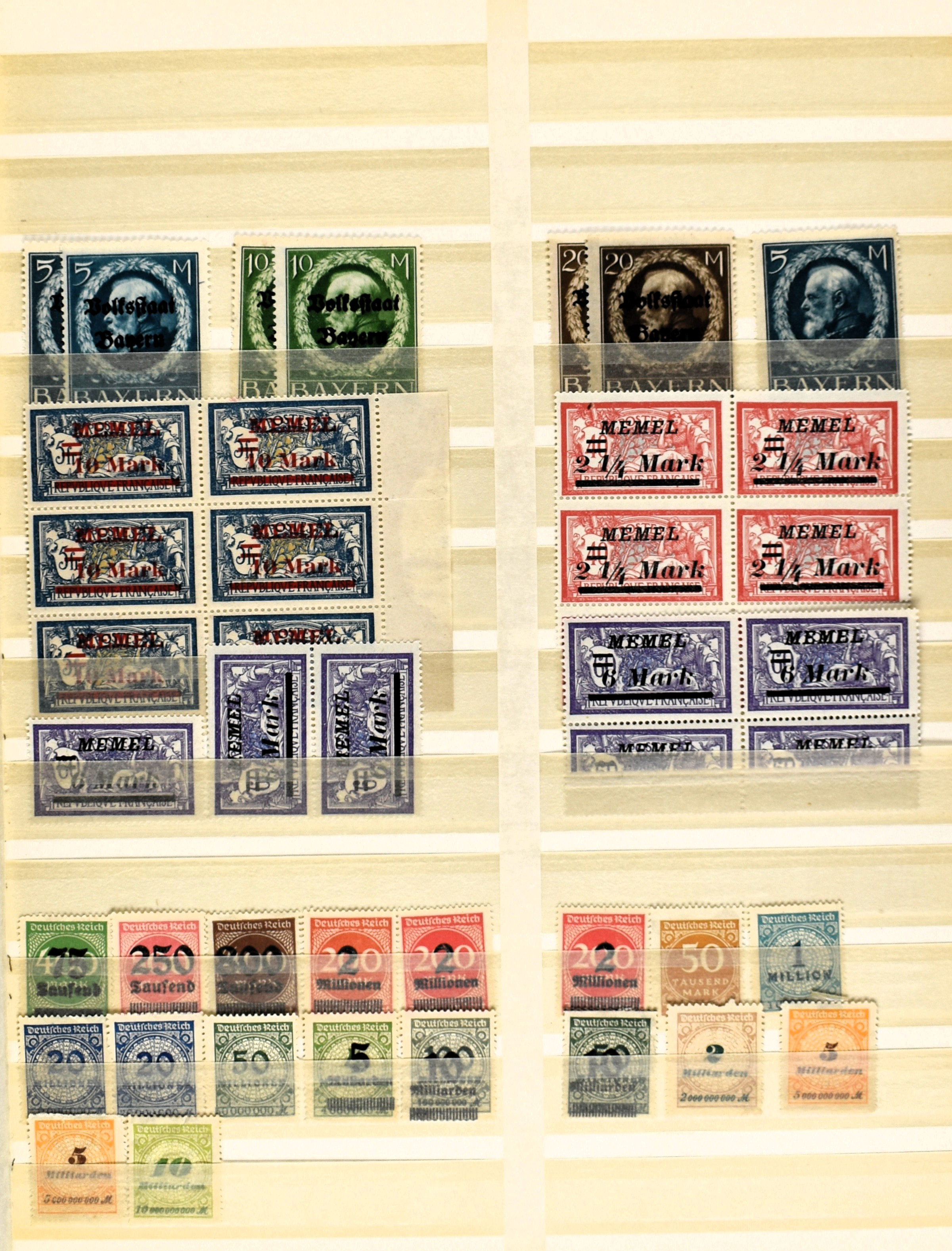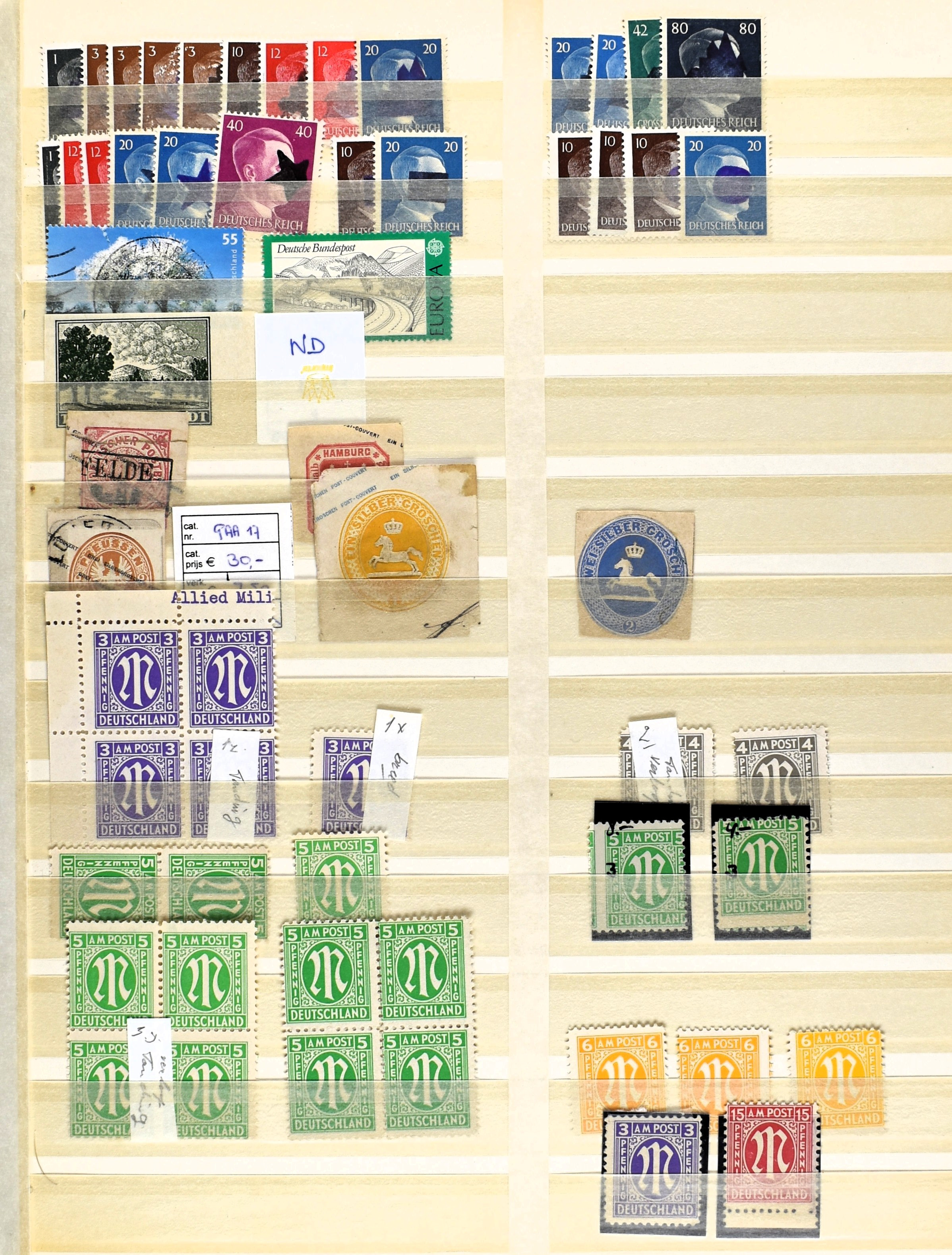 GERMANY 1872-1960, o/*/** in 2 albums, 1 binder and 8 stock books with several better numbers and sets, some varieties, covers etc. The weight of the balance lies in the German Empire, but also Occupational Issues, Saar, German Democratic
