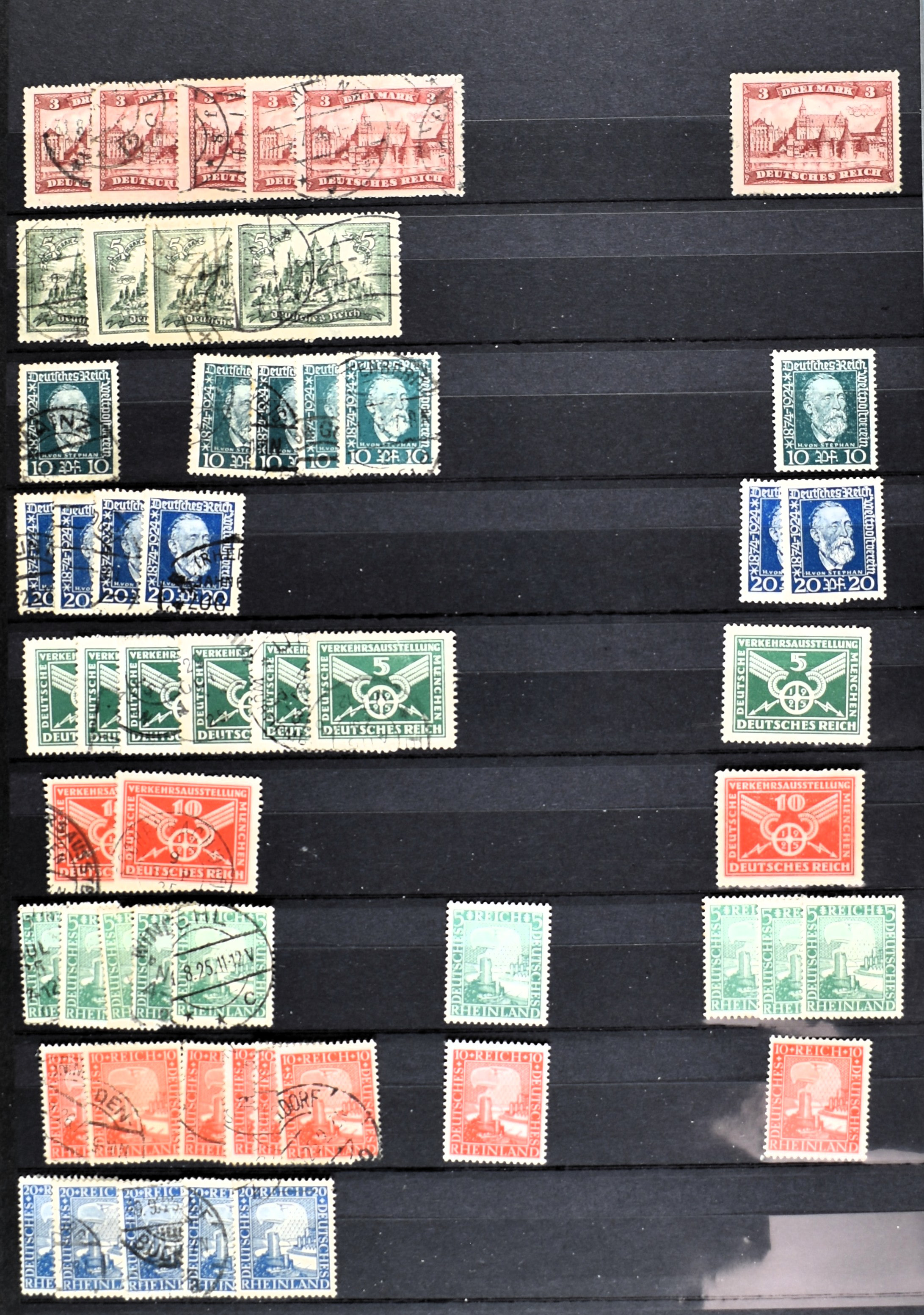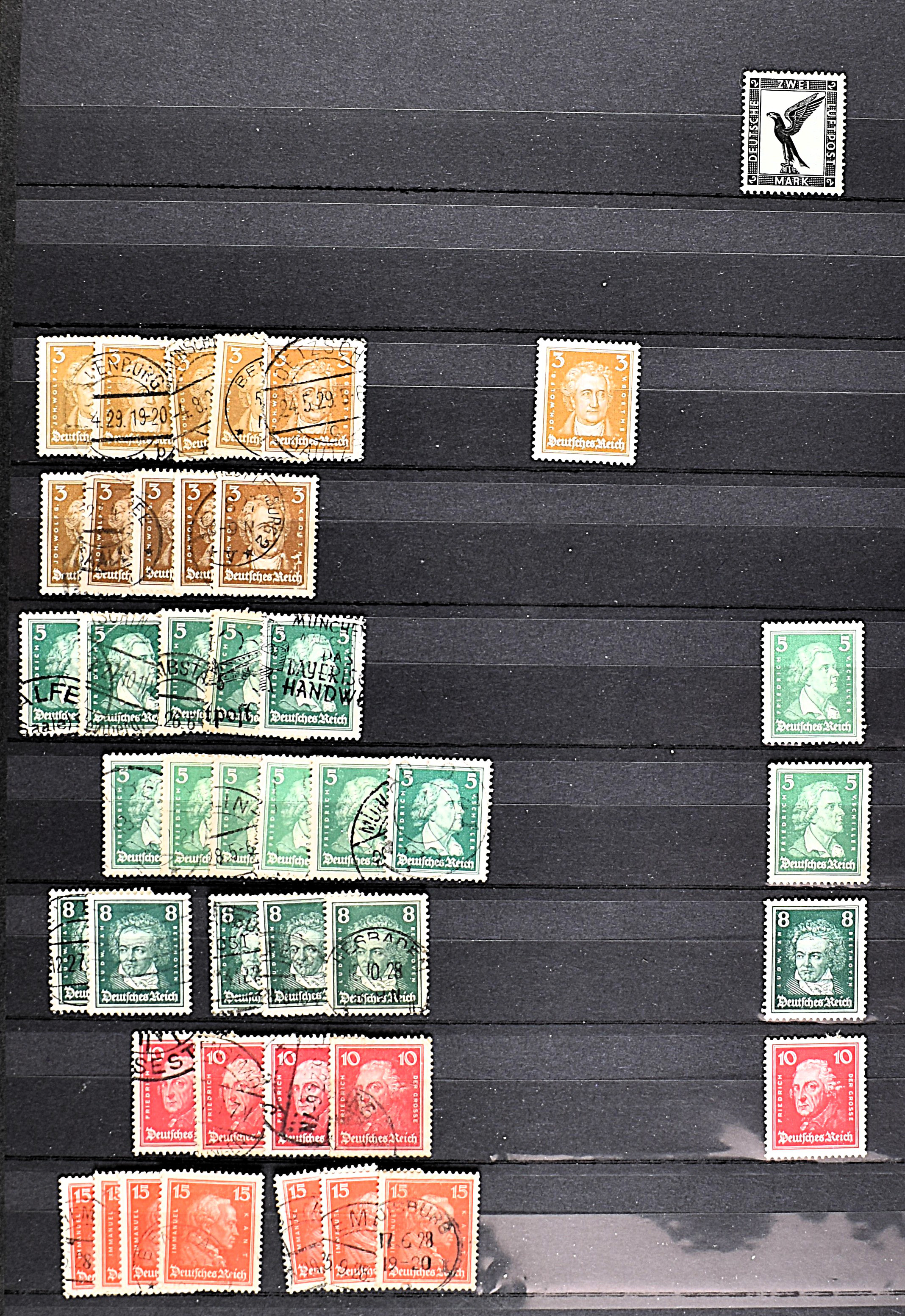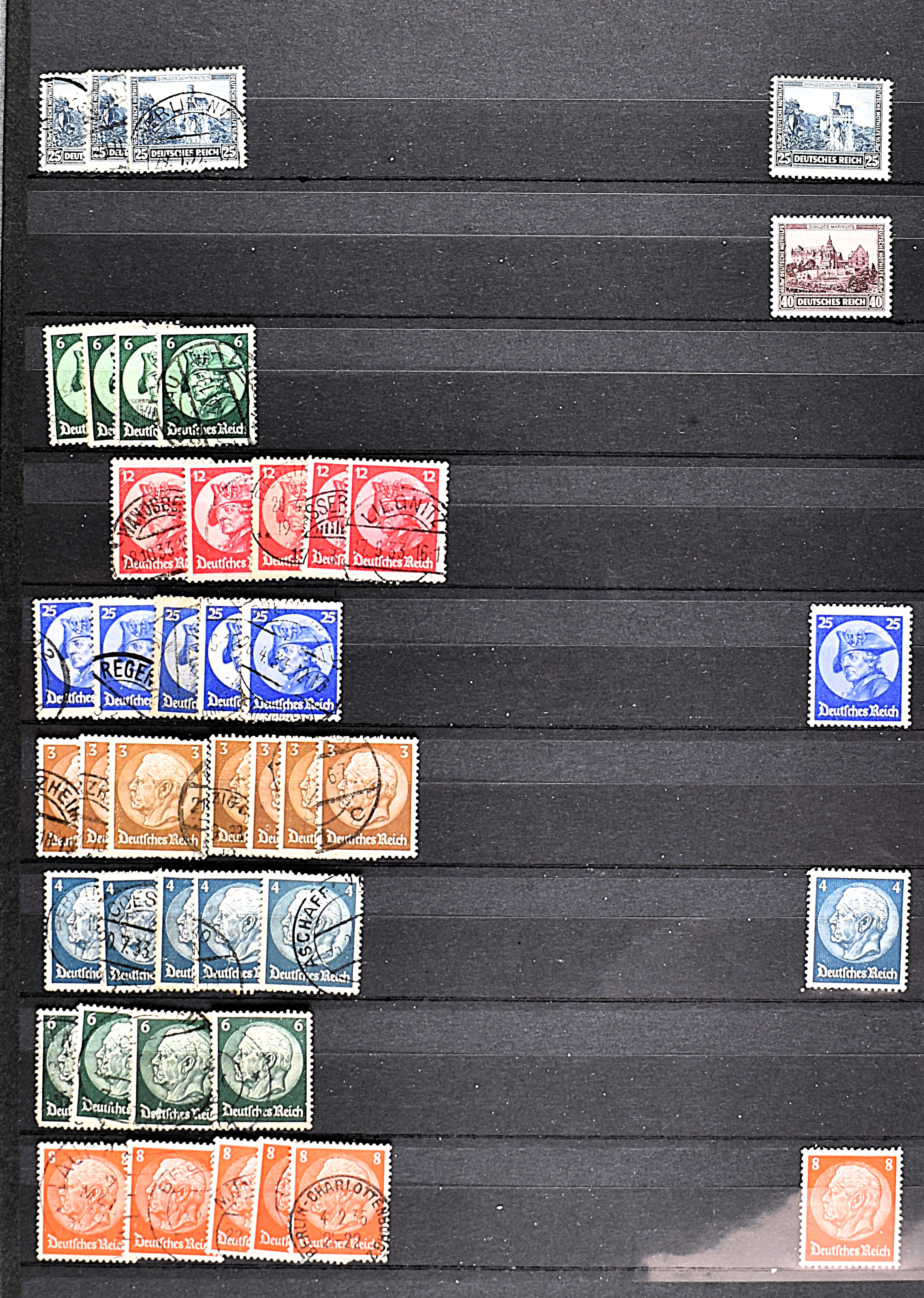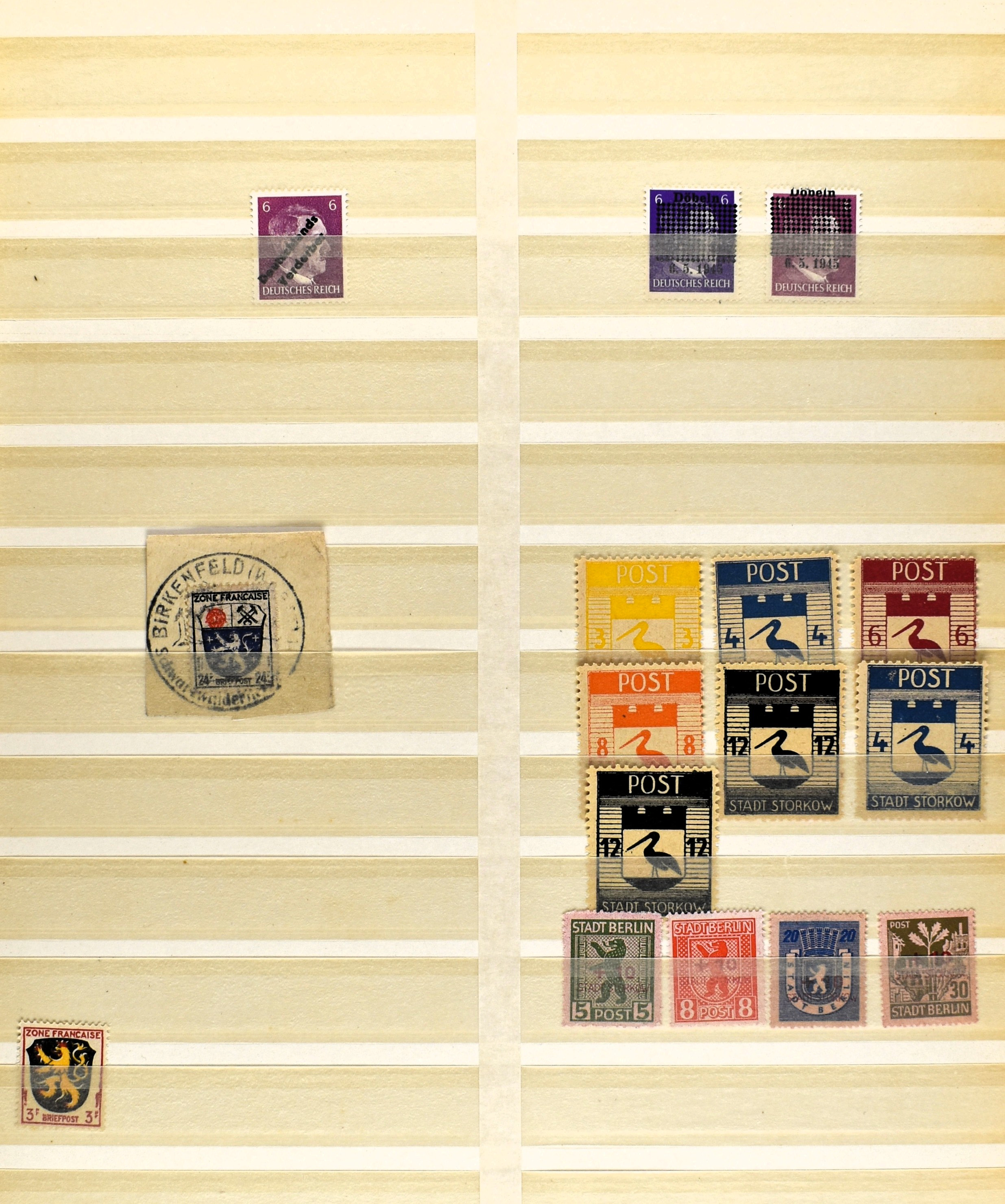 GERMANY 1872-1960, o/*/** in 2 albums, 1 binder and 8 stock books with several better numbers and sets, some varieties, covers etc. The weight of the balance lies in the German Empire, but also Occupational Issues, Saar, German Democratic