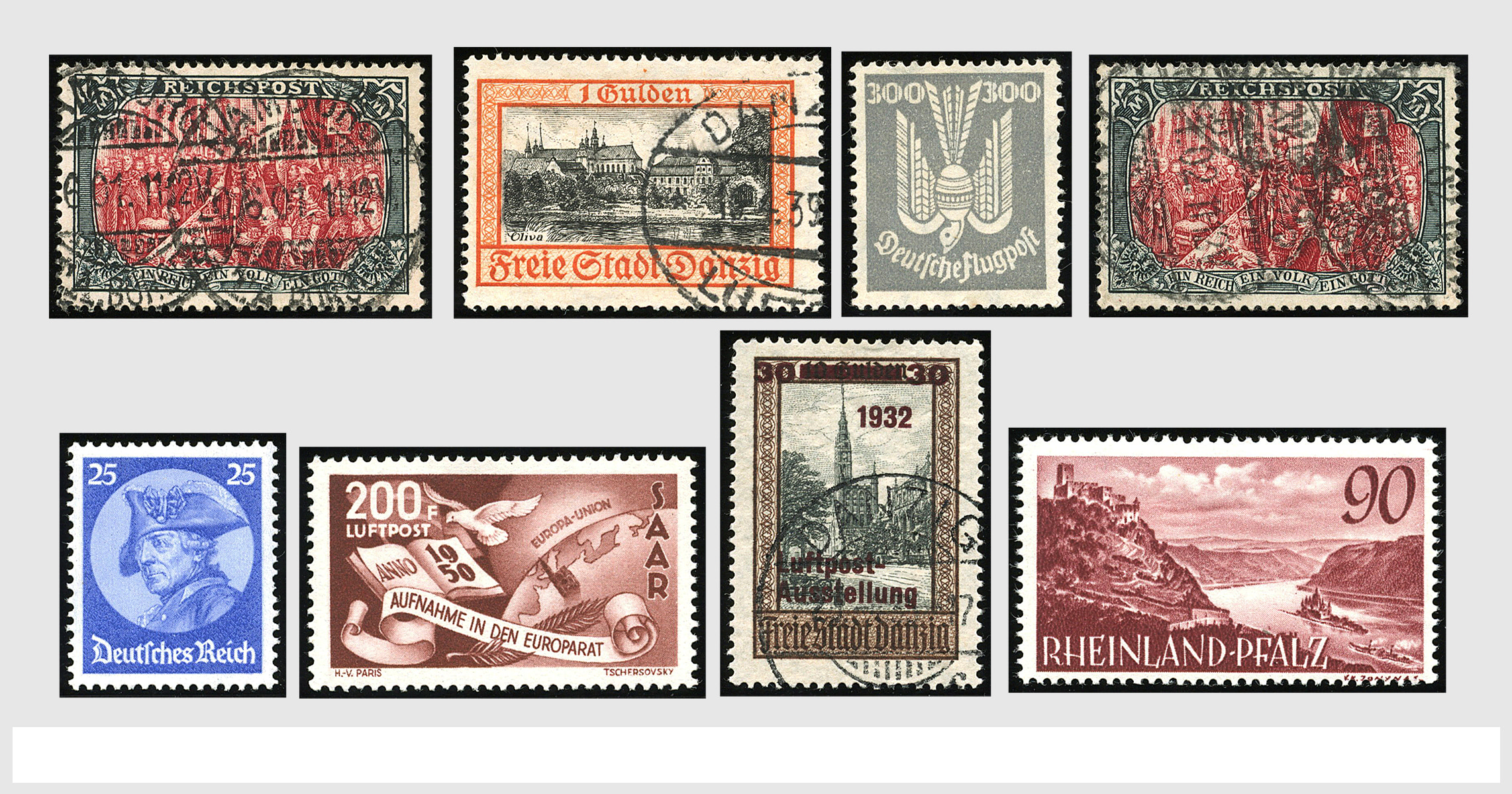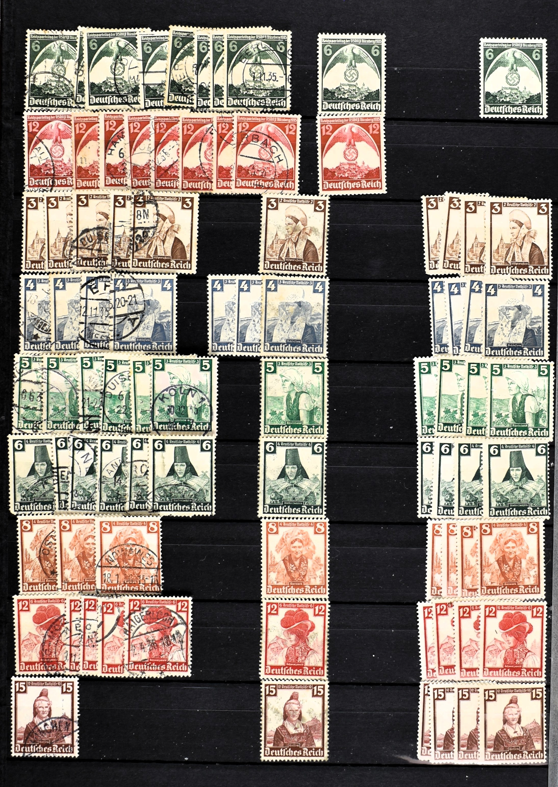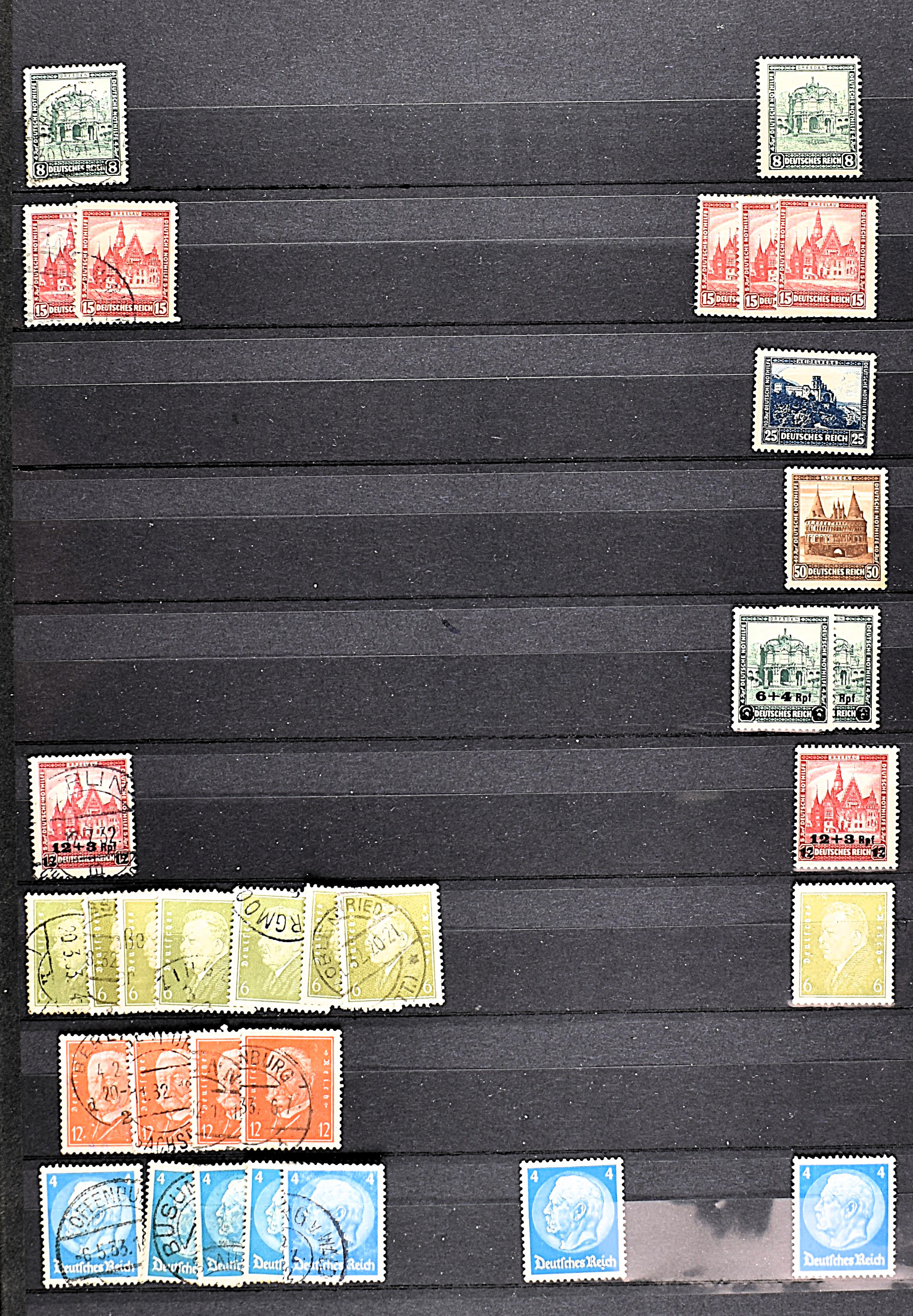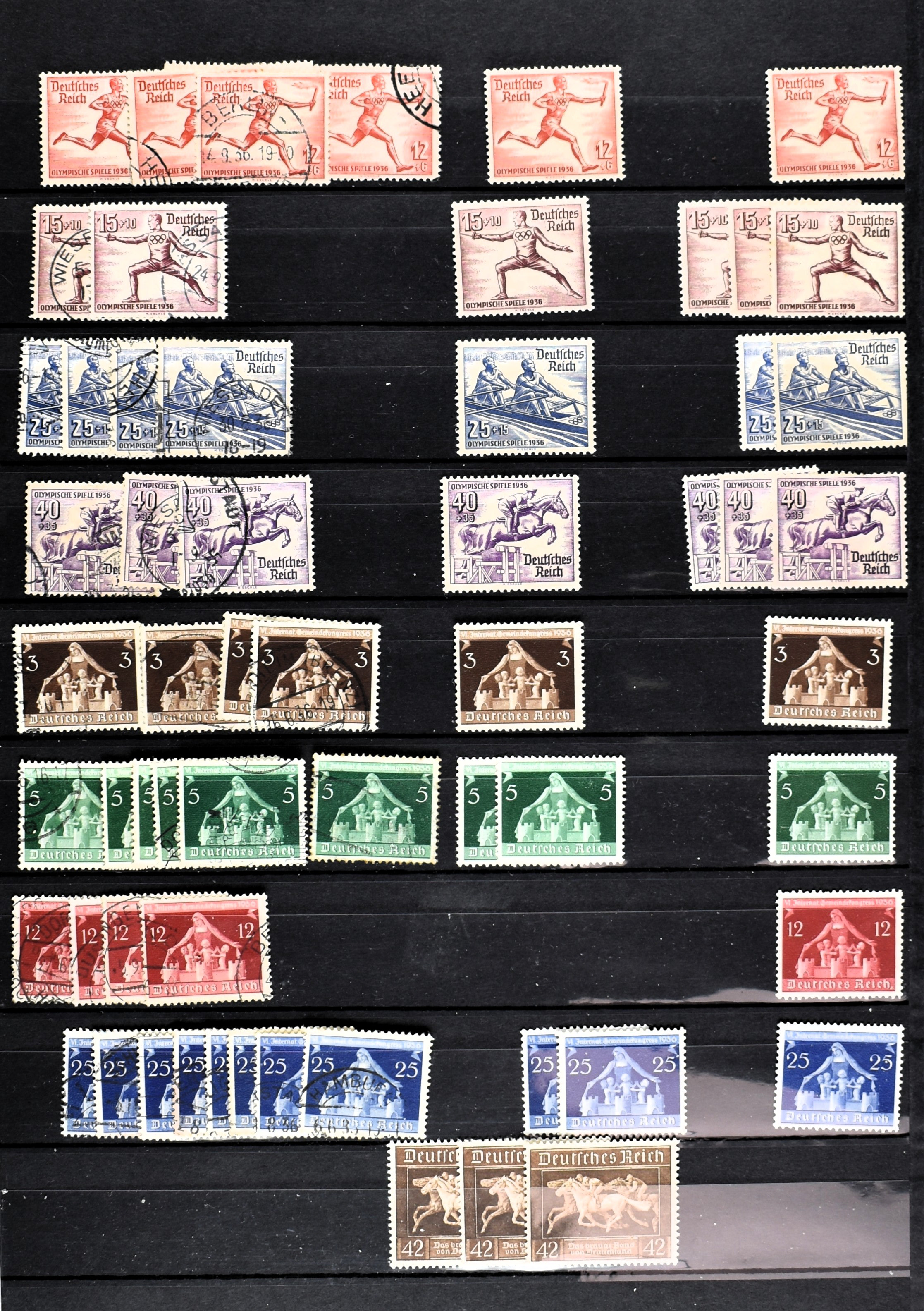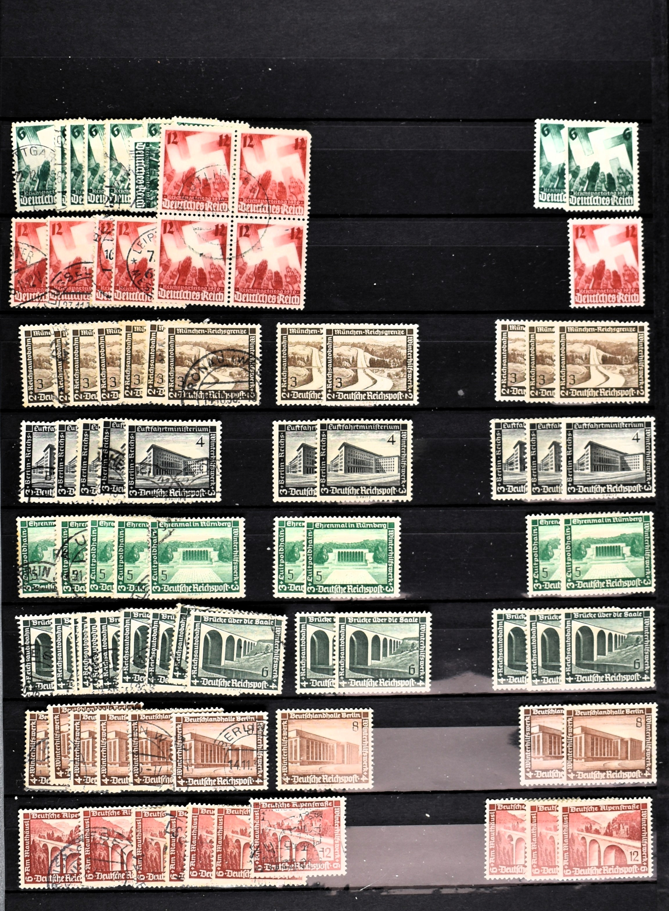 GERMANY 1872-1960, o/*/** in 2 albums, 1 binder and 8 stock books with several better numbers and sets, some varieties, covers etc. The weight of the balance lies in the German Empire, but also Occupational Issues, Saar, German Democratic