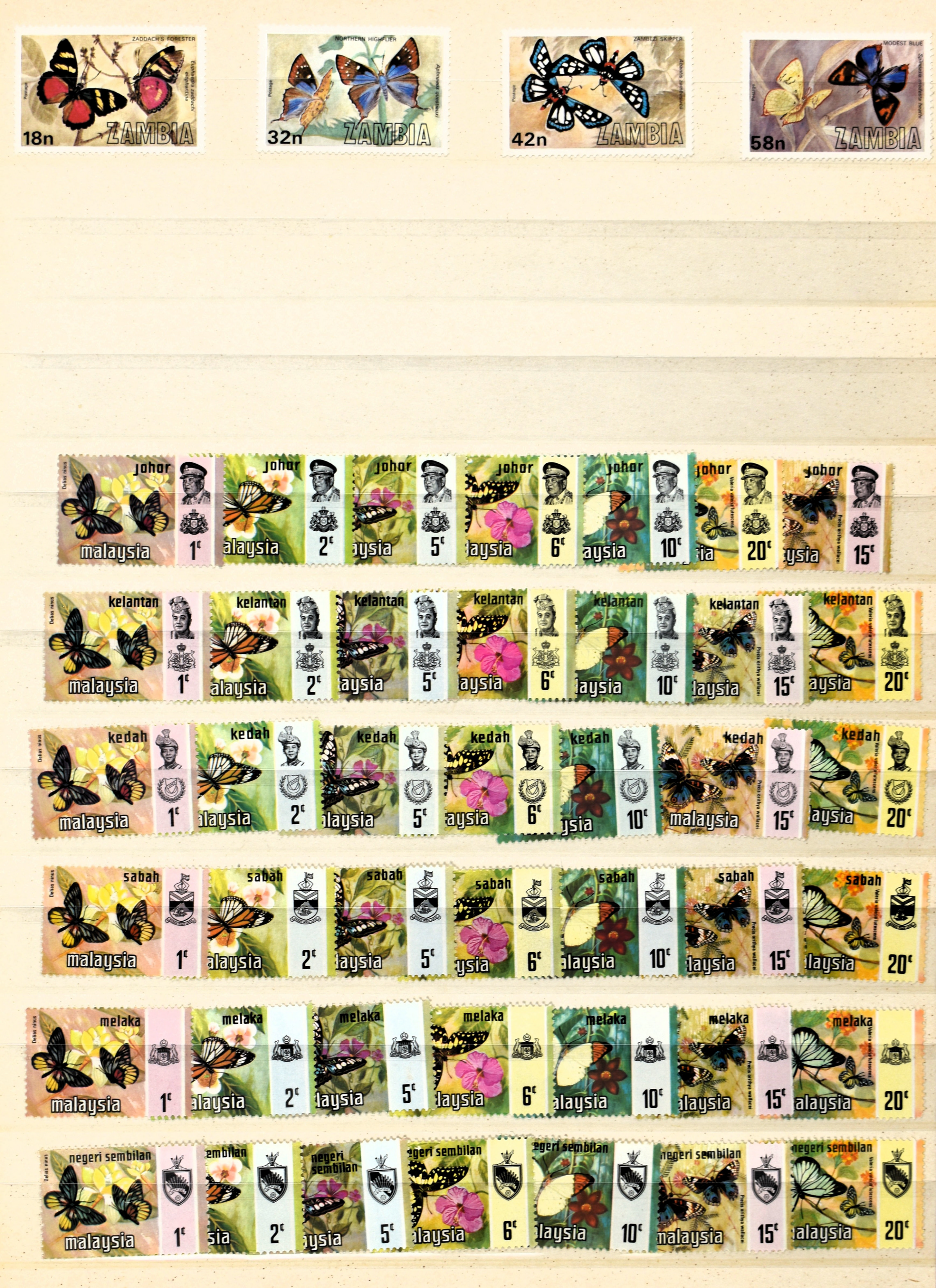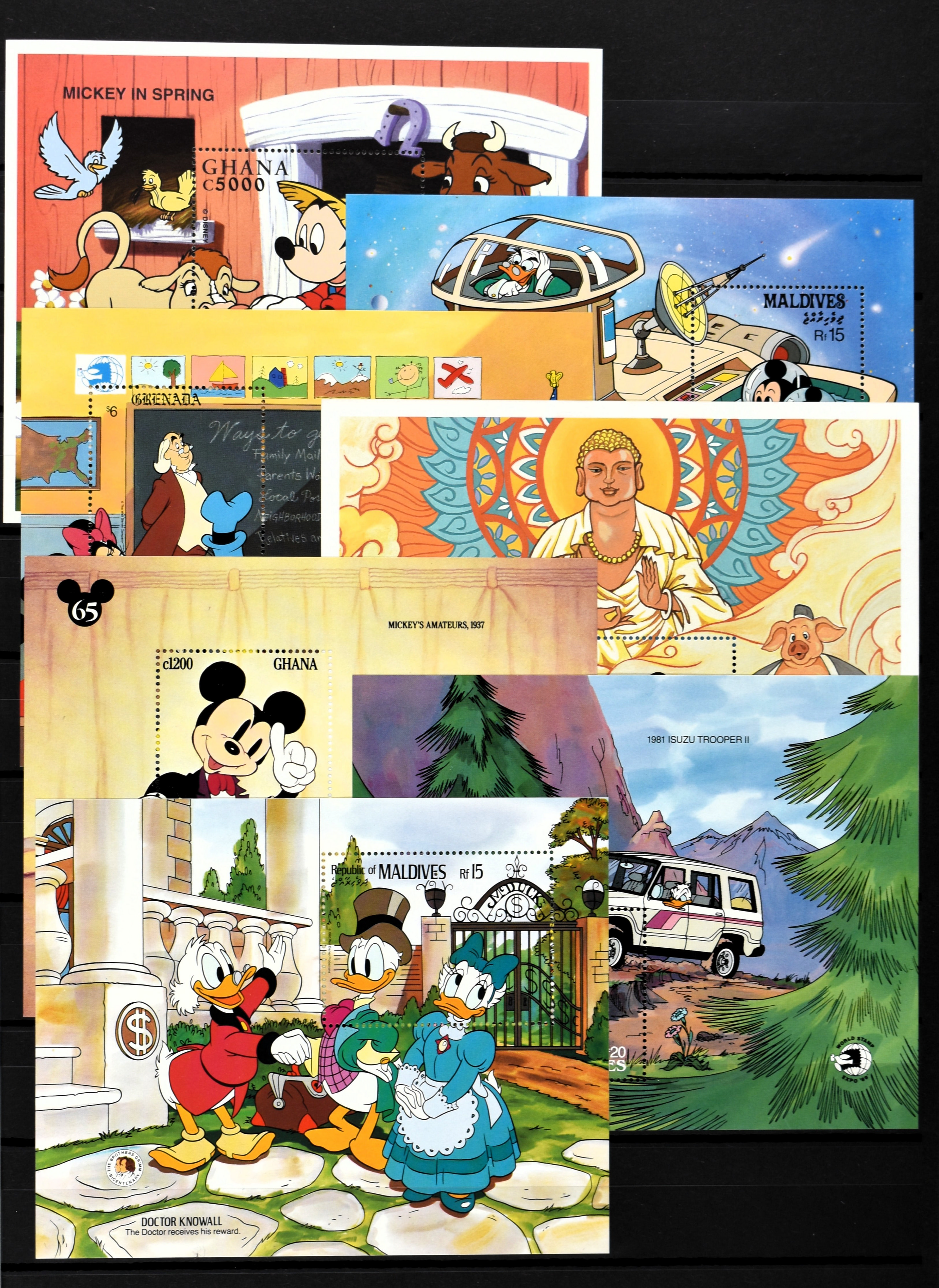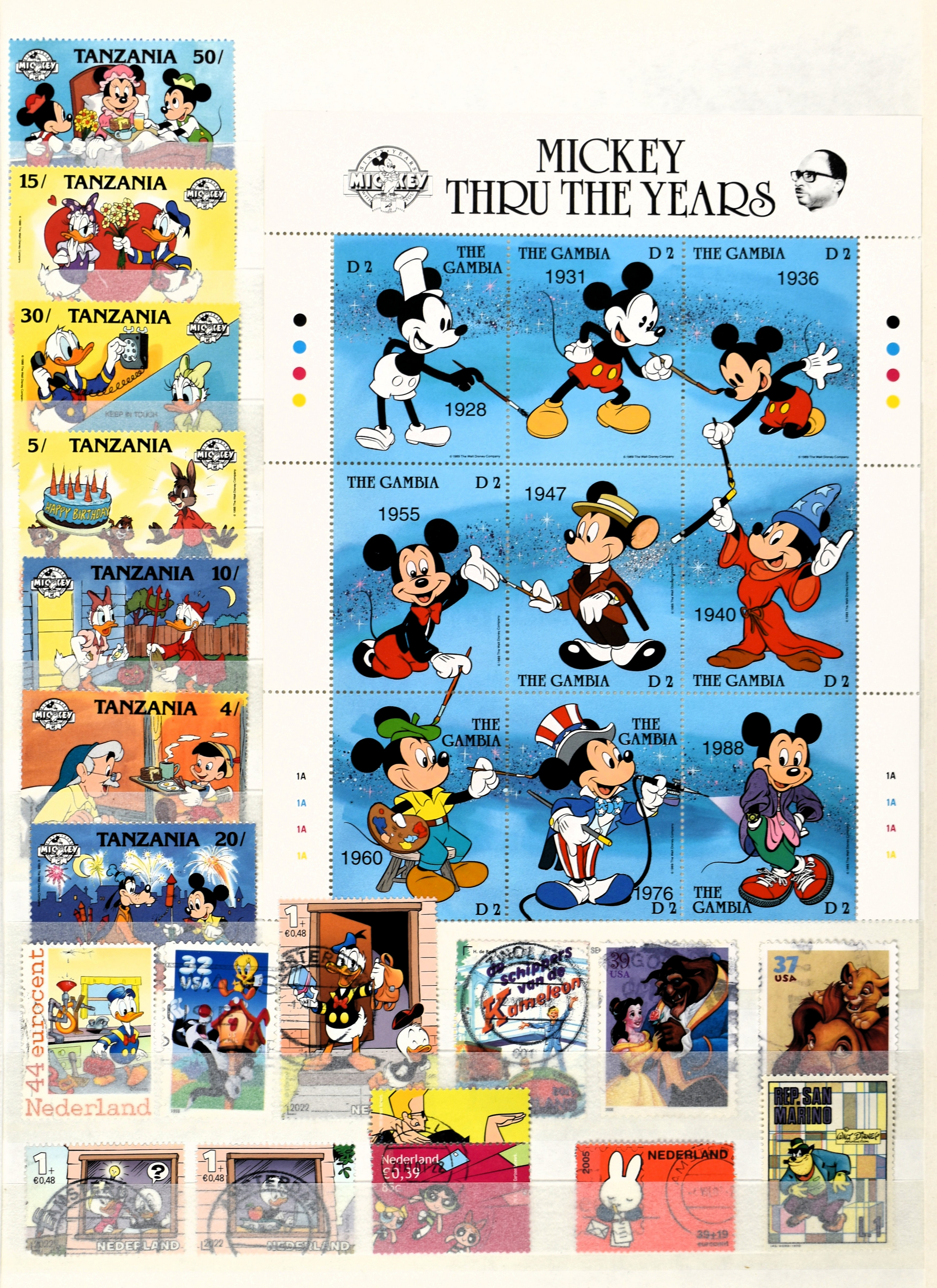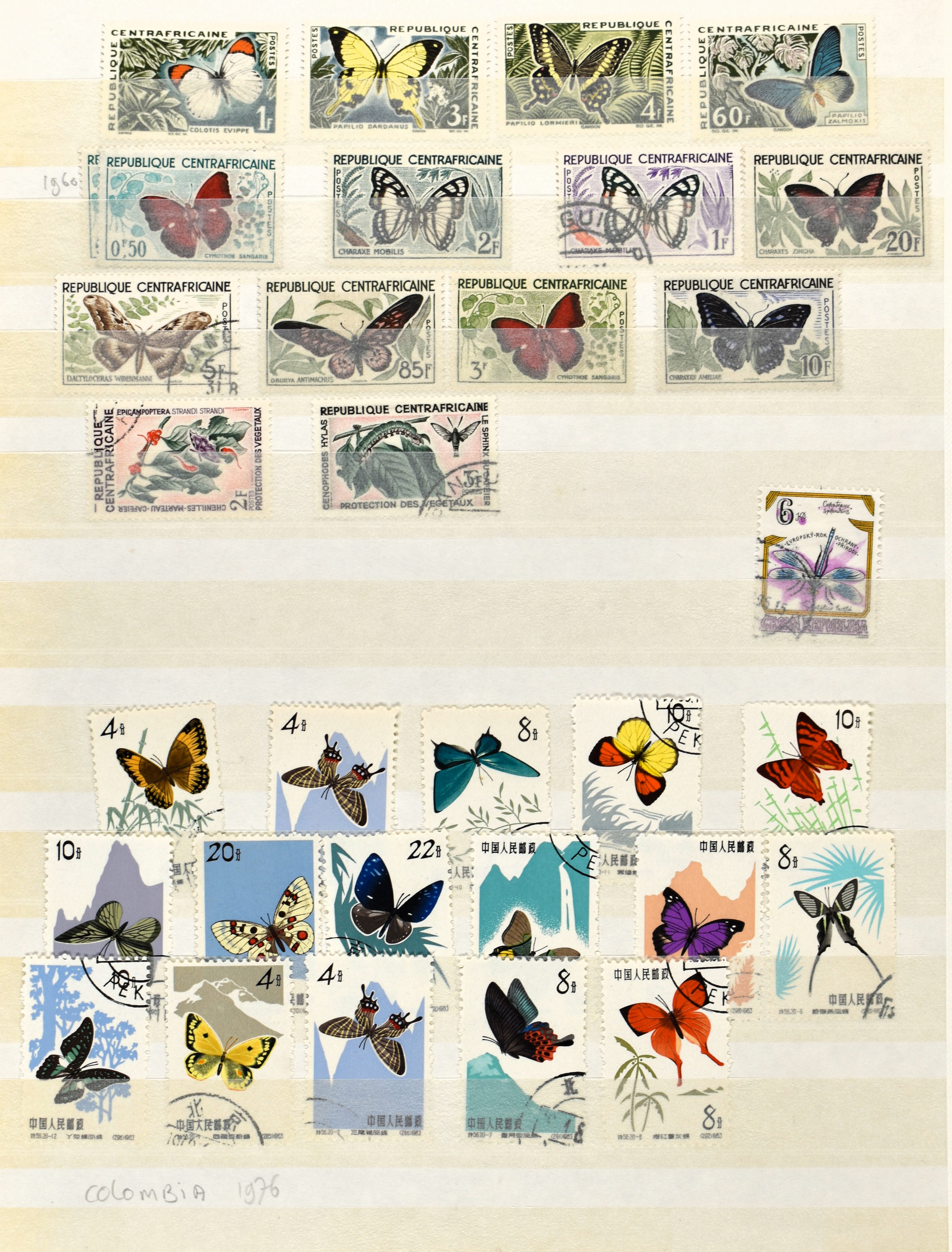 TOPICS, o/*/** in 9 stockbooks and a small box with blocks incl. butterflies, cartoons, comics and some sports. For images please visit our website