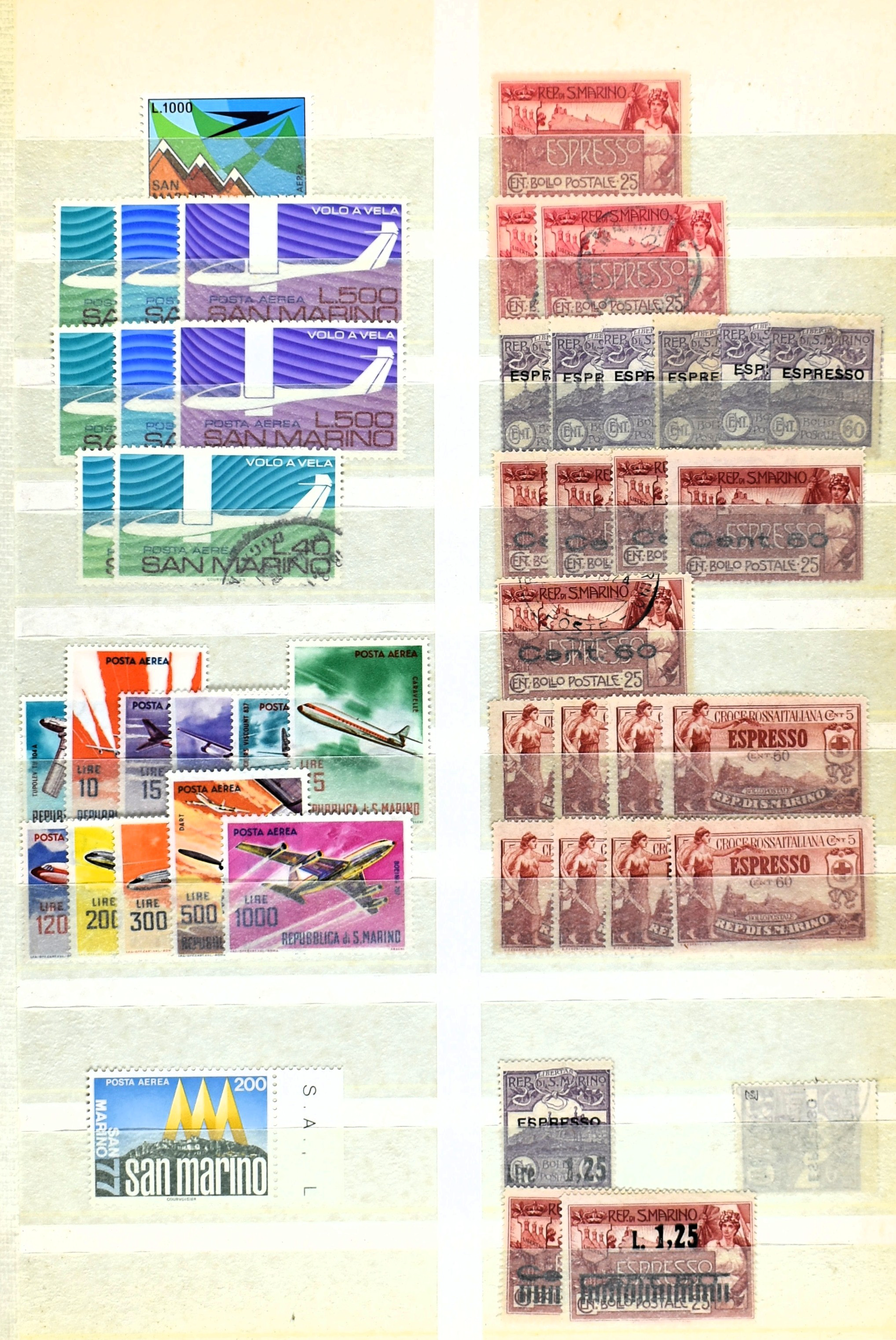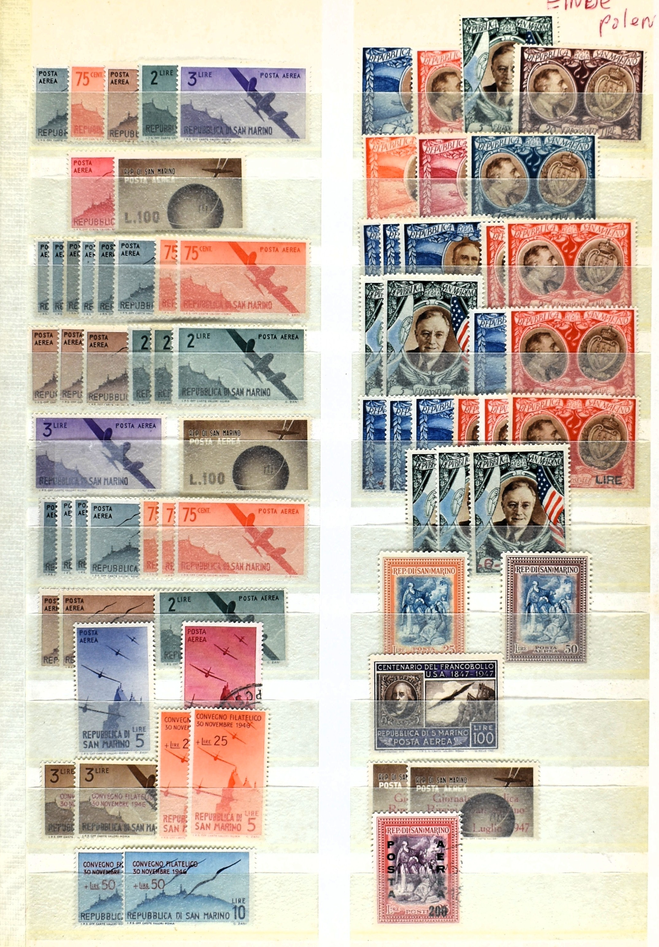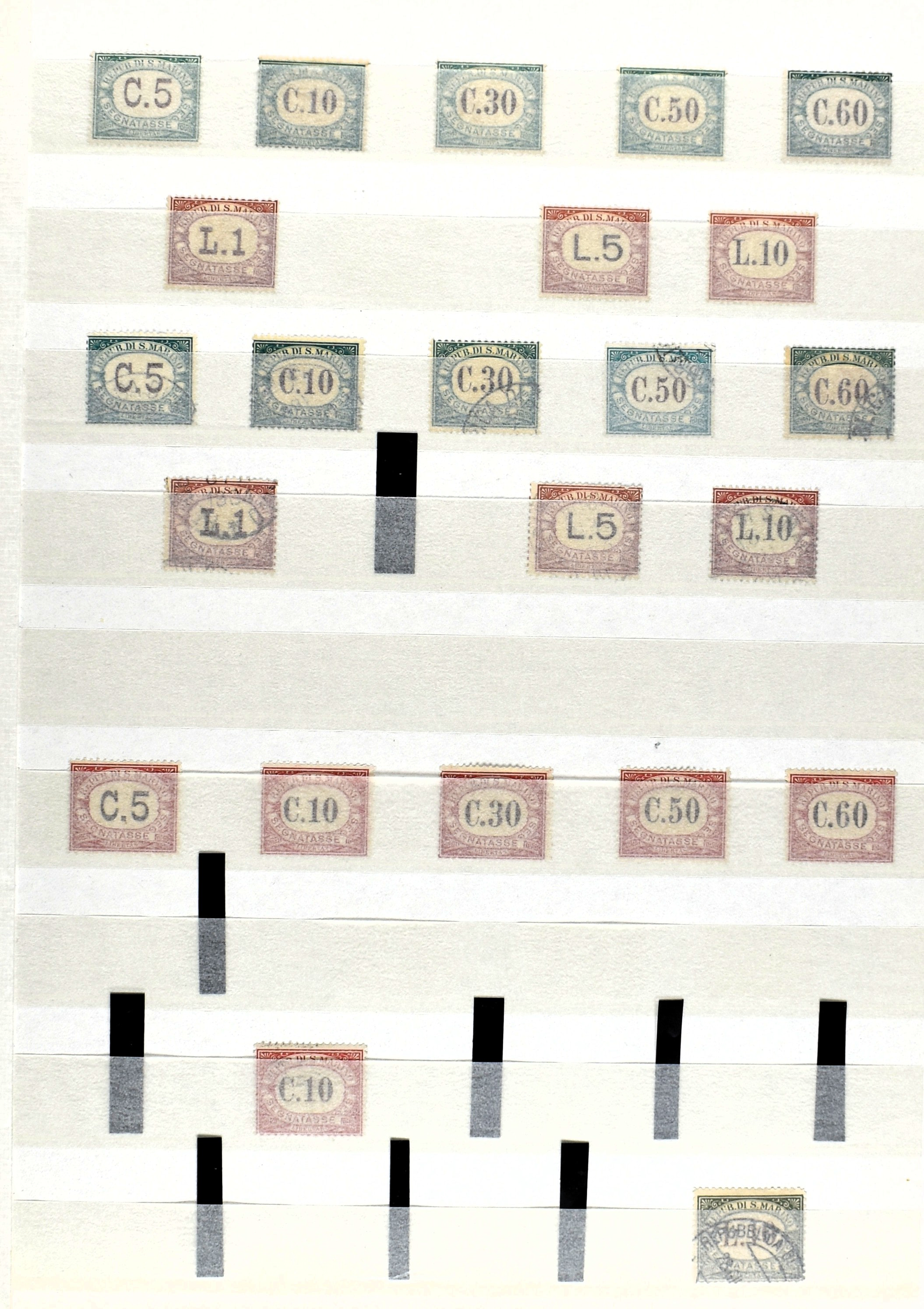 268 imageSAN MARINO 1877-2002, o/*/** in 4 stock books with several good numbers and sets, a.o.: 12/22, 26/31, 34/45, 48II, 145/162, 175/79, BL,4A, Airmail, postage dues, parcel post stamps. etc., etc. (Image) (Image2) (Image3) (Image4) (Image5) (Image6) (Image7) (Image8) (Image9) (Image10) (Image11) (Image12) (Image13) (Image14) (Image15) (Image16) (Image17) (Image18) (Image19) (Image20) (Image21) (Image22) (Image23) (Image24) (Image25) (Image26) (Image27) (Image28) (Image29) (Image30) (Image31) (Image32) (Image33) (Image34) (Image35) (Image36) (Image37) (Image38) (Image39) (Image40) (Image41) (Image42) (Image43) (Image44) (Image45) (Image46) (Image47) (Image48) (Image49) (Image50) (Image51) (Image52) (Image53) (Image54) (Image55) (Image56) (Image57) (Image58) (Image59) (Image60) (Image61) (Image62) (Image63) (Image64) (Image65) (Image66) (Image67) (Image68) (Image69) (Image70) (Image71) (Image72) (Image73)