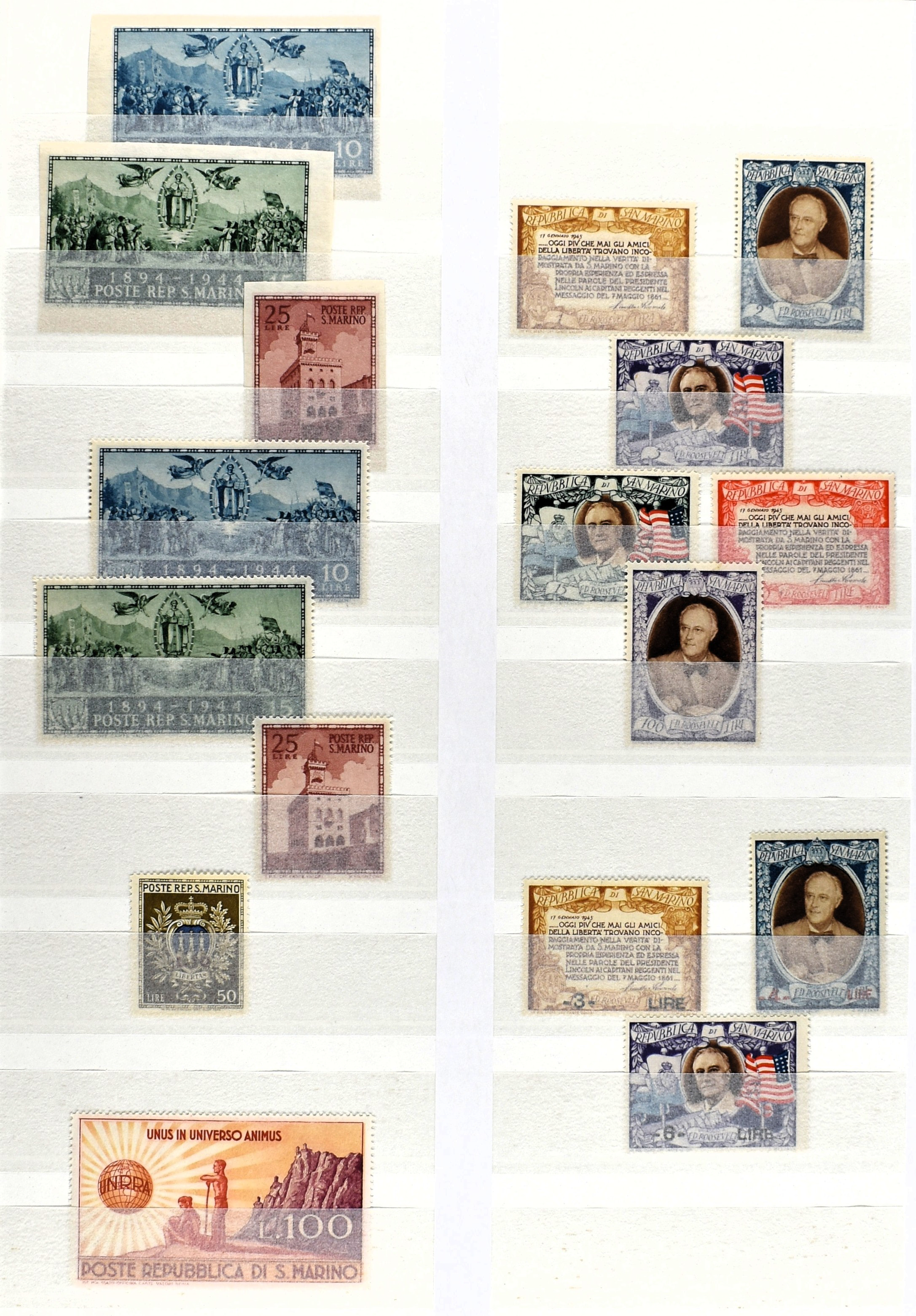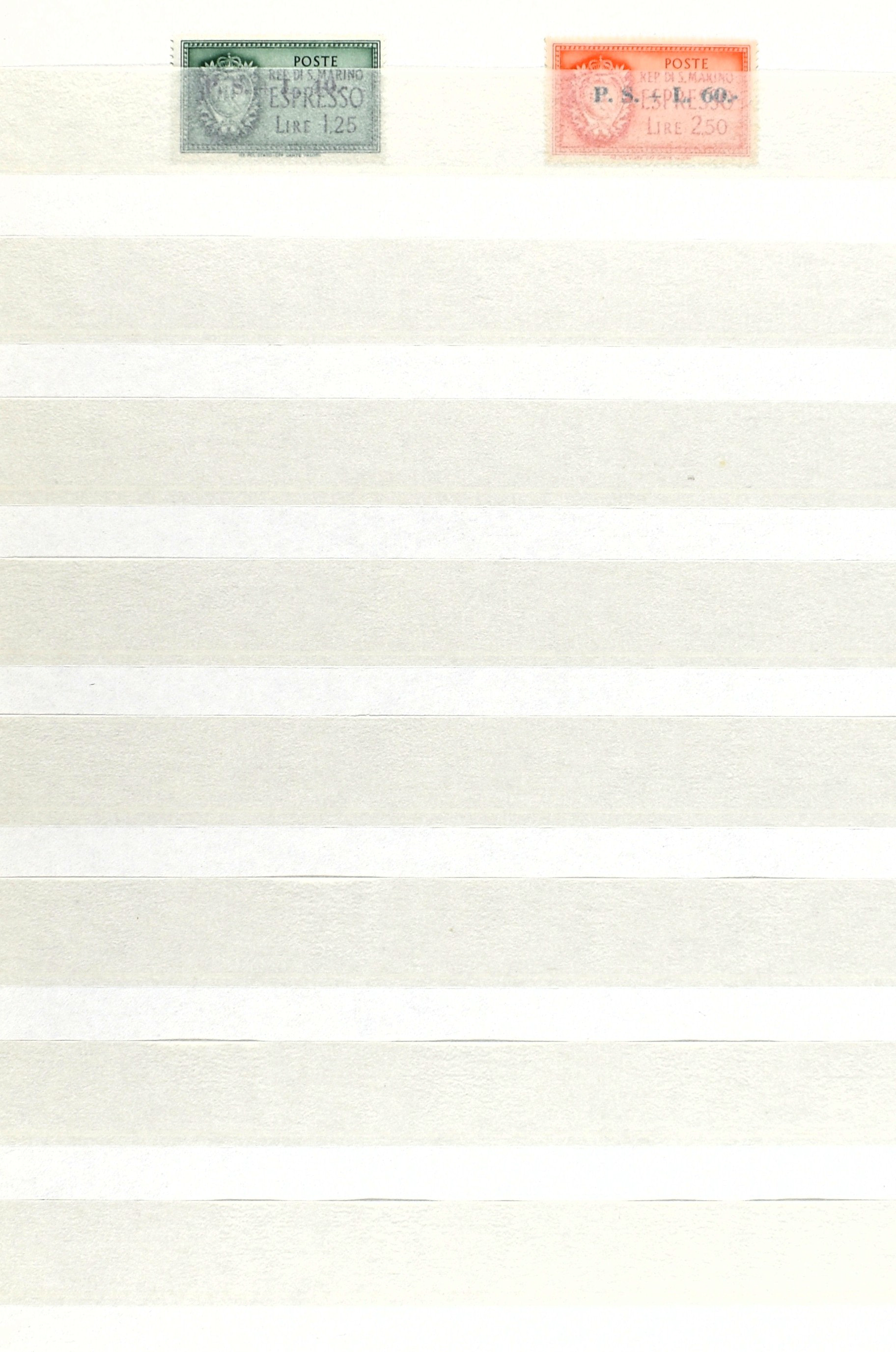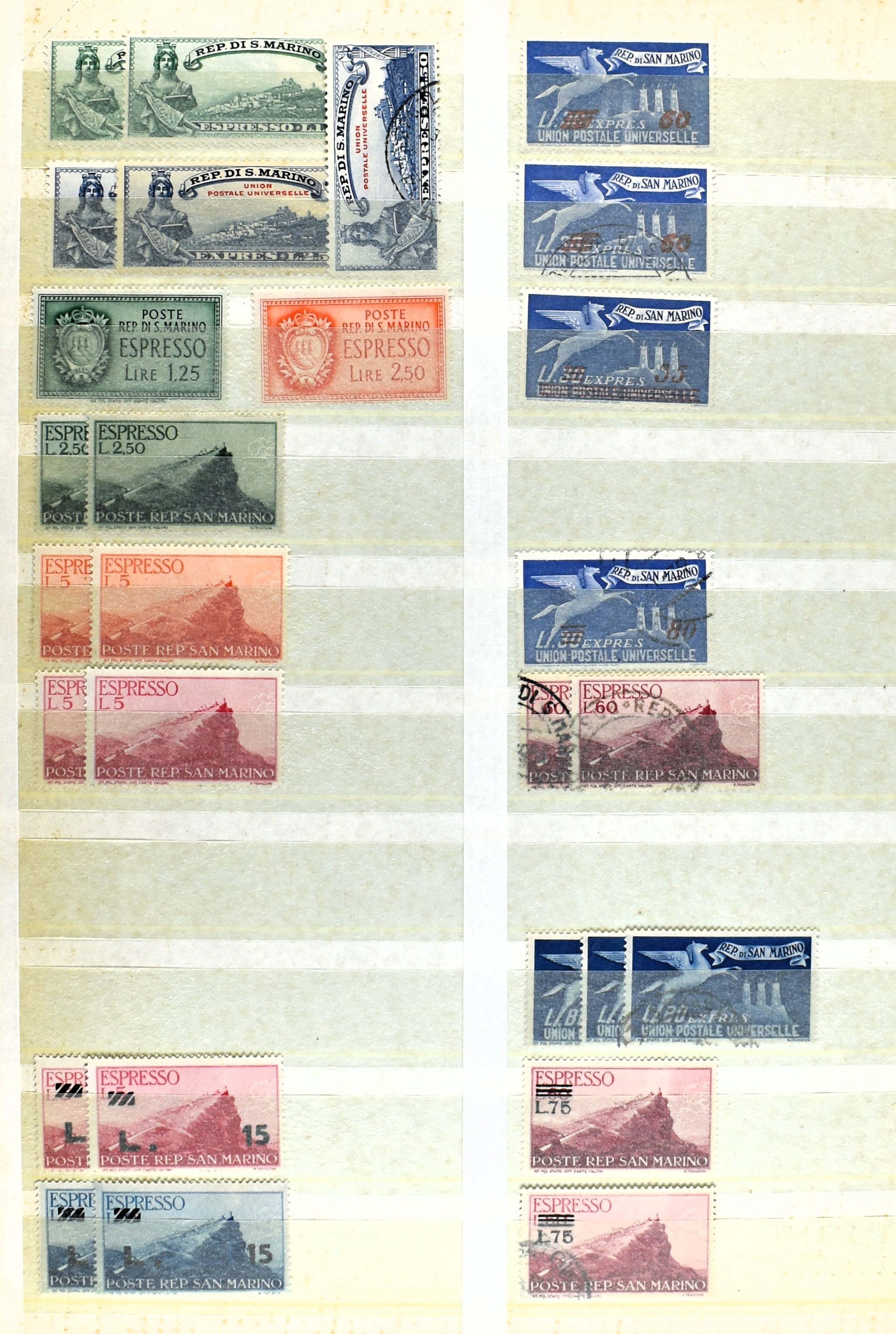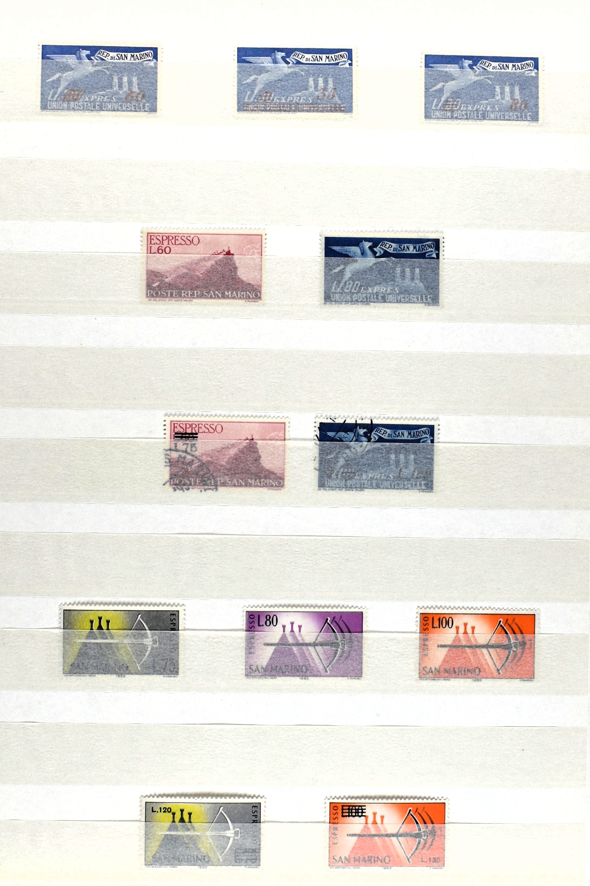 268 imageSAN MARINO 1877-2002, o/*/** in 4 stock books with several good numbers and sets, a.o.: 12/22, 26/31, 34/45, 48II, 145/162, 175/79, BL,4A, Airmail, postage dues, parcel post stamps. etc., etc. (Image) (Image2) (Image3) (Image4) (Image5) (Image6) (Image7) (Image8) (Image9) (Image10) (Image11) (Image12) (Image13) (Image14) (Image15) (Image16) (Image17) (Image18) (Image19) (Image20) (Image21) (Image22) (Image23) (Image24) (Image25) (Image26) (Image27) (Image28) (Image29) (Image30) (Image31) (Image32) (Image33) (Image34) (Image35) (Image36) (Image37) (Image38) (Image39) (Image40) (Image41) (Image42) (Image43) (Image44) (Image45) (Image46) (Image47) (Image48) (Image49) (Image50) (Image51) (Image52) (Image53) (Image54) (Image55) (Image56) (Image57) (Image58) (Image59) (Image60) (Image61) (Image62) (Image63) (Image64) (Image65) (Image66) (Image67) (Image68) (Image69) (Image70) (Image71) (Image72) (Image73)