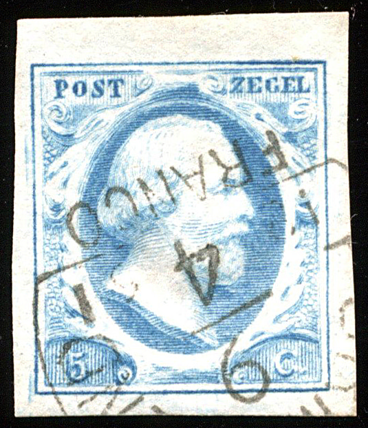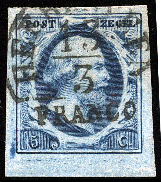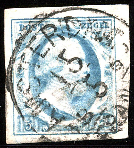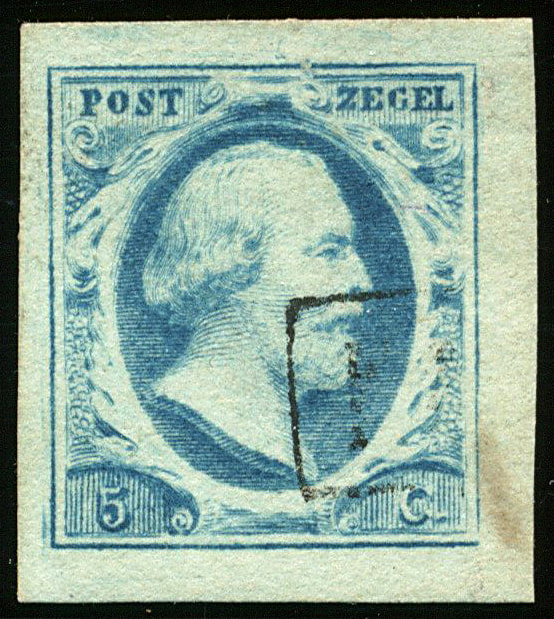 1m-Pl.IV-18, prachtig breed gerande zegel in melkblauwe nuance (Image)