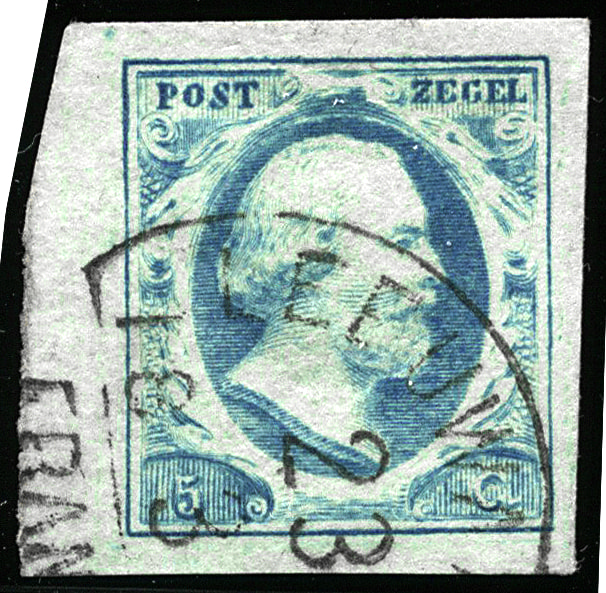 2f-Pl.III-50, 10 cent plaat III op verticaal geribd papier, prachtig hoekstuk. Zeer schaars! € 350+ (Image)