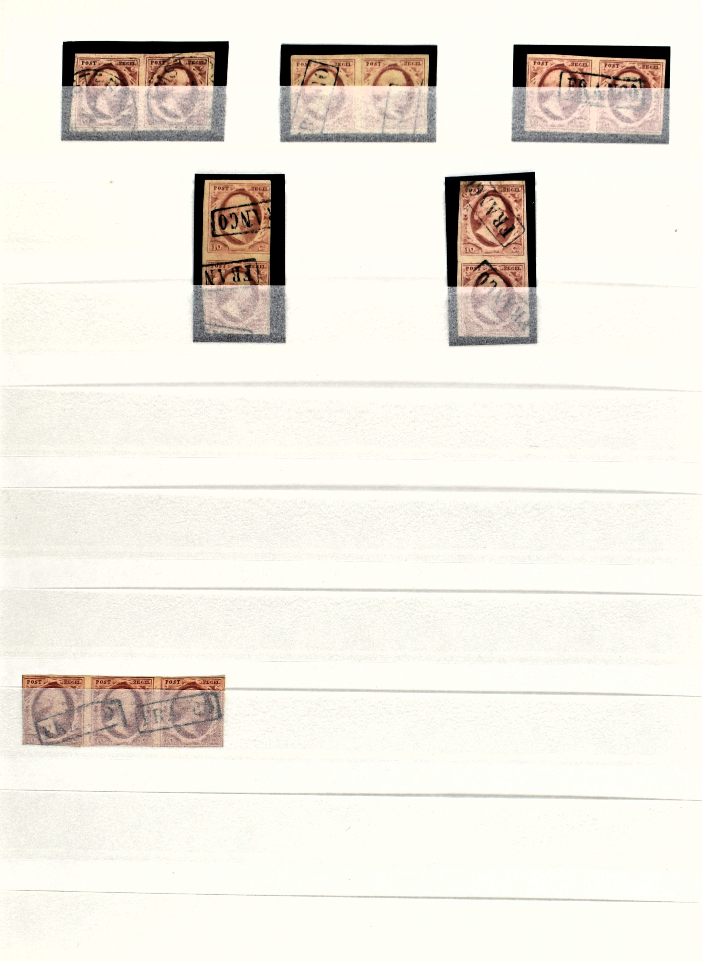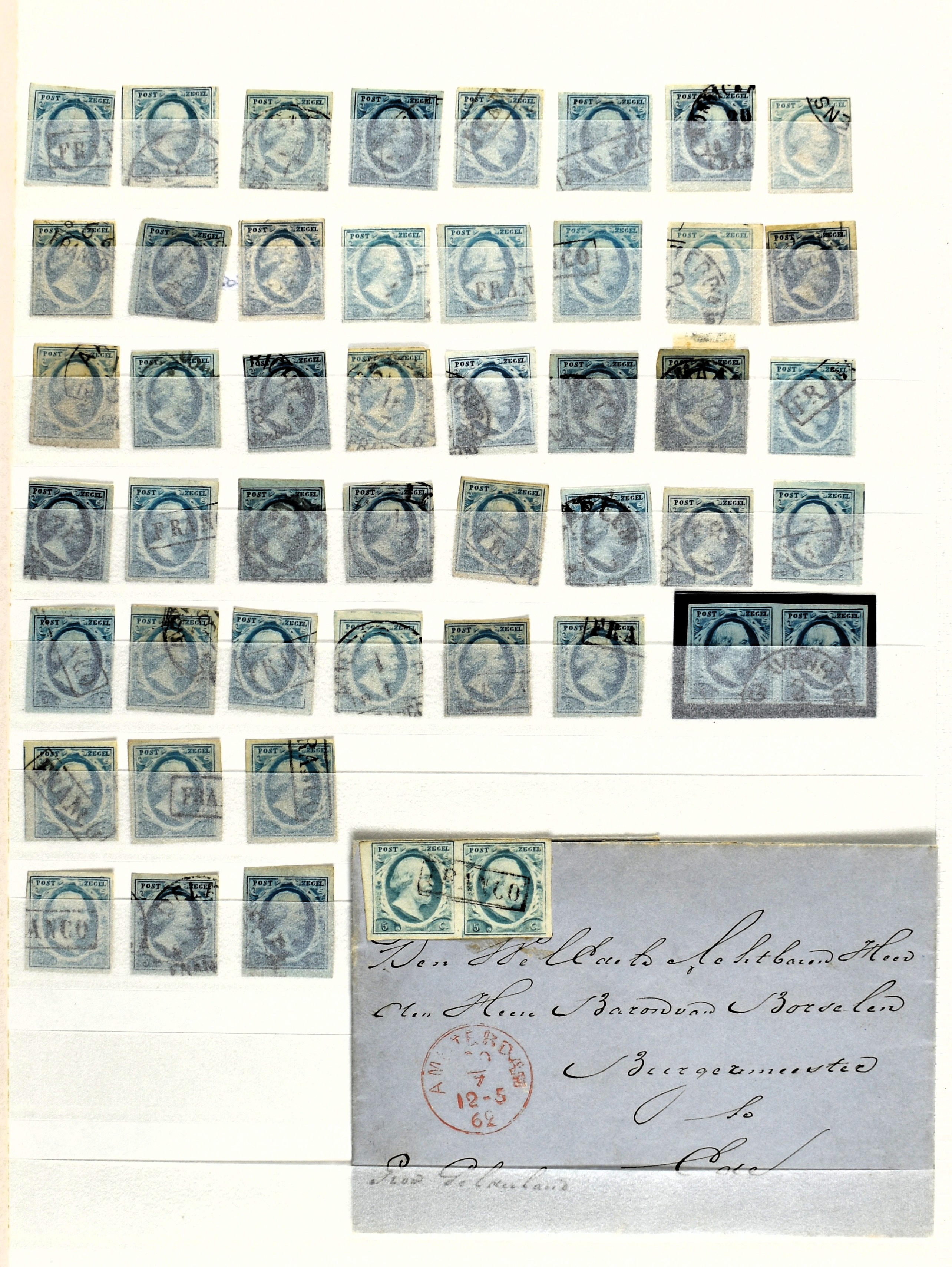 30 imageNEDERLAND EMISSIE 1852, 115 x nr.1 en 2 paren en een brief met paartje, 103 x nr.2 en 5 paren,21 x nr. 3 en strip van 3 (fraai). Het geheel is sterk wisselende kwaliteit, echter een enorme catalogus waarde! (Image) (Image2) (Image3) (Image4) (Image5) (Image6) (Image7) (Image8)