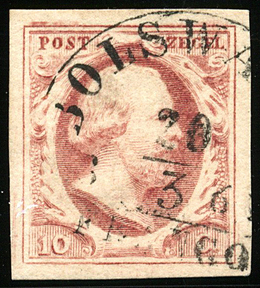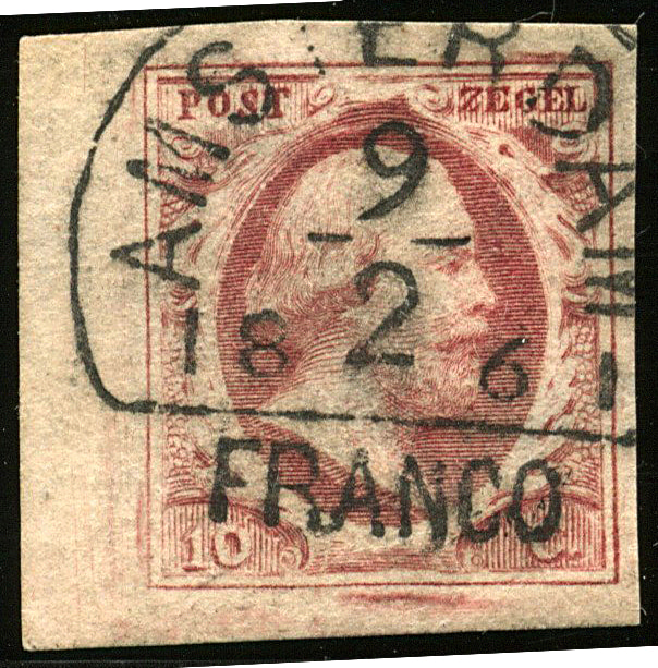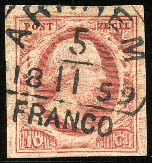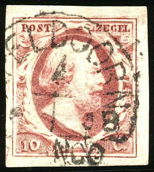 BERGEN OP-ZOOM A (de H/S 100) op 10 cent nr. 2b-Pl.I-55. Aan twee zijden breed gerand prachtex. met ideale afst. (Image)
