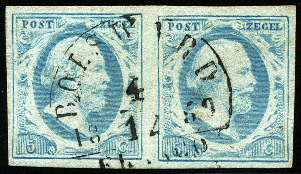 BOLSWARD B type I (de H/S 100) op 5 cent nr. 1k-Pl.III-87/88. Prachtpaar met centrale, wat lichte afst. (Image)