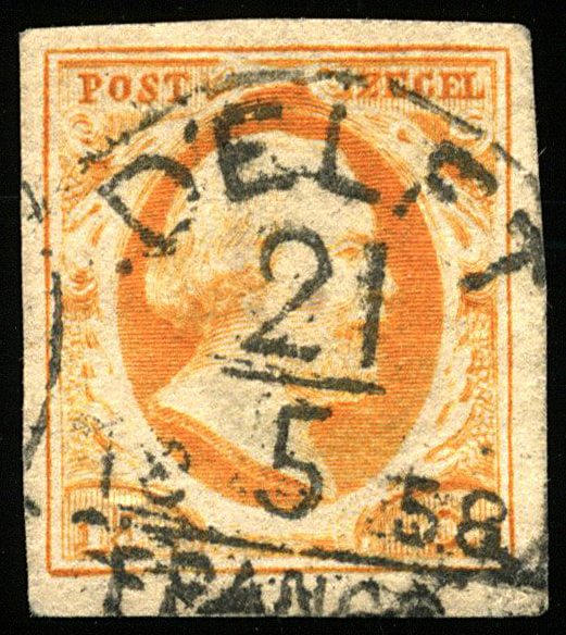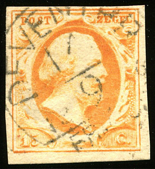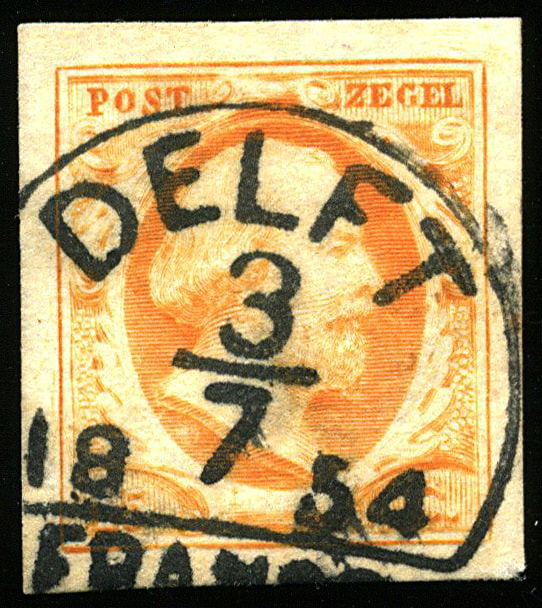 DELFT C type I (de H/S 200) op 15 cent nr. 3b, pos. 17. Aan alle zijden zeer breed gerande luxe zegel met bijzonder mooie afst. (Image)