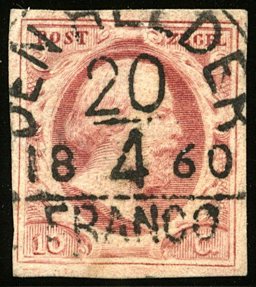 DEVENTER C type I (de H/S 400) op 15 cent nr. 3c, pos. 95. Iets smal tot vol gerand prachtex. met bijna volledige afst. (Image)