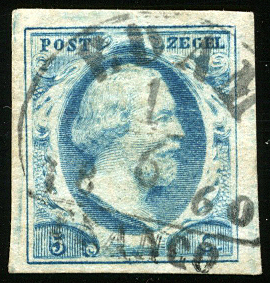 B type II (de H/S 250) op 5 cent nr. 1n-Pl.IV-65. Breed tot zeer breed gerande zegel met vrijwel ideale afst. (Image)