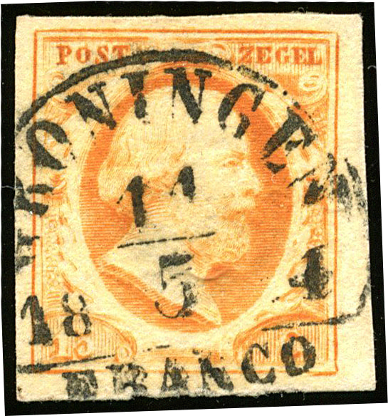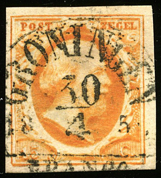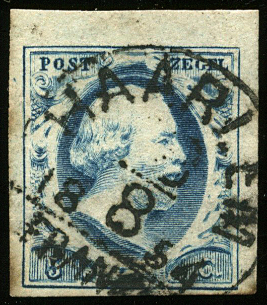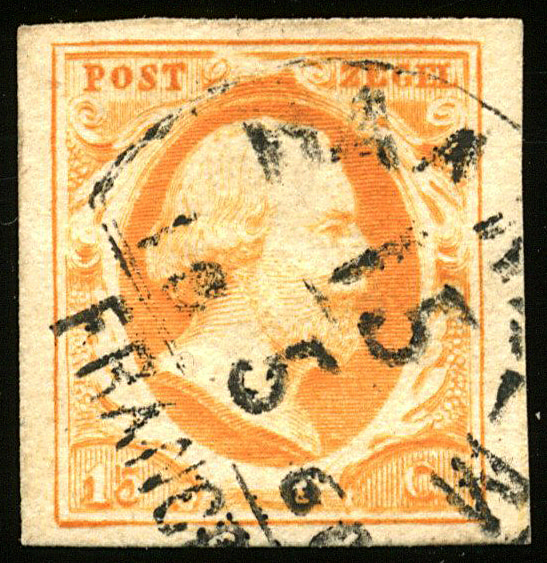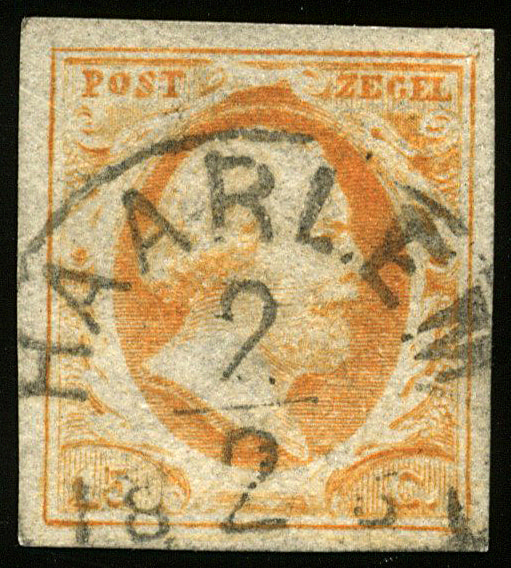 HAARLEM C type VII (de H/S 500) op 15 cent nr. 3c, pos. 70. Mooi gerande zegel met voor dit op de 15 cent schaarse stempel een prachtige afdruk, mooier dan in de H/S is afgebeeld (Image)