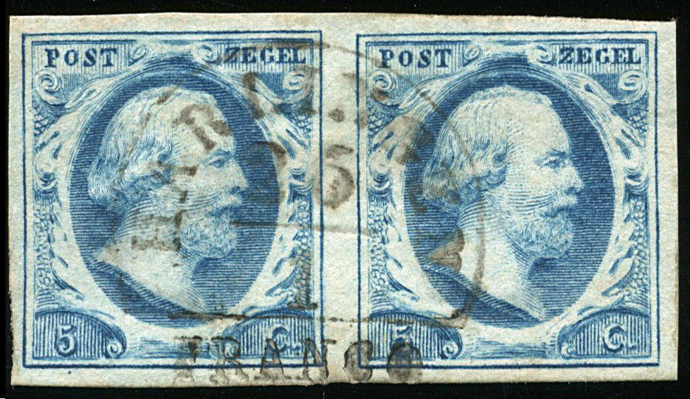 HARLINGEN A (de H/S 75) op 5 cent nr. 1c-Pl.I-76/77. Prachtpaar met centrale afst. (Image)