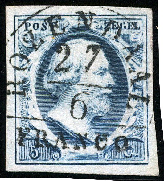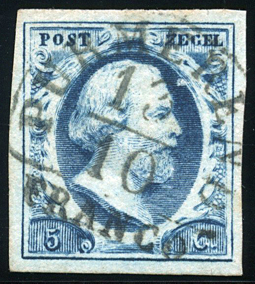 ROTTERDAM B type II (de H/S 50) op 5 cent nr. 1b-Pl.I. Breed tot zeer breed gerand prachtex. met duidelijke afst. (Image)