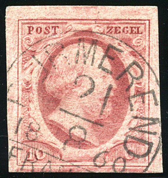 PURMEREND A (de H/S 200) op 10 cent. Rechts boven heel smal, overigens prima gerande zegel met ideale afst. (Image)
