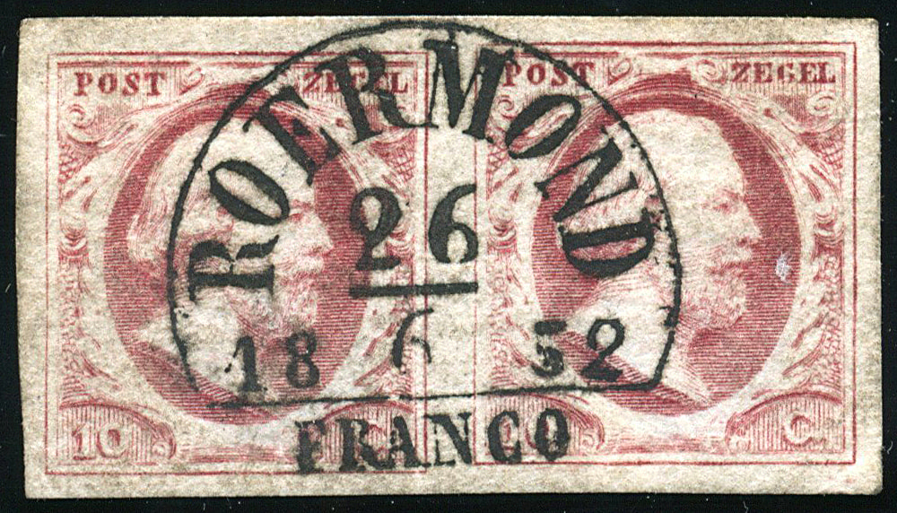 ROERMOND B (de H/S 50) op 10 cent nr. 2b-Pl.I-59/60. Breed gerand, iets minder fris paar met centrale, superbe afst. (Image)
