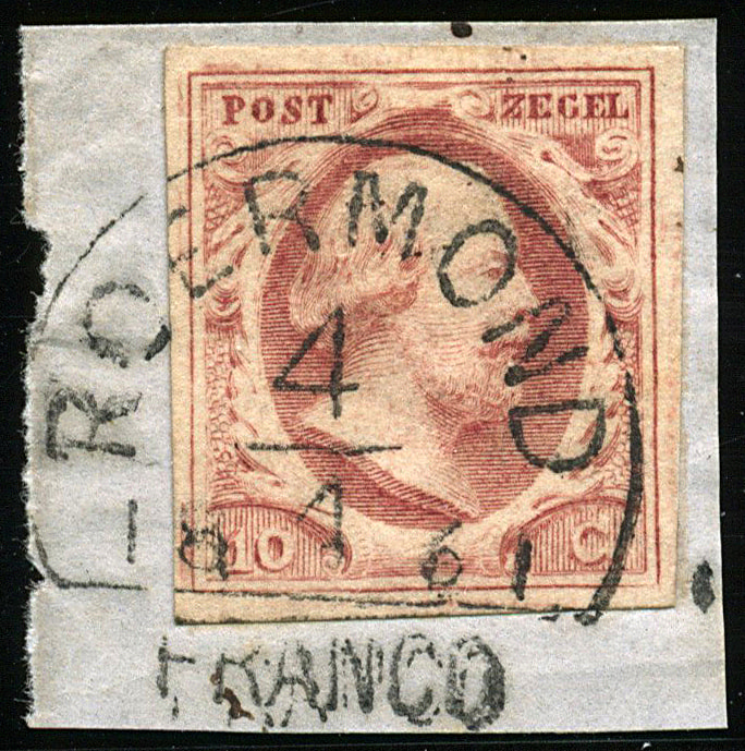 ROERMOND C type II (de H/S 100) op 10 cent nr. 2l-Pl.VI-66. Prachtex. op knipsel met volledige afst. (Image)