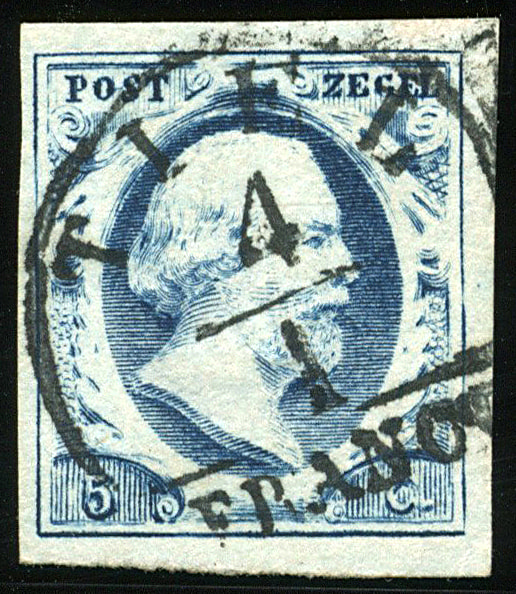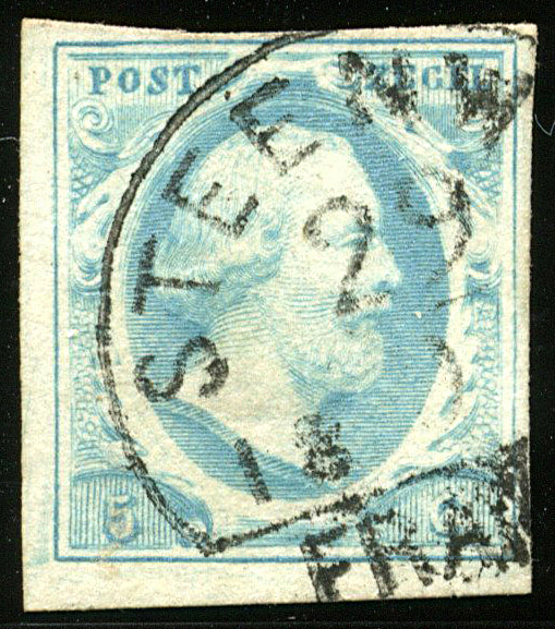 STEENWYK C (de H/S 800) op 5 cent in melkblauwe nuance nr. 1m-Pl.IV-68. Iets smal tot zeer breed gerand prachtex. met grootste deel van deze zeer schaarse afst.