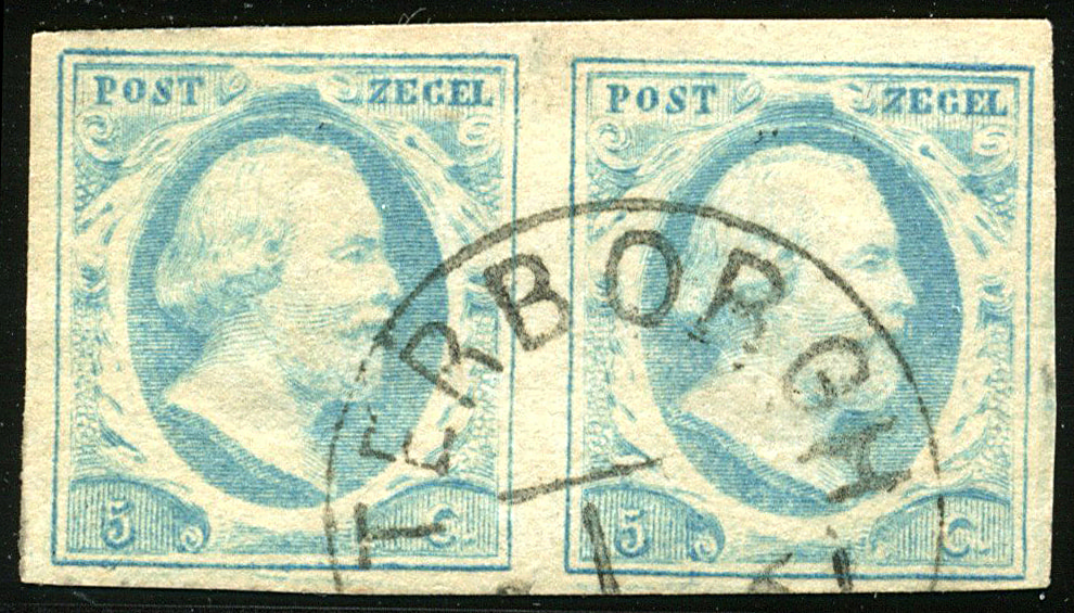 TERBORGH C (de H/S 350) op 5 cent nr. 1n-Pl.IV-76/77. Prachtpaar met centrale afst. van 1-1861 waarin de dagcijfer(s) ontbreken (Image)