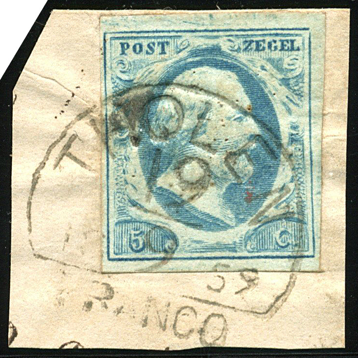 THOLEN C type I (de H/S 200) op 5 cent nr. 1k-Pl.III-57. Smal (links) tot vol gerande zegel op briefstukje waarop volledige afst. (Image)
